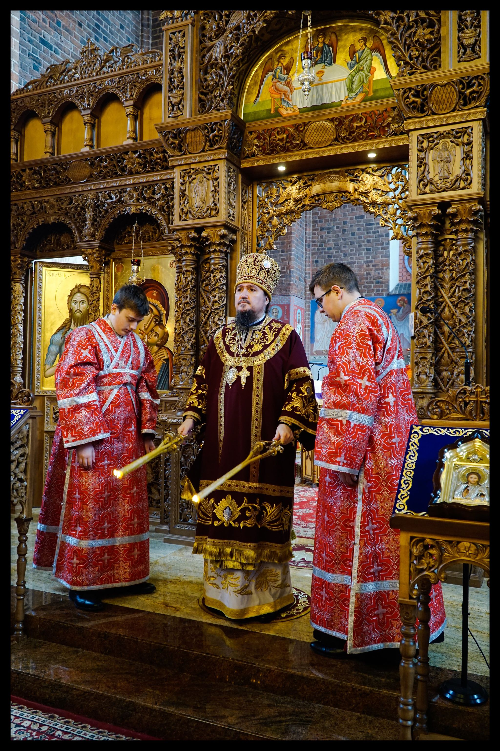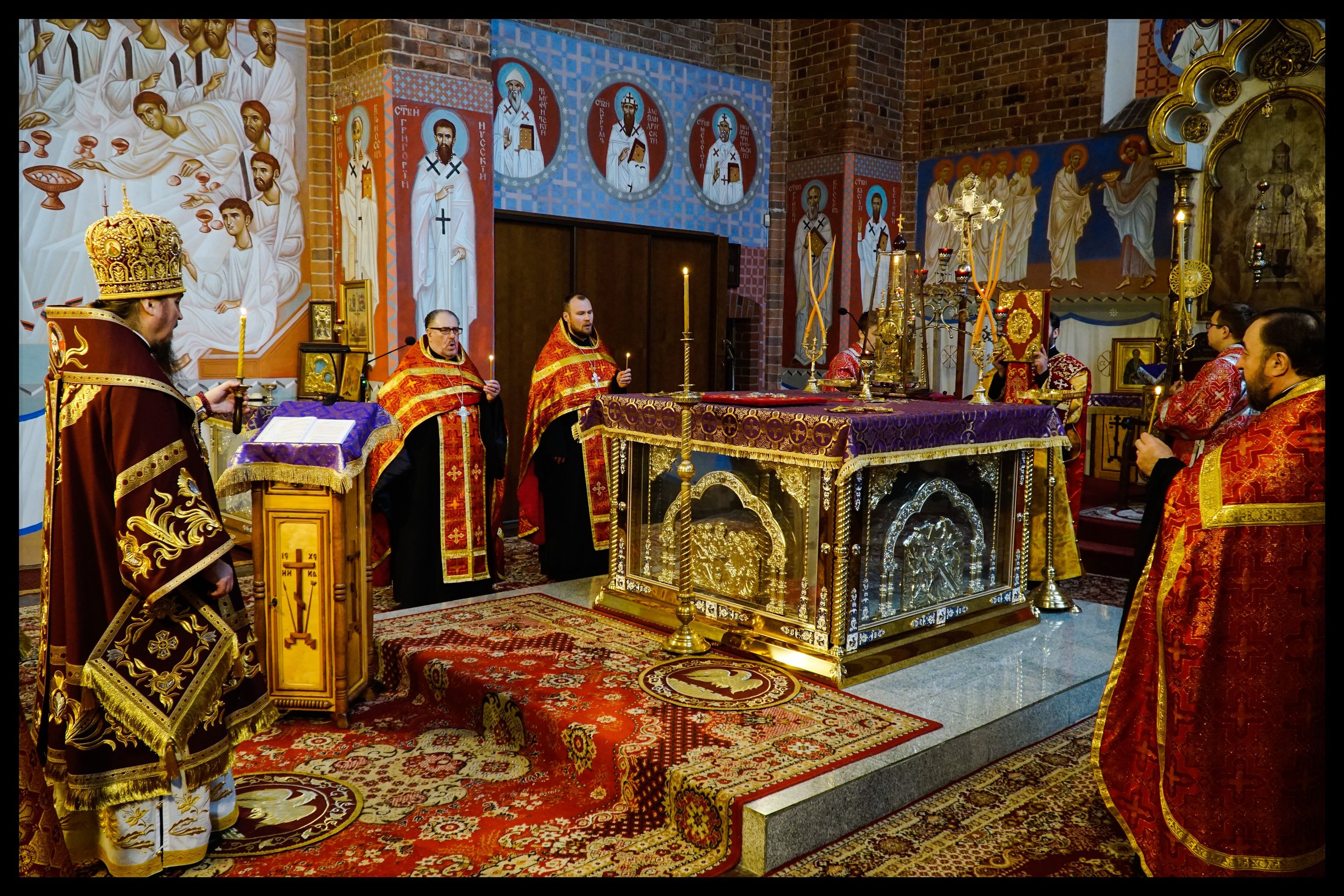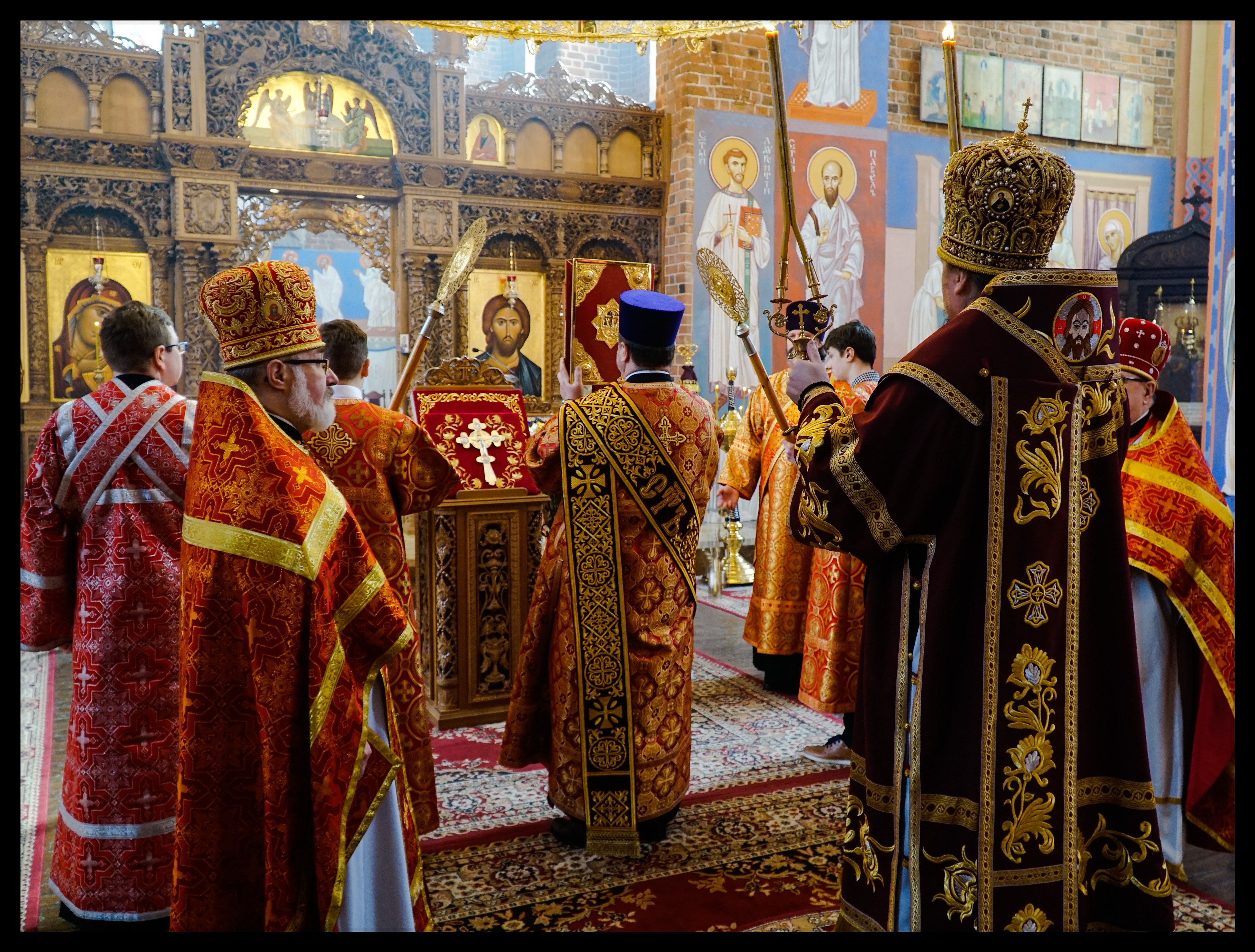 Po zakończeniu Boskiej Liturgii Jego Ekscelencja wraz z duchownymi wyszedł na środek świątyni, gdzie podczas trzykrotnego śpiewu hymnu “Krestu Twojemu”, pokłonił się przed wyniesionym na wczorajszej jutrzni Świętym Krzyżem.