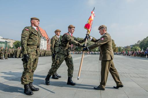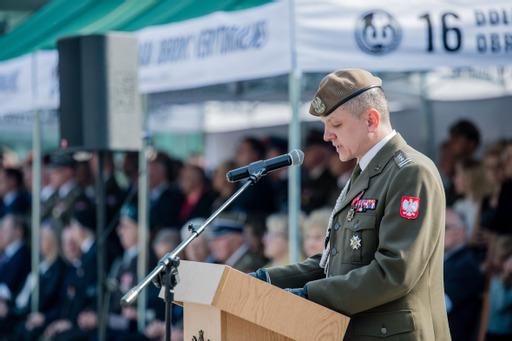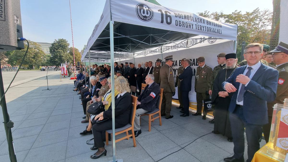 W dniu 27 września na placu Wolności we Wrocławiu odbyło się przekazanie sztandarów na ręce dowódcy przez Matkę Chrzestną Sztandaru 16. Dolnośląskiej Brygady OT w osobie pani Ewy Mańkowskiej - byłej Marszałek Dolnośląskiej, i ojca chrzestnego Pana Krzysztofa Marszałka syna podpułkownika Ludwika Marszałka ps. Zbroja, patrona brygady. Następnie żołnierze złożyli przysięgę. Zaprzysiężonych zostało prawie 100 żołnierzy, którzy jako pierwsi wypowiedzieli słowa roty przysięgi na sztandar 16 DBOT.- Sztandar to znak uosabiający Ojczyznę, symbol najwyższych wartości, sławy wojennej i tradycji oraz wierności honoru i męstwa. To obiekt czerpania siły i morale każdego żołnierza - powiedział płk Artur Barański. Po złożeniu przysięgi dla zgromadzonych żołnierzy udzielone zostało błogosławieństwo. Prawosławny Ordynariat Wojska Polskiego reprezentował i błogosławieństwa udzielił ks. Grzegorz Cebulski.