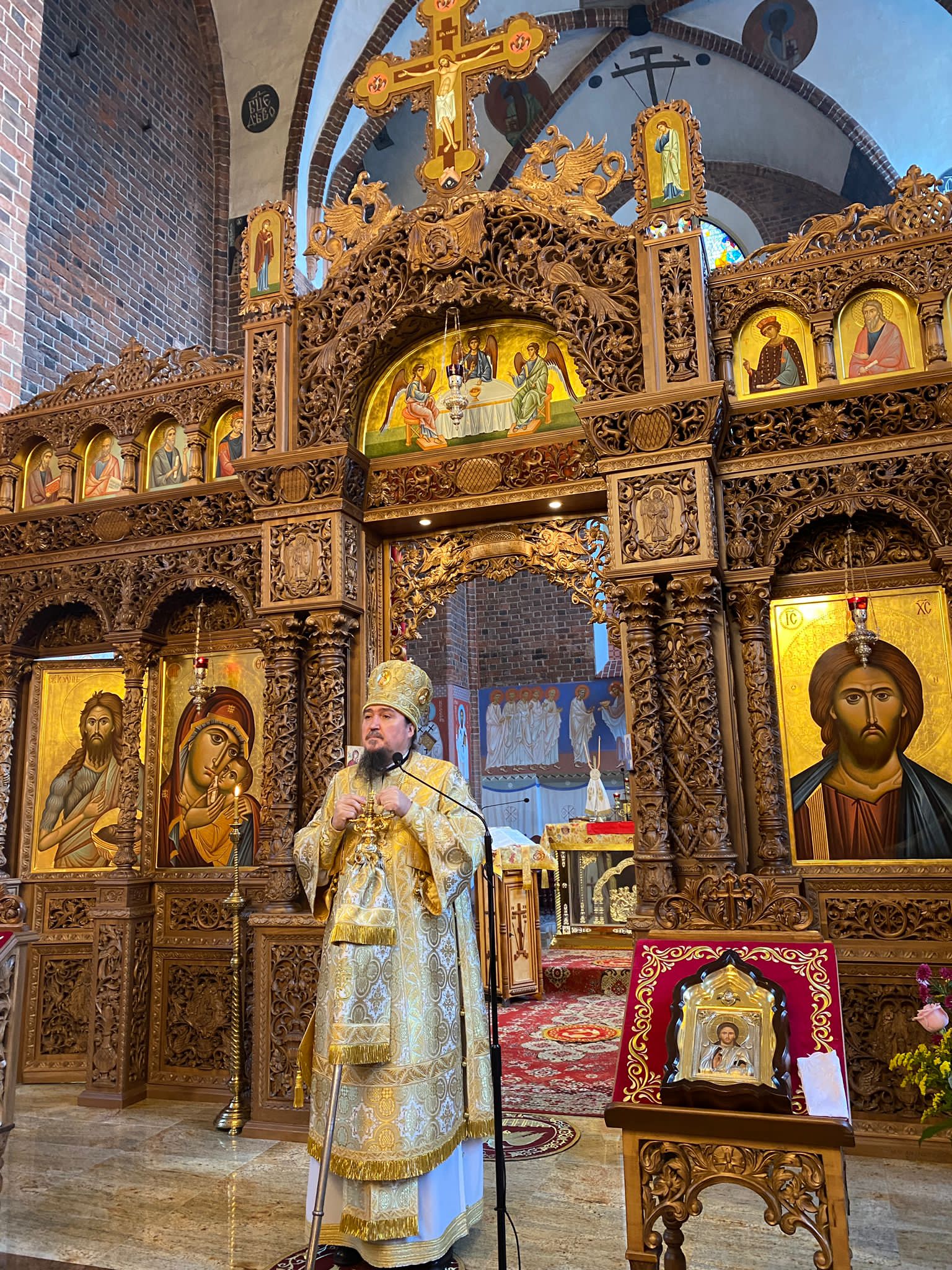 Po wysłuchaniu Ewangelii ze słowem do wypełniających świątynię wiernych zwrócił się Władyka Jerzy. W homilii wrócił uwagę na trzy lekcje, występujące w dzisiejszej Ewangelii. Po pierwsze, żadna choroba nie usprawiedliwia człowieka od relacji z Bogiem, nie zwalnia z wewnętrznej konieczności rozmowy z Bogiem. Po drugie, że żadne wypowiedziane słowo do Boga nie przepada, nawet jeśli Bóg od razu nie odpowiada to te nasze słowo nie znika. Ostatnią z lekcji płynącej z dzisiejszego Ewangelicznego czytania to to, że prawdziwe chrześcijaństwo realizuje się wtedy kiedy potrafimy płakać z płaczącymi i radować się z radującymi.