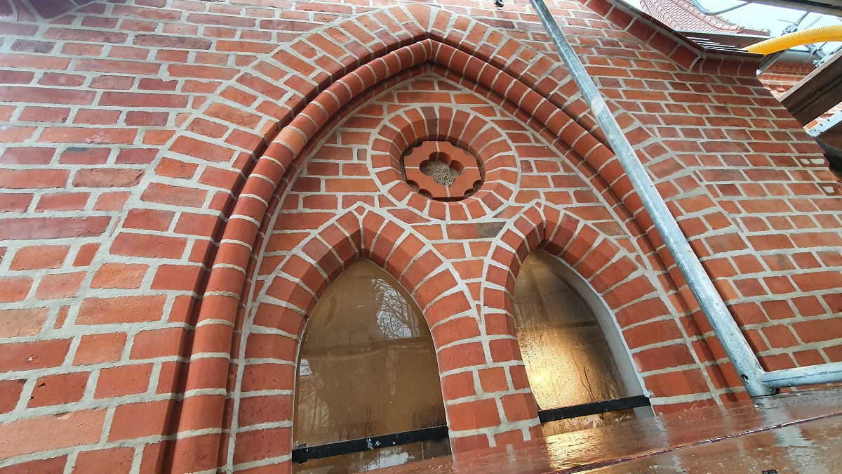 Zakres prac obejmował remont dwóch ścian bocznych i ściany ołtarzowej. Spoinowanie, czyszczenie i wymianą uszkodzonych cegieł oraz kształtek . Udało się zakończyć całkowity remont zewnętrzny świątyni.
