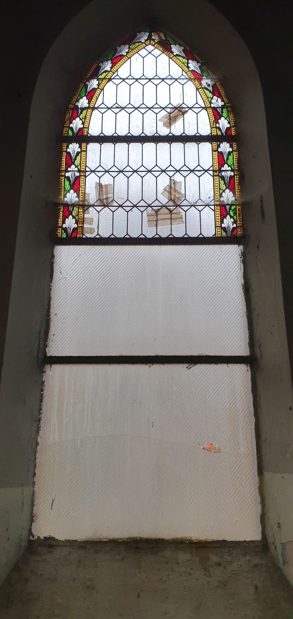 Zakres prac obejmował , remont tynków wewnętrznych, remont stolarki okiennej i drzwiowej wraz z konserwacją zabytkowych witraży oraz malowanie stropu.