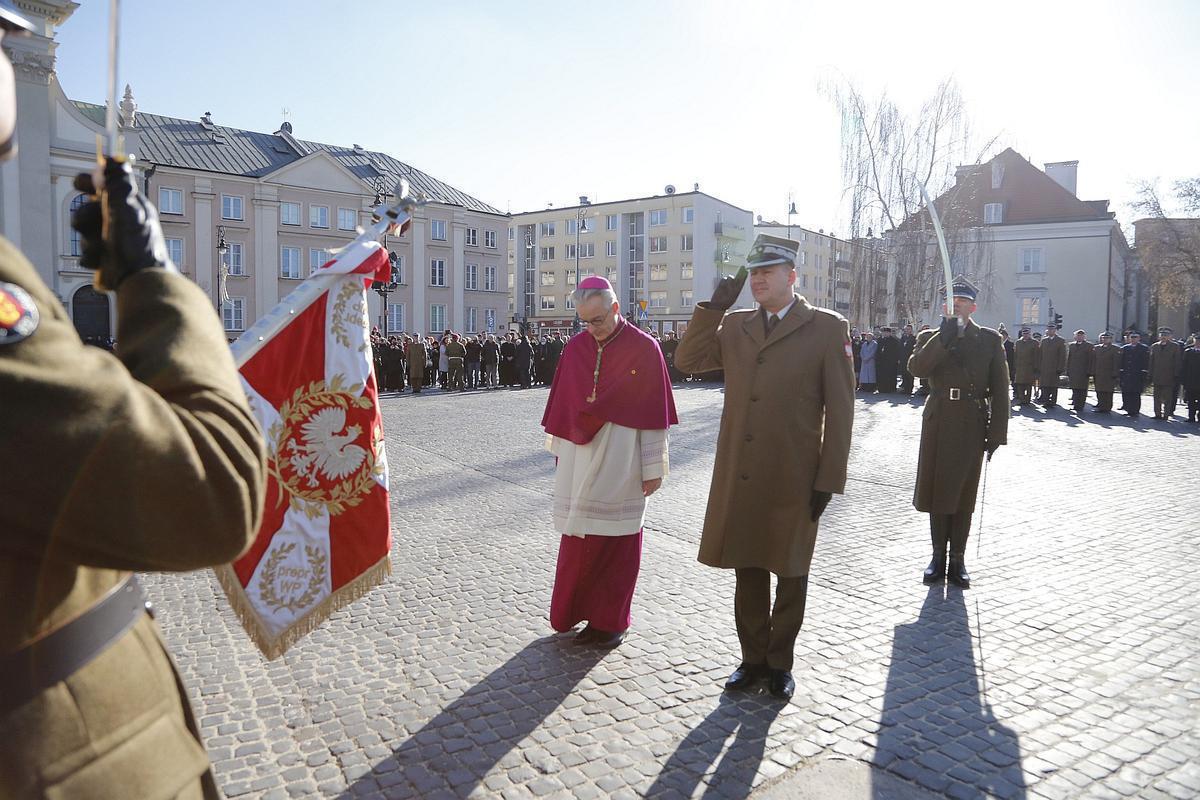 Po błogosławieństwie bp Wiesław Lechowicz udał się na Plac Krasińskich, gdzie zgodnie z ceremoniałem wojskowym przyjął meldunek w towarzystwie gen. bryg. Tomasza Dominikowskiego, dowódcy Garnizonu Warszawa, oddał hołd sztandarowi Wojska Polskiego i złożył wiązankę kwiatów pod Pomnikiem Powstania Warszawskiego.