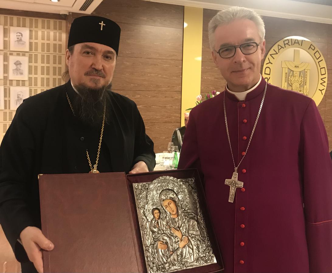 Podczas ostatniej części uroczystego ingresu biskupa polowego, JE arcybiskup Jerzy (Pańkowski) Prawosławny Ordynariusz Wojskowy osobiście pogratulował biskupowi Lechowskiemu dołączając bratniemu ordynariuszowi wojskowemu życzenia oraz błogosławieństwo Walecznej Hetmanki w postaci ikony Matki Bożej.