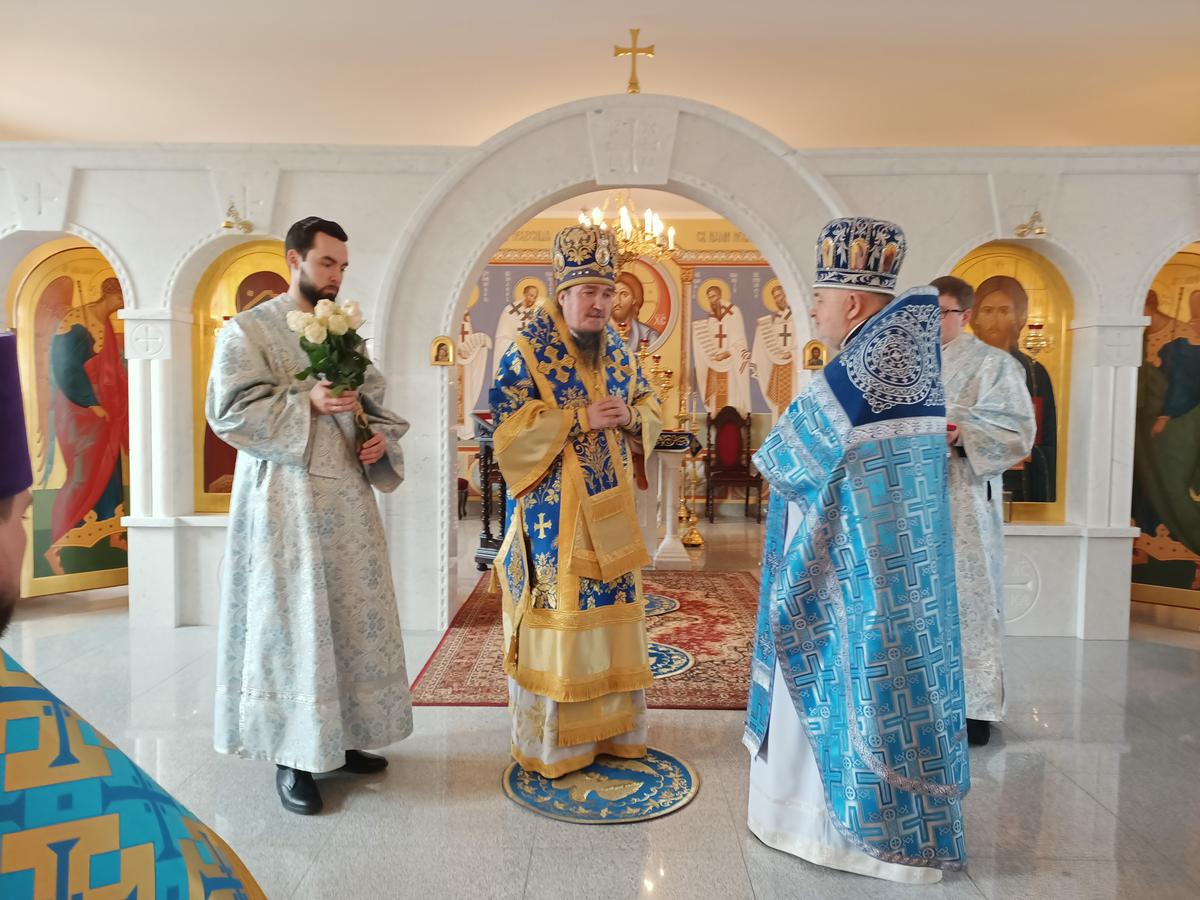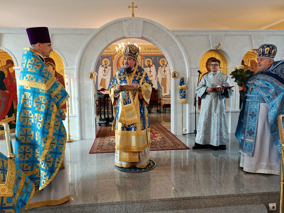 Pozdrawiając w dniu święta zebranych w świątyni Władyka złożył życzenia urodzinowe ks. mitratowi płk. rez. Aleksemu Andrejukowi Kanclerzowi Prawosławnego Ordynariatu oraz ks. mjr. Tomaszowi Paszce Dziekanowi Wojsk Obrony Terytorialnej z okazji 4. rocznicy święceń kapłańskich. Życzenia zwieńczył śpiew Długich lat życia przez zgromadzonych w świątyni wiernych.