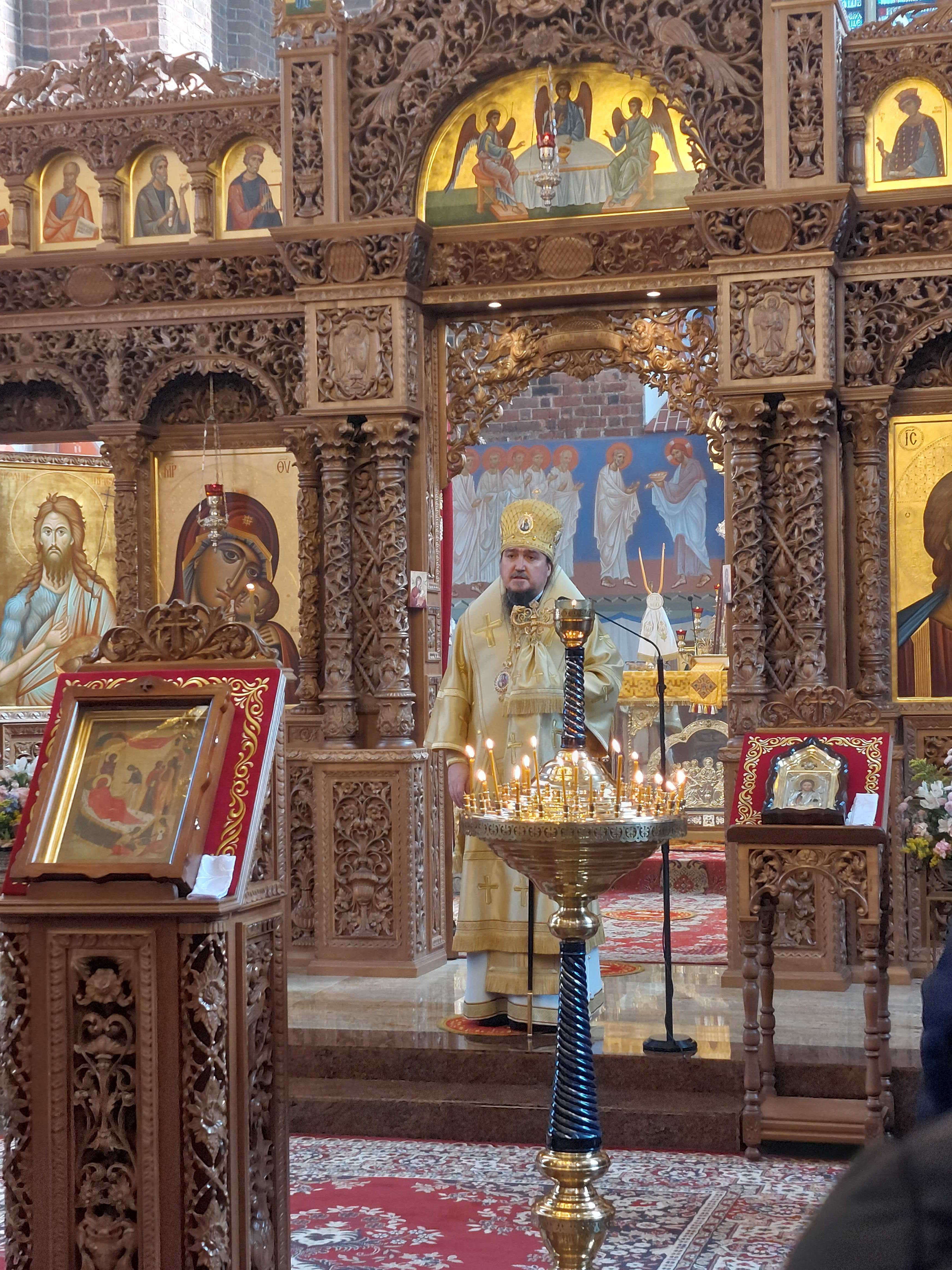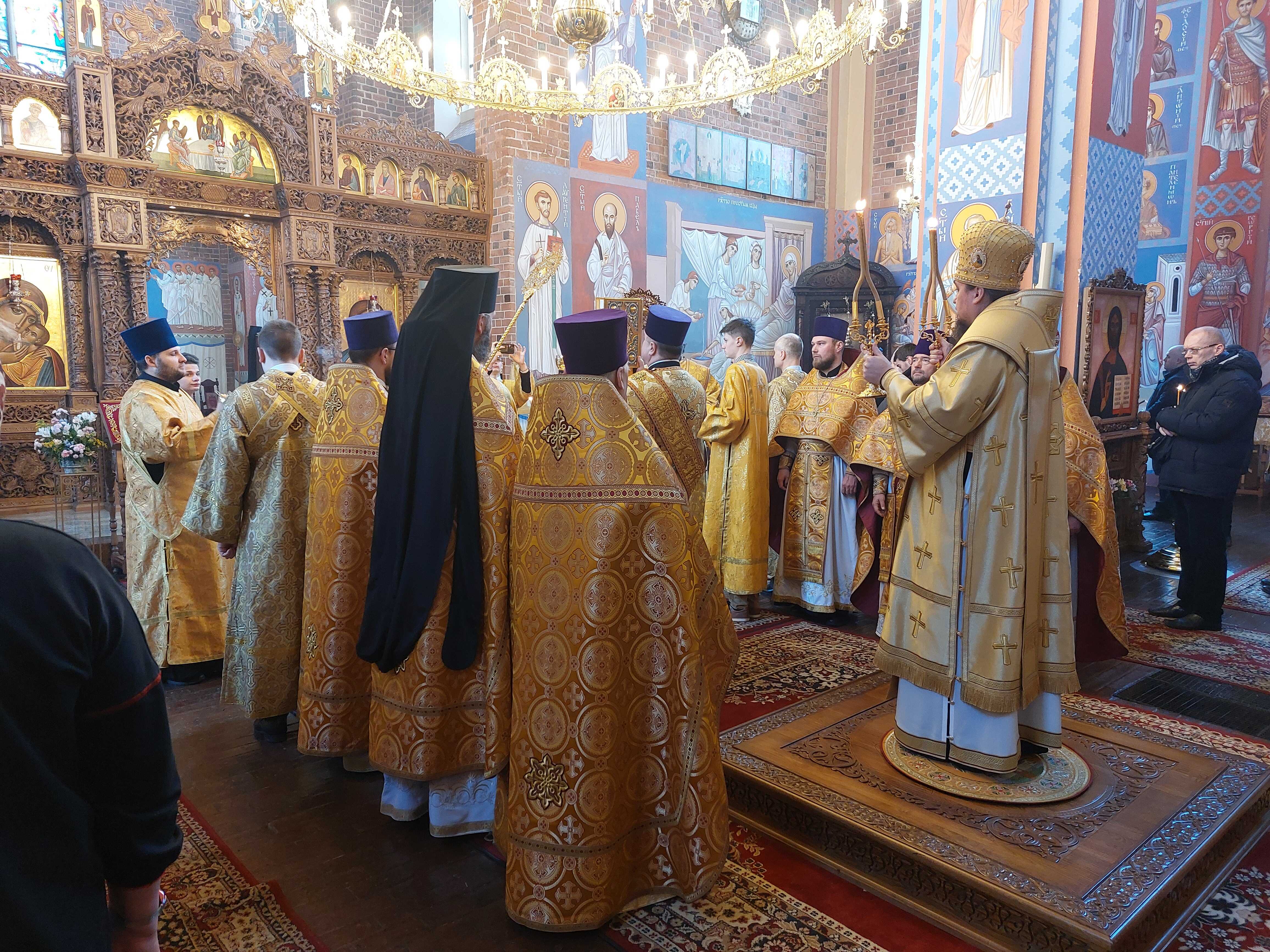 O godzinie 9.00 uczestnicy niedzielnego spotkania wzięli udział w Świętej Boskiej Liturgii, której przewodniczył Jego Ekscelencja Najprzewielebniejszy Jerzy Arcybiskup Wrocławski i Szczeciński. Z homilią zwrócił się do wiernych o. ihumen Spirydon (Kuziak). Kapłan przestrzegał, abyśmy zawsze uważali się za największych grzeszników i byli pokorni, czyli świadomi własnej niedoskonałości. Pod koniec nabożeństwa, ze słowem do uczestników Liturgii zwrócił się Władyka Jerzy. Pozdrowił wszystkich przystępujących do Sakramentu Spowiedzi i Eucharystii. Powitał także przybyłą młodzież z całej diecezji i pozdrowił ich ze świątecznym dniem.