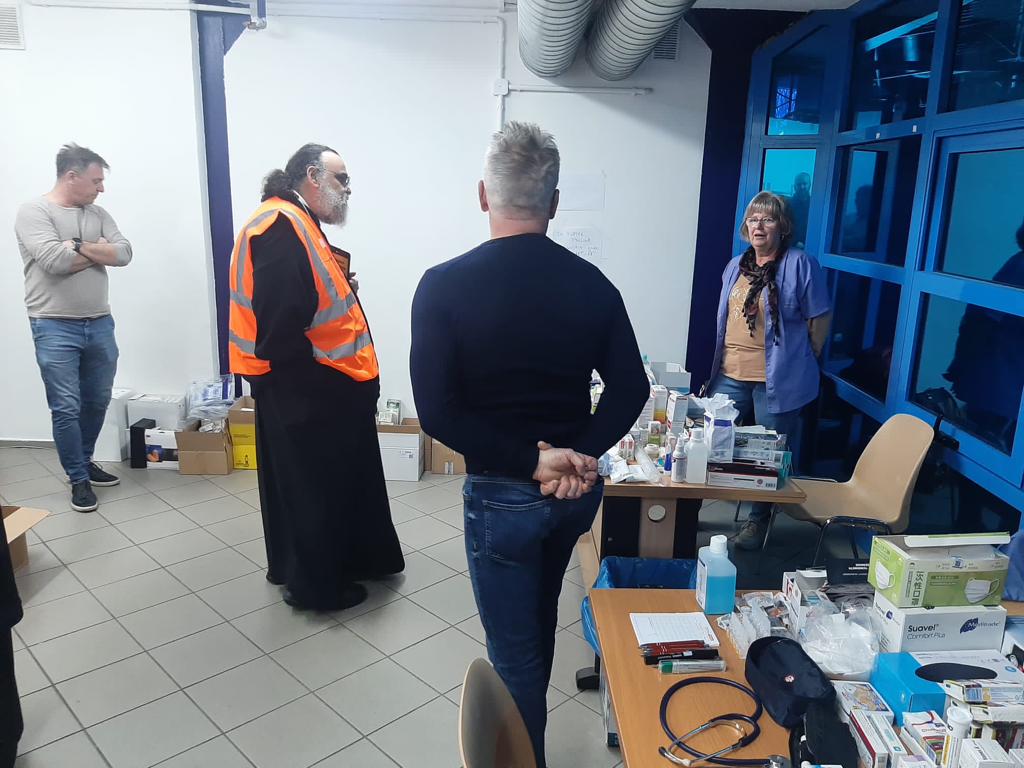 Metropolita Izajasz odwiedził również jeden z głównych punktów pobytu uchodźców na dolnym śląsku - wrocławską Halę Orbita gdzie w szczytowym momencie znajdowało schronienie kilkaset osób. Jego Ekscelencja przekazał od Centrum Pomocy Humanitarnej Metropolii Tamassos pomoc, która była odpowiedzią na zapotrzebowanie zgłoszone przez administrację punku pomocy uchodźcom w Hali Orbita. Była to niemal setka ręczników, klapków kąpielowych dla kobiet i dzieci, środki higieny osobistej, torby podróżne oraz wiele innych niezbędnych w sytuacji uchodźstwa rzeczy. Jego Ekscelencja spotkał się z wolontariuszami oraz przebywającymi w ośrodku uchodźcami.