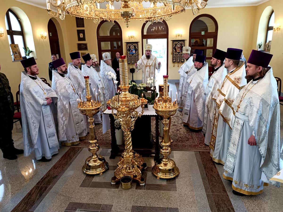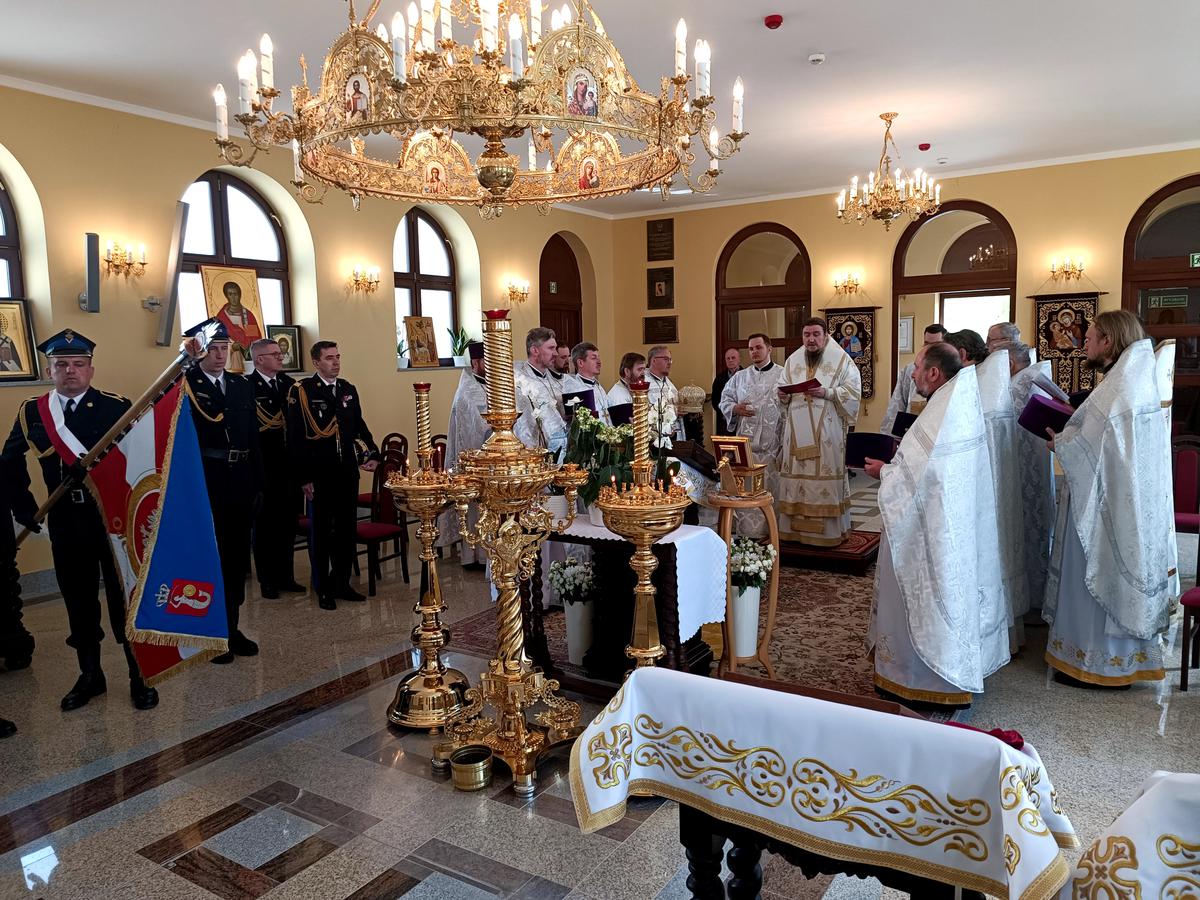 Uroczystości rozpoczęły się świąteczną Boską Liturgią, której przewodniczył władyka Jerzy w asyście kleru parafii wojskowej, pracowników POWP oraz księży kapelanów pożarnictwa. Szczególne modlitwy wzniesione zostały do św. męcz. płk. Bazylego Martysza, którego pamięć jest wspominana w tym dniu.