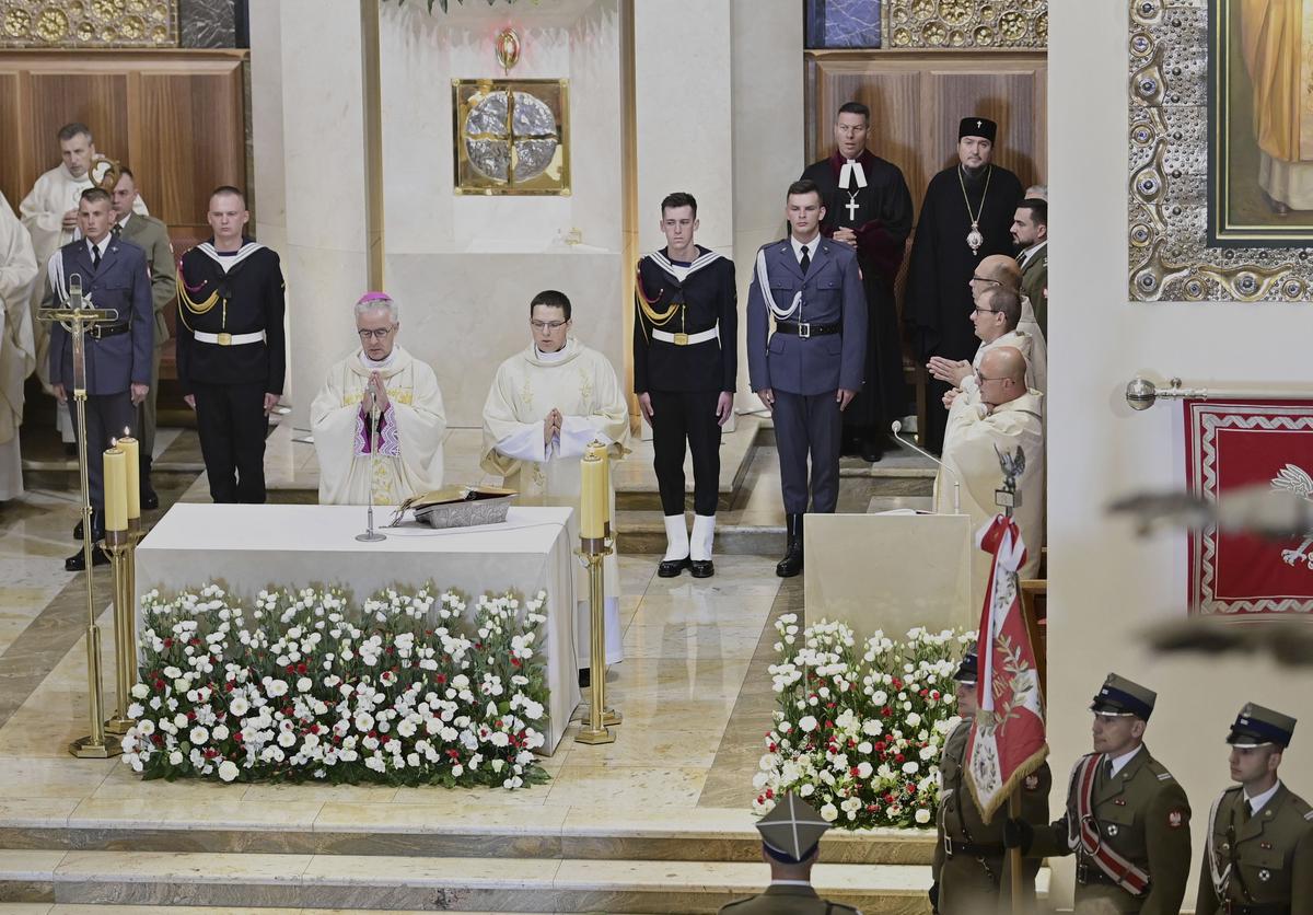 Następnie biskupi wojskowi dokonali uroczystego błogosławieństwa i oświęcenia sztandaru. (red. POWP)