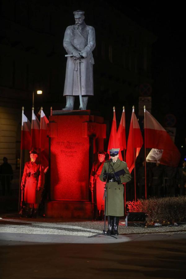 Kolejno przed pomnikiem Marszałka Józefa Piłsudskiego w Warszawie odbył się Capstrzyk niepodległościowy, który zainaugurował centralne obchody 104. rocznicy odzyskania przez Polskę niepodległości.
