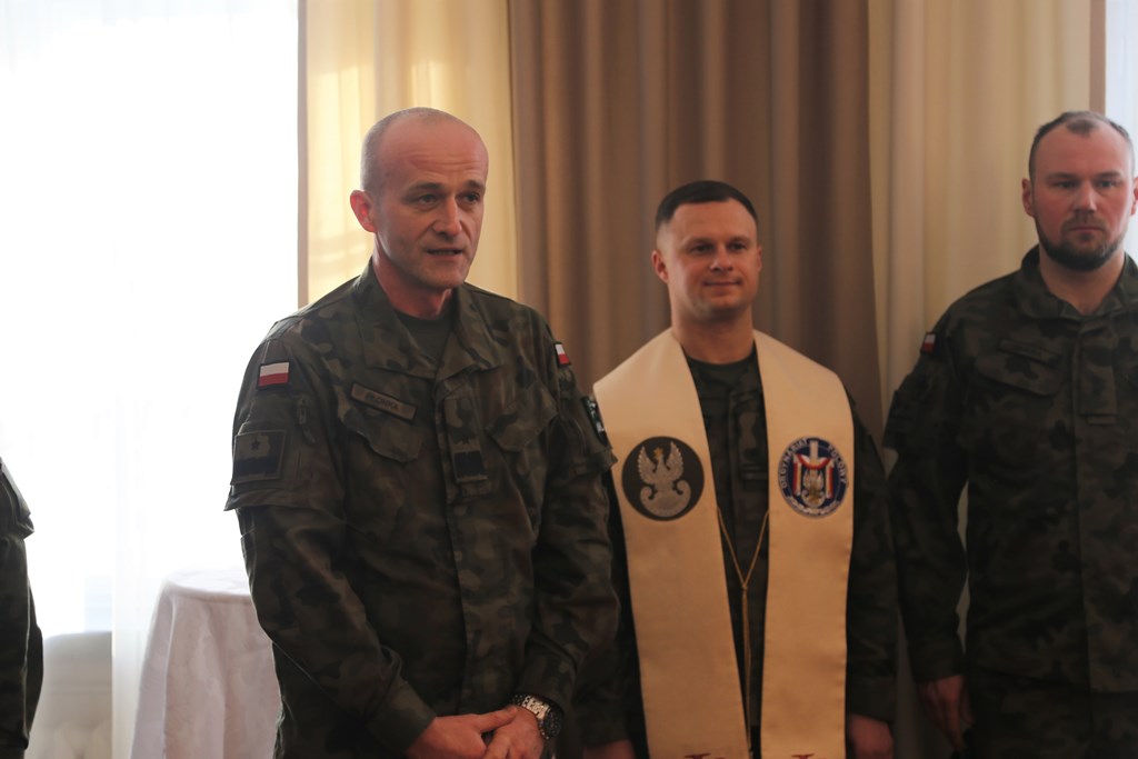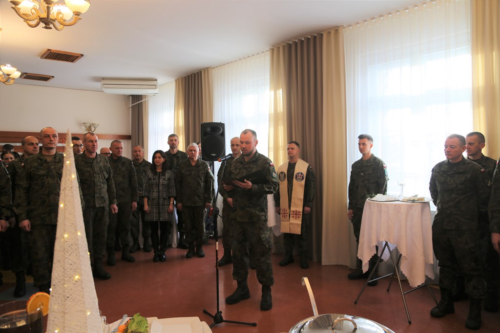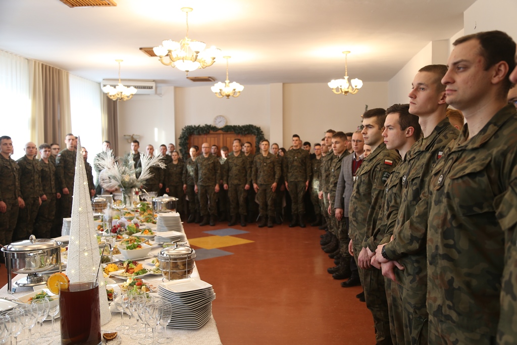 Kapelan Akademii ks. mjr Maksymilian Jezierski udzielił zebranym duszpasterskiego błogosławieństwa, a następnie poświęcił dania, które znajdowały się na świątecznym stole. Życzył radosnych, rodzinnych i pełnych refleksji Świąt. Życzenia złożył również prawosławny kapelan AWL ks. ppor. Igor Habura i odczytał modlitwę w intencji kadry dowódczej, wykładowców, podchorążych oraz ich rodzin.