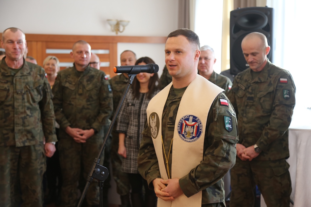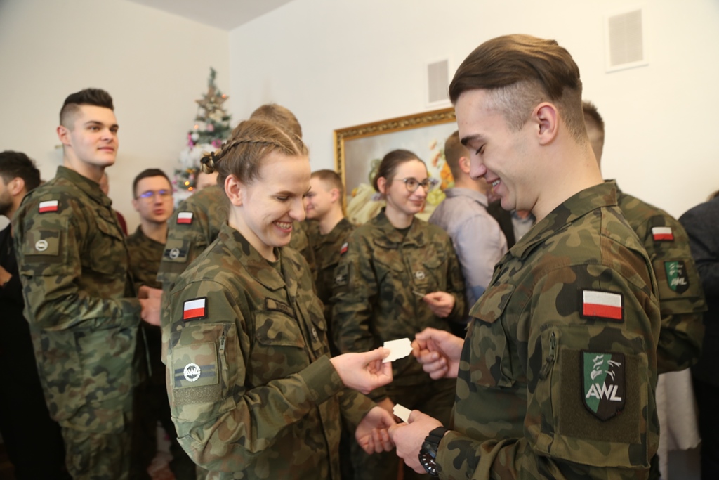 19 grudnia odbyło się spotkanie wigilijne społeczności Akademii Wojsk Lądowych, w którym uczestniczyli żołnierze, podchorążowie, słuchacze i pracownicy Uczelni. Rektor-Komendant AWL gen. bryg. dr hab. Piotr Płonka podziękował zebranym za zaangażowanie oraz wysiłek, które towarzyszą ich codziennej służbie i pracy. Podsumował upływający rok jednocześnie życząc pomyślności w kolejnym.