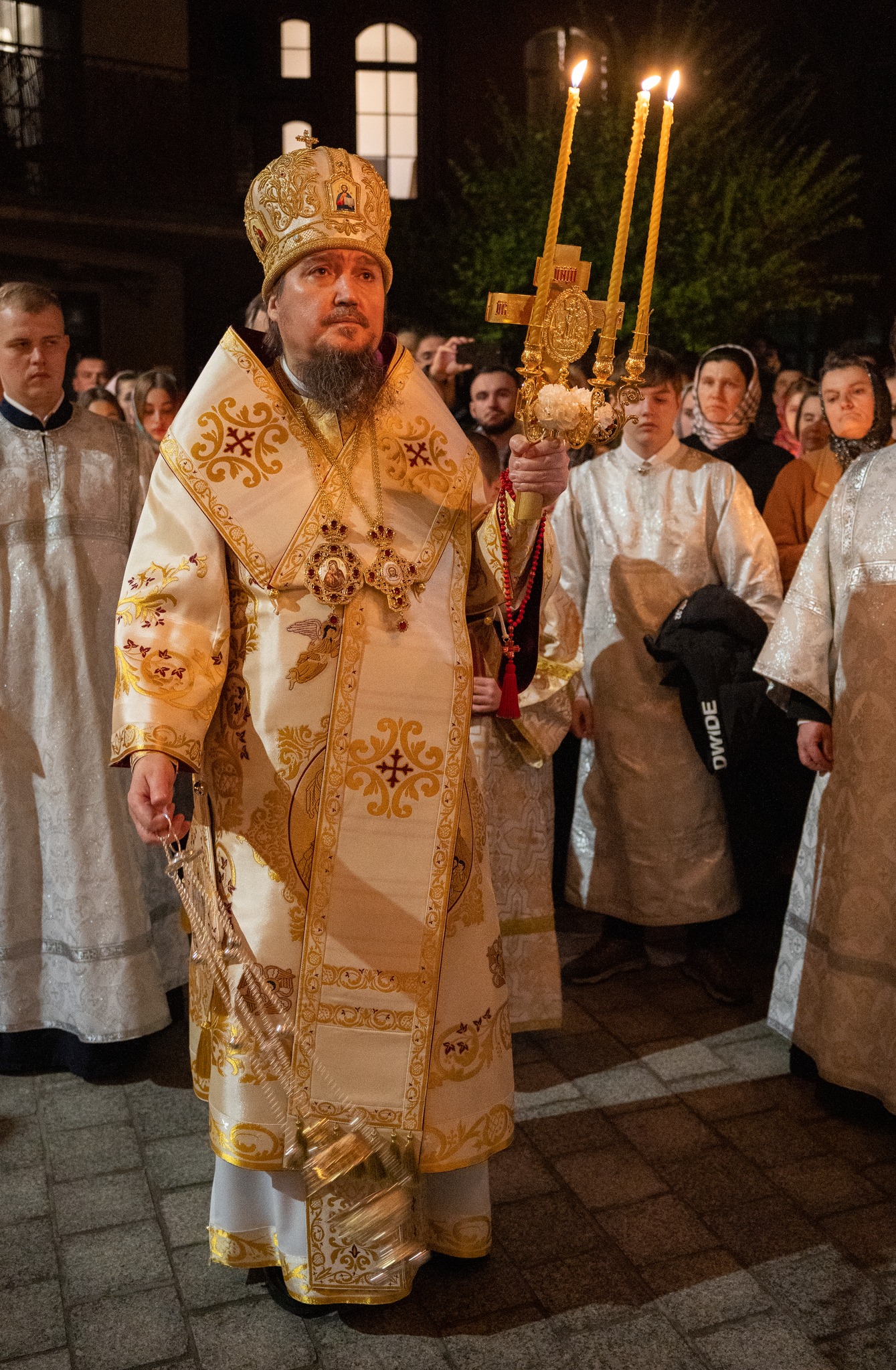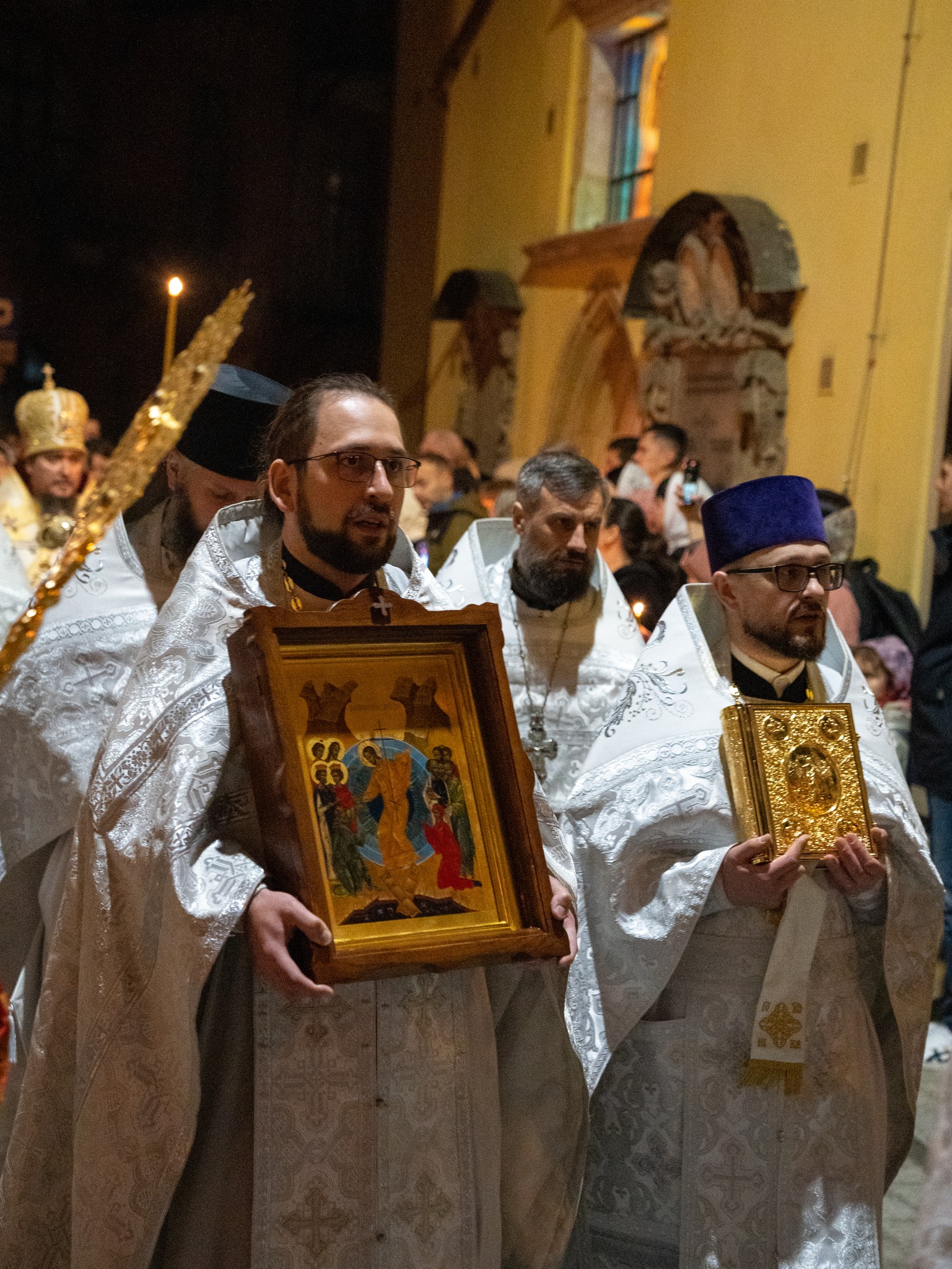 Przed północą, przy narastającym w dynamikę śpiewie paschalnej stichery „Zmartwychwstanie Twoje, Chryste Zbawicielu”, rozpoczęła się uroczysta procesja. Arcybiskup Jerzy, aklamacją „Chwała Świętej, Jednoistotnej i Życiotwórczej, i Niepodzielnej Trójcy”, rozpoczął paschalną jutrznię, symbolicznie otwierając Krzyżem Chrystusowym drzwi do katedry – symbol zwycięstwa życia nad śmiercią i otchłanią. Przybyli na paschalne nabożeństwo wierni, gromko odpowiadali na każde pozdrowienie „Chrystus Zmartwychwstał!” słowami „Zaprawdę zmartwychwstał!”.