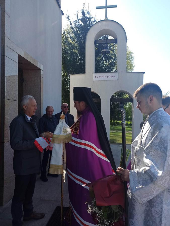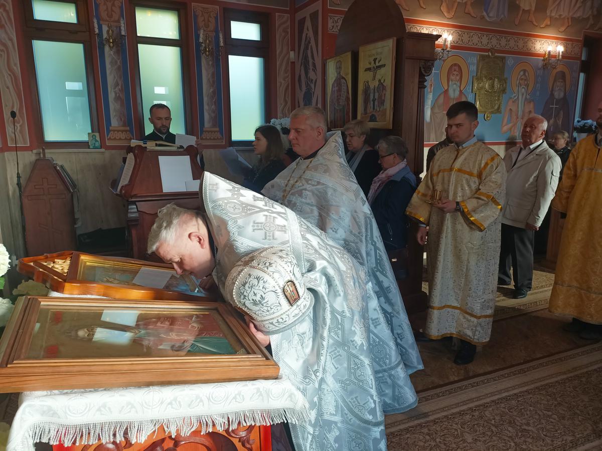 W dniu święta arcypasterza kwiatami witały dzieci, następnie symbolicznym chlebem i solą - starosta cerkiewny - st. chor. sztab. Tadeusz Bandzarewicz oraz już u progu świątyni proboszcz parafii, ks. mitrat płk rez. Aleksy Andrejuk. W słowie powitalnym proboszcz podkreślił, iż to święto obchodzone jest po raz 24. Zawsze wypada w okresie paschalnym co nadaje jemu szczególnie charakter świąteczny. Wyraził też radość z powrotu wojska do Białej Podlaskiej, a z tym związane jest powstanie nowych struktur wojskowych.