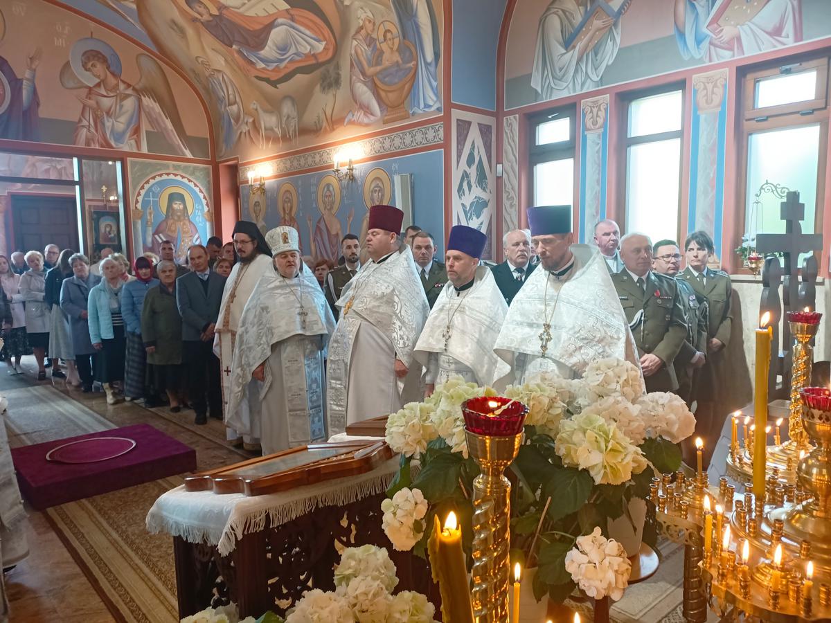Boskiej Liturgii w dniu święta przewodniczył Jego Ekscelencja Arcybiskup Wrocławski i Szczeciński Jerzy, Prawosławny Ordynariusz Wojskowy. Arcybiskupowi asystowali: Archimandryta Piotr z Monasteru w Jabłecznej, Archimandryta Włodzimierz z Monasteru w Sakach, dziekan okręgu bialskiego - ks. mitrat Andrzej Pugacewicz z parafii p.w. śww. Cyryla i Metodego w Białej Podlaskiej wraz z wikariuszem ks prot. Marcinem Gościkiem, dziekan okręgu kleszczelowskiego – ks. prot. Sławomir Jarocewicz, kapelani Prawosławnego Ordynariatu Wojska Polskiego: ks. prot. płk Jan Kot – dziekan Sił Powietrznych, ks. prot. płk Andrzej Jakimiuk – dziekan Wojsk Lądowych, ks. prot. płk Mirosław Kuczyński, ks. prot. Piotr Rajecki, ks. prot. ppor. Korneliusz Wilkiel, duchowieństwo miejscowej parafii oraz protodiakon ppor. Tomasz Pieczarka.
