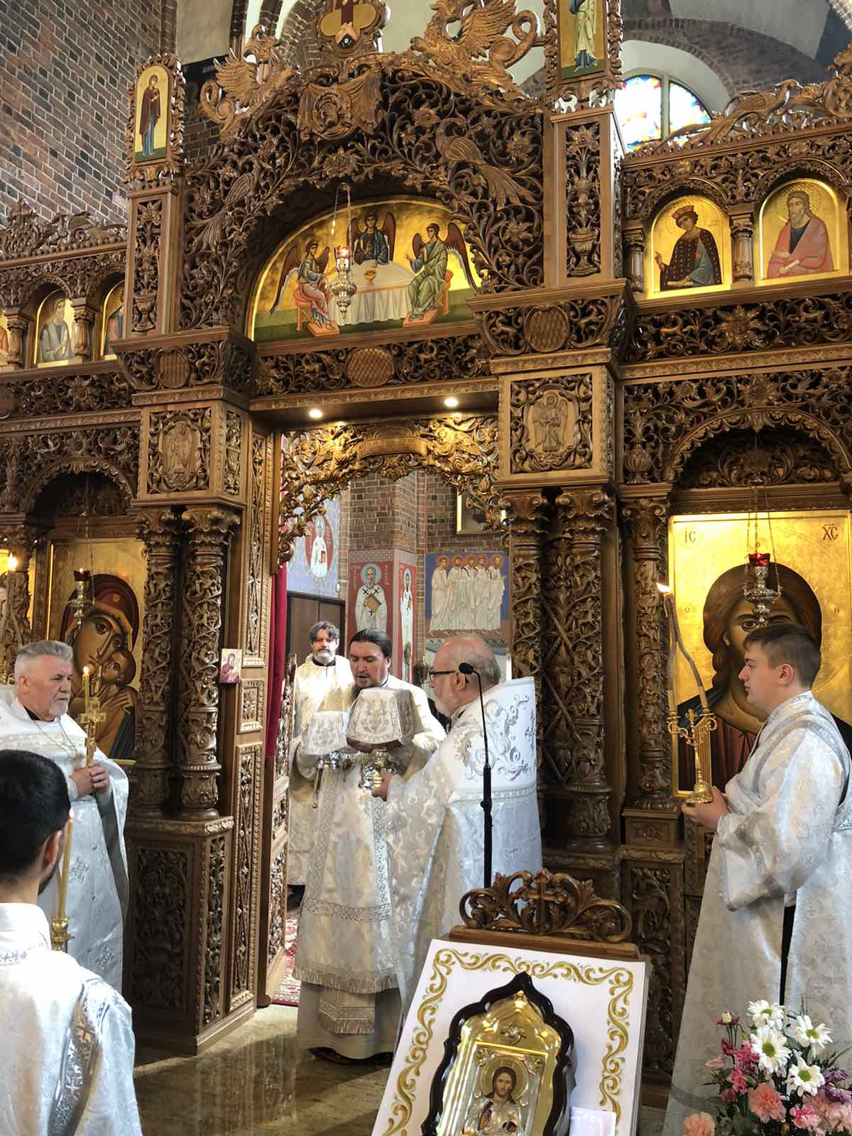 Po wysłuchaniu Ewangelii ze słowem do wiernych zwrócił się Władyka Jerzy. W swojej homilii podkreślił wyjątkowość dzisiejszego czytania - Modlitwy Arcykapłańskiej Chrystusa. Jest to jedyny fragment w Ewangelii gdzie znajdujemy tak obszerny zapis modlitwy Jezusa do Ojca. W swoich słowach Chrystus niejako poucza nas o warunkach prawdziwej jedności, która oparta jest na szczerej, pełnej miłości relacji między ludźmi budowanej poprzez i dzięki Chrystusowi. To właśnie Chrystus jest tym co odróżnia świecki humanizm od prawdziwej miłości chrześcijańskiej. To On jest fundamentem, powodem i źródłem prawdziwej, nieobłudnej i bezinteresownej miłości. Następnie Władyka nawiązał do św. Ojców I Soboru Powszechnego, których liturgiczną pamięć dziś świętowaliśmy. To właśnie oni - tych 318 Ojców, pokazało czym to miłość i jedność powinna być. Powodowani troską i miłością do ludzi przeciwstawili się niszczącej wspólnotę Cerkwi herezji Ariusza, dając wyraz wiary opartej na Ewangelii.