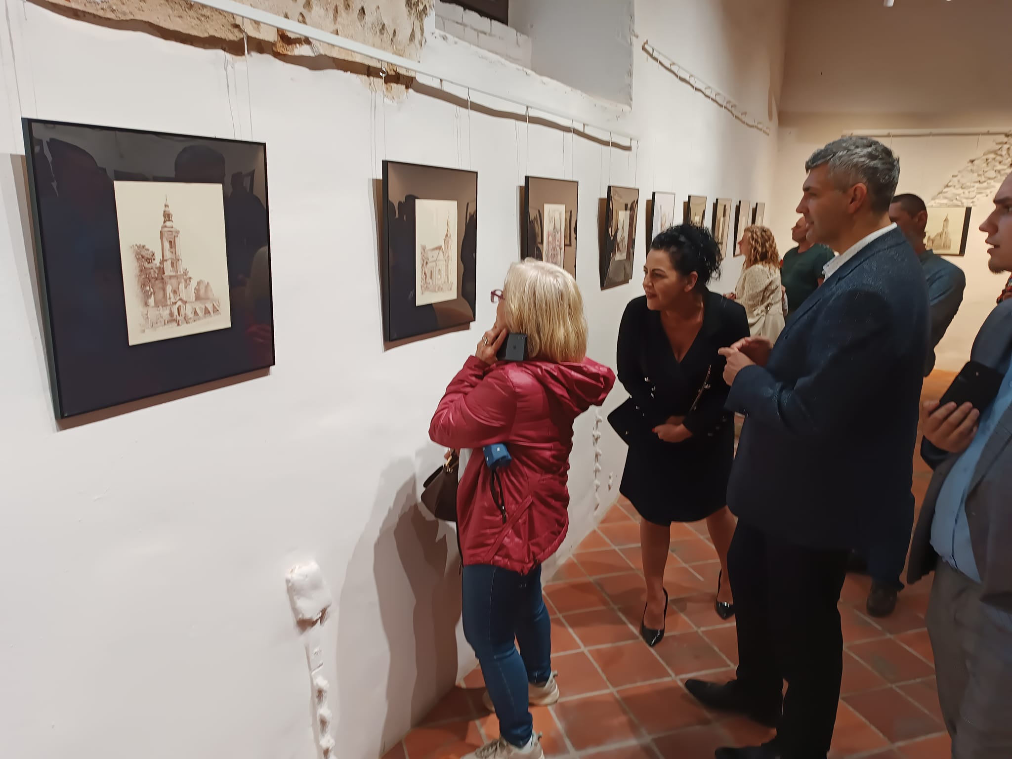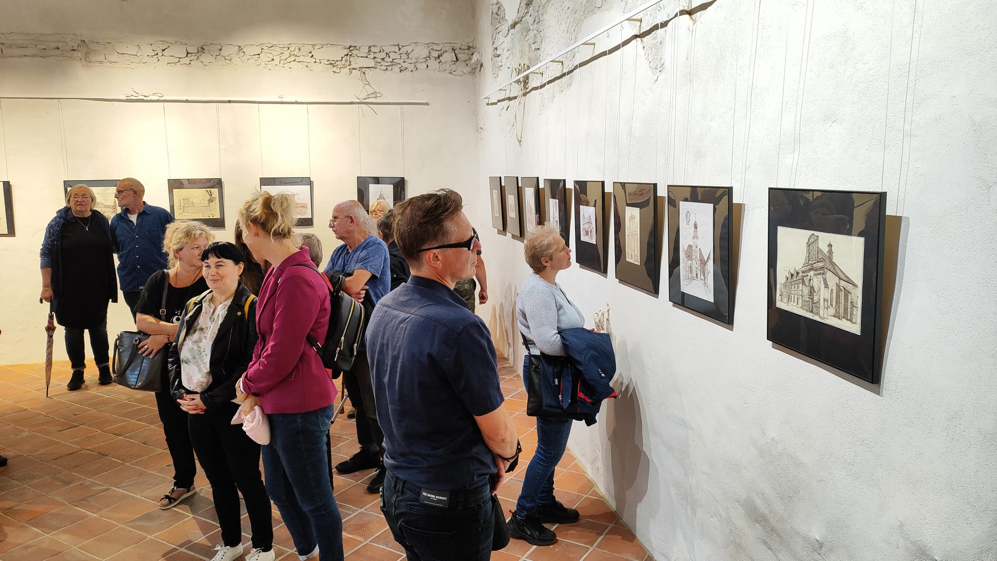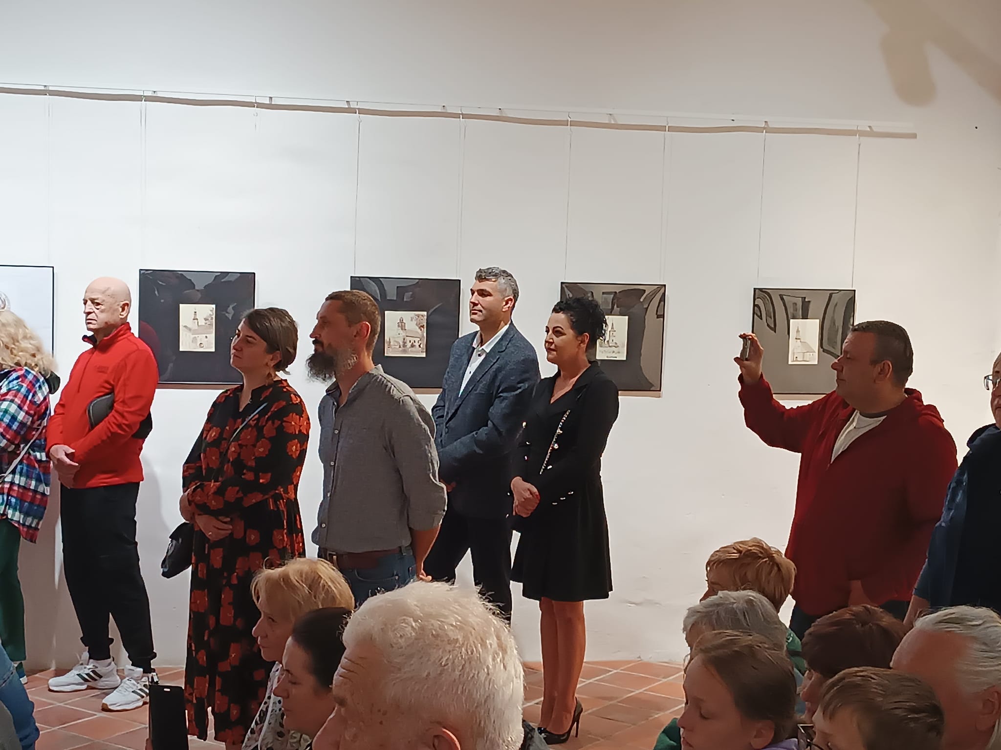 Rysunek piórkiem to dzieło sztuki częściowo lub w całości wykonane linearną metodą tworzenia. Do rysowania piórkiem używa się tuszu lub atramentu oraz najczęściej gładkiego papieru. Ta technika rysunkowa wymaga operowania kreską (tzw. kreskowanie) lub cieniowaniem. Dzięki dopełnianiu konturów zróżnicowaniem tonalnym rysownik chce osiągnąć trójwymiarową formę na papierze. Jest ona przez niego modelowana za pomocą blisko zestawionych ze sobą pociągnięć piórkiem w postaci cieniowanych pól lub cieniowanych, równoległych i przecinających się linii. W celu osiągnięcia mocniejszego waloru stosuje się gęściej kładzione kreski, które jednak nie mogą zlewać się w plamę. Większość wykonywanych tą techniką rysunków powstaje poprzez nanoszenie ważnych granic figur bądź elementów krajobrazu za pomocą linii ciągniętej piórkiem. Można także podmalowywać rysunek (lawowanie pędzlem) lub też nanosić warstwę koloru na rozległą powierzchnię. Różnicowanie efektów końcowych można osiągnąć dzięki operowaniu różnymi tuszami (węglowym, ciemnobrunatnym zwanym bistrem i tzw. atramentem galusowym). W trakcie otwarcia wernisażu Chór św. Jerzego, w pomniejszonym składzie, zaśpiewał kilka utworów dwugłosowych w języku staro-cerkiewno słowiańskim.
