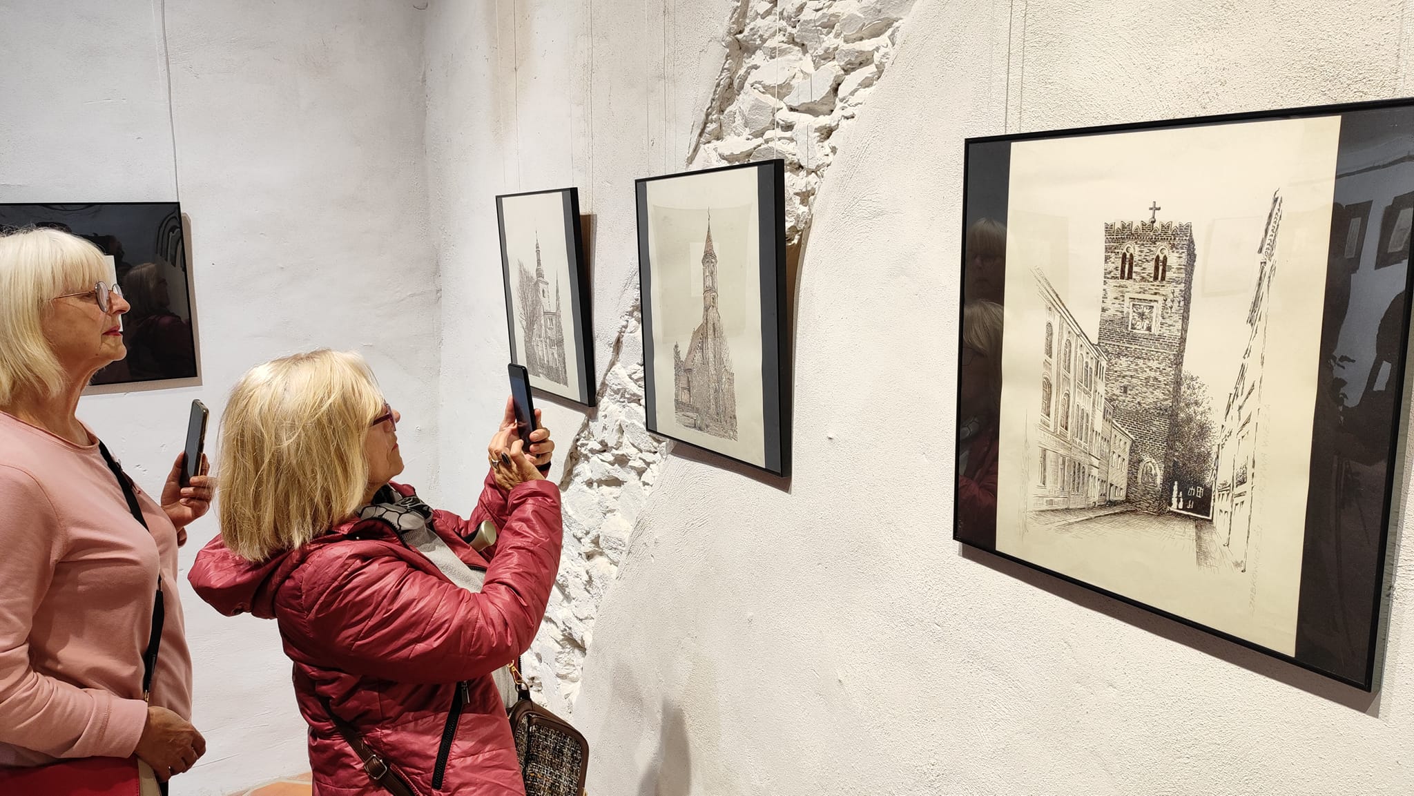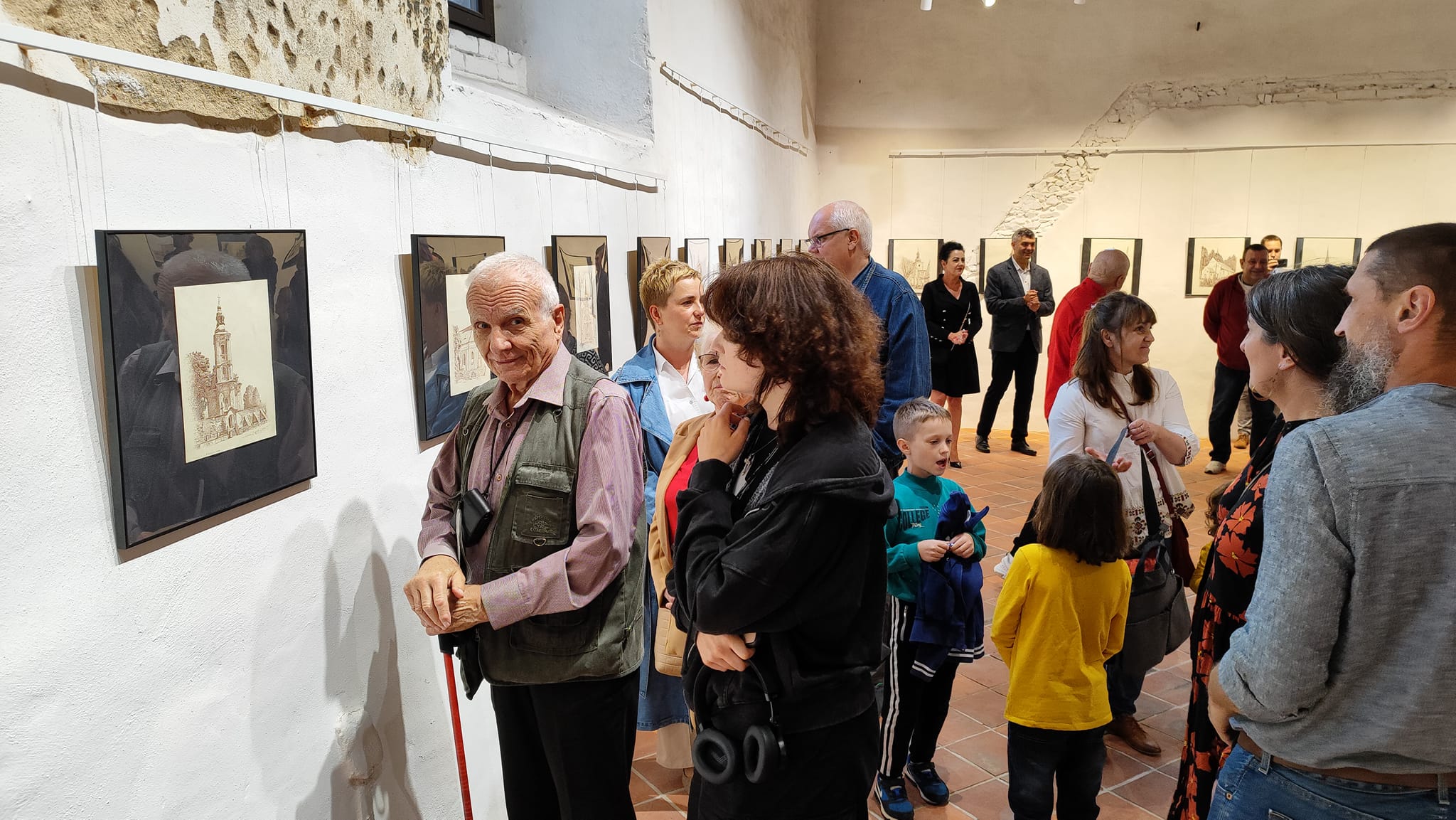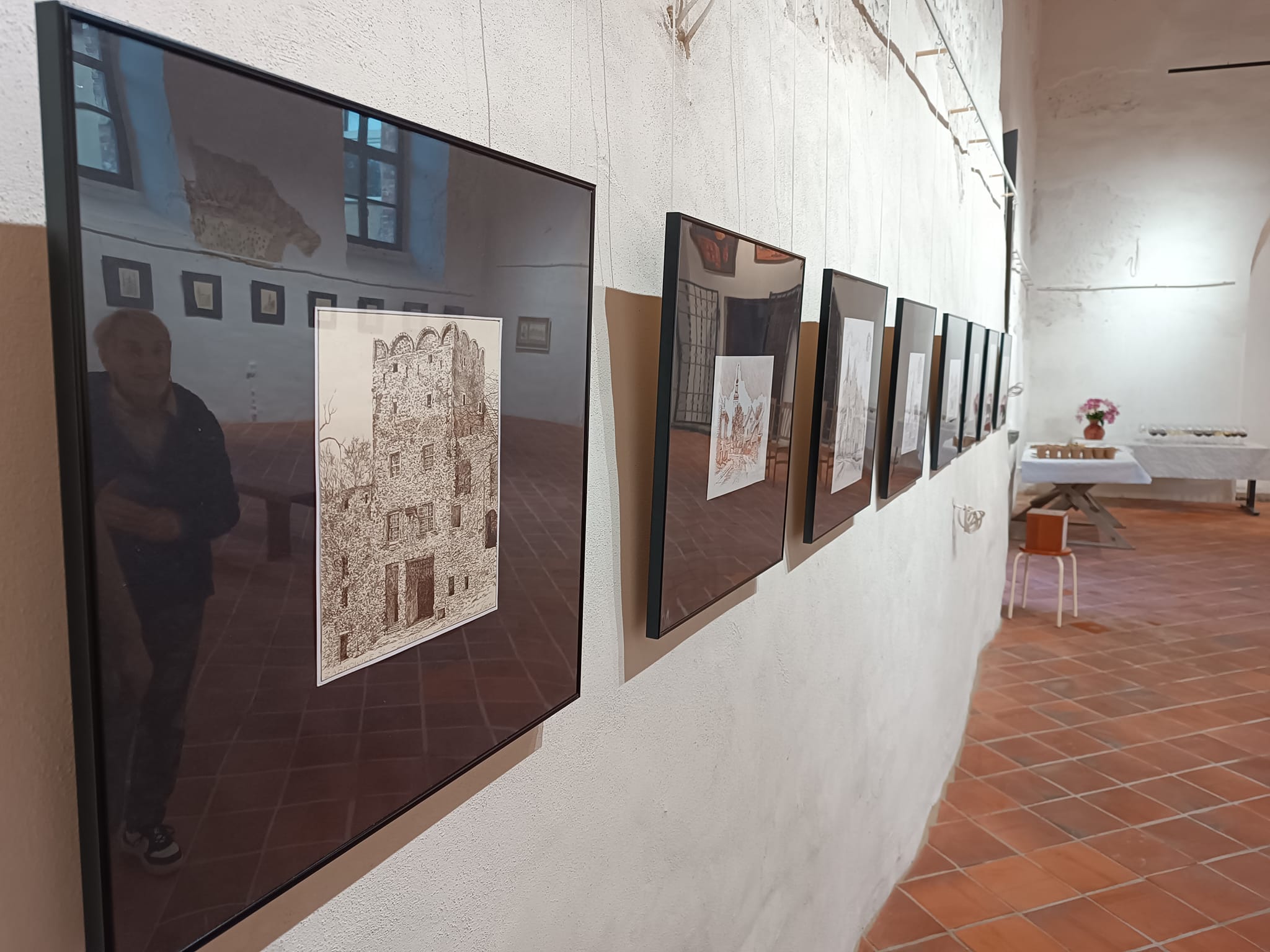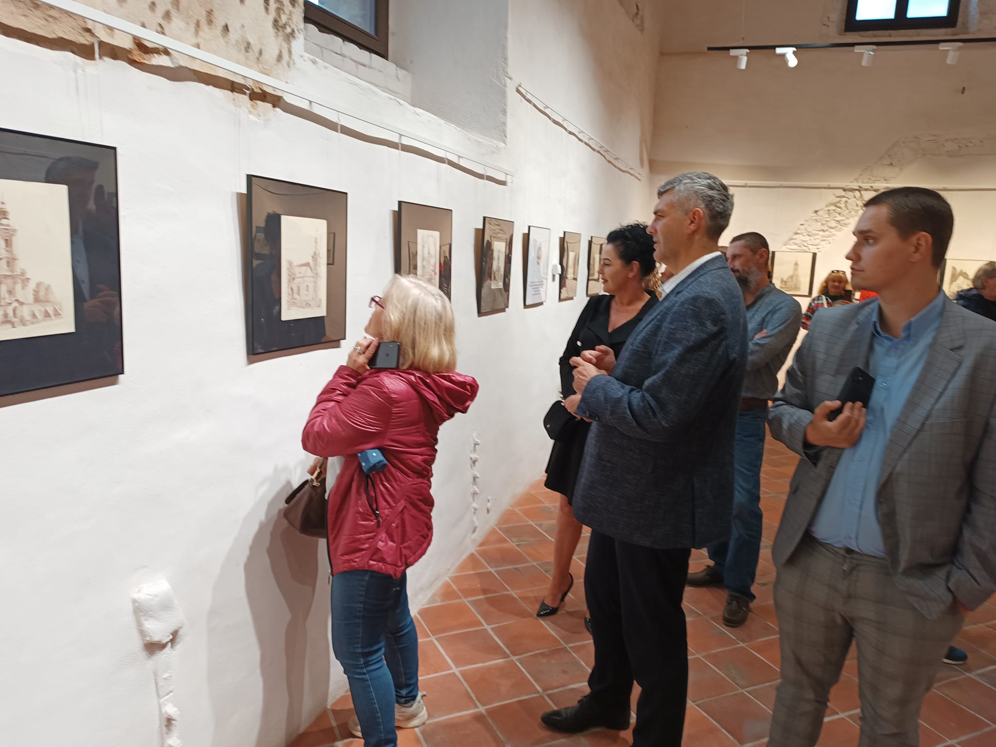 Rysunek piórkiem to dzieło sztuki częściowo lub w całości wykonane linearną metodą tworzenia. Do rysowania piórkiem używa się tuszu lub atramentu oraz najczęściej gładkiego papieru. Ta technika rysunkowa wymaga operowania kreską (tzw. kreskowanie) lub cieniowaniem. Dzięki dopełnianiu konturów zróżnicowaniem tonalnym rysownik chce osiągnąć trójwymiarową formę na papierze. Jest ona przez niego modelowana za pomocą blisko zestawionych ze sobą pociągnięć piórkiem w postaci cieniowanych pól lub cieniowanych, równoległych i przecinających się linii. W celu osiągnięcia mocniejszego waloru stosuje się gęściej kładzione kreski, które jednak nie mogą zlewać się w plamę. Większość wykonywanych tą techniką rysunków powstaje poprzez nanoszenie ważnych granic figur bądź elementów krajobrazu za pomocą linii ciągniętej piórkiem. Można także podmalowywać rysunek (lawowanie pędzlem) lub też nanosić warstwę koloru na rozległą powierzchnię. Różnicowanie efektów końcowych można osiągnąć dzięki operowaniu różnymi tuszami (węglowym, ciemnobrunatnym zwanym bistrem i tzw. atramentem galusowym). W trakcie otwarcia wernisażu Chór św. Jerzego, w pomniejszonym składzie, zaśpiewał kilka utworów dwugłosowych w języku staro-cerkiewno słowiańskim.
