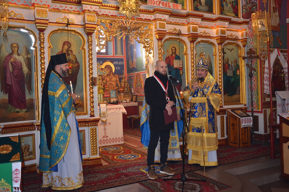 W poniedziałek 4 grudnia wczesnym rankiem mieszkańcy Lubina mieli okazję podziwiać ubraną w galowe stroje orkiestrę górniczą, która w dzień Święta Braci Górniczej dźwiękami instrumentów wzywała swoich przełożonych do świątecznych uroczystości. Następnie o godz. 9:00 w Lubinie rozpoczęły nabożeństwa w intencji Braci Górniczej i ich rodzin. Tegorocznej Świętej Boskiej Liturgii dla Dolnośląskiej Prawosławnej Braci Górniczej przewodniczył Jego Ekscelencja, Najprzewielebniejszy Jerzy, Ordynariusz Diecezji Wrocławskiej i Szczecińskiej, Prawosławny Ordynariusz Wojskowy w Parafii Prawosławnej Świętej Trójcy w Lubinie. U progu Świątyni Władykę przywitał Komitet Górniczy w osobach Mariana Szkurata, Ireneusz Szpytko i Adama Herbuta, którzy w słowach powitania podziękował Ekscelencji za przybycie na świąteczne uroczystości Barbórki, za duchową opiekę i modlitwę za cały Stan Górniczy. Górnicy wręczyli Władyce także górniczy upominek. Następnie słowa powitania i podziękowania za przewodniczenie w świętej Boskiej Liturgii oraz modlitwę za cały Stan Górniczy skierował do Ekscelencji kapelan Dolnośląskiej Prawosławnej Braci Górniczej, proboszcz lubińskiej parafii ks. prot. Bogdan Repeła. Powitał dostojnych gości oraz wszystkich zebranych na tegorocznym barbórkowym święcie, w szeczególności: Dyrektora ds. Pracowniczych KGHM Polska Miedź S.A O/ZG Polkowice-Sieroszowice Pana Łukasza Wereszczyńskiego, Dyrektora ds. Produkcji O/ZWR w Lubinie Pana Rafała Pępkowskiego, Dyrektora ds. Finansowych Huty Miedzi Cedynia, Pana Bogdana Droździaka, Doradcę Gabinetu Ministra Kultury, Ministerstwa Kultury i Dziedzictwa Narodowego, Pana Mateusza Powązkę oraz Poczty Sztandarowe Oddziału Zakładu Hydrotechnicznego KGHM Polska Miedź S.A w Lubinie i Oddziału Centralnego Ośrodka Przetwarzania Informacji KGHM Polska Miedź S.A w Lubinie oraz media społecznościowe TV KGHM Polska Miedź S.A Po komendzie wprowadzenia Pocztów Sztandarowych ks. prot. Bogdan Repeła poprosił Jego Ekscelencję Arcybiskupa Jerzego o przewodniczenie w nabożeństwie. Władyka w homilii skierowanej do wiernych i Braci Górniczej przybliżył szczególny wymiar życia liturgicznego, tak bardzo potrzebny dla każdego chrześcijanina, na istotę życia sakramentalnego, naszej obecności w Świętej Boskiej Liturgii i Eucharystii. Przybliżając święto Wprowadzenia do Świątyni Przenajświętszej Bogarodzicy podkreślił jego ponadczasowy charakter, ukazując na Rodziców Matki Bożej, Joachima i Annę, Ich oddanie i zaufanie Bogu, wiarę, pokorę i mądrość. Łaskę jaką otrzymali poprzez trwanie w ufności wobec Stwórcy oraz pragnienie wypełniania bożych przykazań w swoim życiu, a właściwie pełne oddanie się woli Bożej. Podkreślił jak ważny jest dla nas i całego kraju trud codziennej pracy Górników, prosił aby nie zapominali o codziennej modlitwie i zaufaniu do swojej niebiańskiej Patronki Świętej Barbary. Podkreślił jak ważną cechą każdego górnika jest wiara, szczególnie w obliczu potęgi żywiołów z którymi spotykają się na co dzień w wykonywanych obowiązkach. Jak budujące są słowa przywitania a zarazem modlitwy górników „Szczęść Boże” rozpoczynających dzień pracy, aby z Bożą pomocą zakończyli ją zawsze szczęśliwie wracając pełni sił do swych rodzin. Zakończenie tegorocznych uroczystości święta miało podniosły charakter jeszcze z jednego powodu, odznaczenia Pana Mateusza Powązki przez Jego Ekscelencję Arcybiskupa Jerzego najwyższym odznaczeniem Polskiego Autokefalicznego Kościoła Prawosławnego w Polsce, Orderem Św. Równej Apostołom Marii Magdaleny III Stopnia za pracę na rzecz ratowania dziedzictwa kulturowego Prawosławnej Diecezji Wrocławskiej i Szczecińskiej. Na zakończenie uroczystości Władyka jeszcze raz podziękował wszystkim za wspólną modlitwę życząc Bożego Błogosławieństwa i wyraził nadzieję na kolejne spotkanie z Bracią Górniczą w przyszłym roku. Ks. Bogdan Repeła, proboszcz lubińskiej cerkwi na zakończenie podziękował także Ekscelencji za przewodniczenie w tegorocznych uroczystościach górniczego święta, a wszystkim zebranym i całemu Górniczemu Stanowi złożył najserdeczniejsze życzenia, zdrowia oraz wszelkiej pomyślności i opieki Świętej Barbary w całym roku, przekazując na pamiątkę wszystkim zebranym nowowydany przez lubińską parafię Akatyst do Świętej Barbary, z prośbą o modlitwę, aby wstawiennictwo i opieka Świętej zawsze towarzyszyły w trudach codziennej pracy. Podziękowania skierowano także dla chóru parafialnego za piękny śpiew i ogromny wysiłek włożony w przygotowanie święta na czele z panią dyrygent Anną Andrianow. Dopełnieniem było zaproszenie wszystkich na wspólną agapę, a także na przyszłoroczne centralne uroczystości barbórkowe do Lubina.