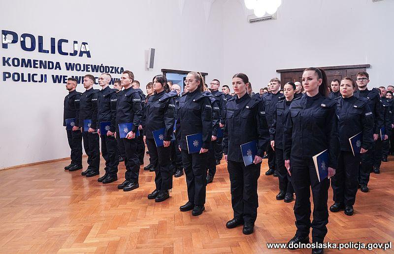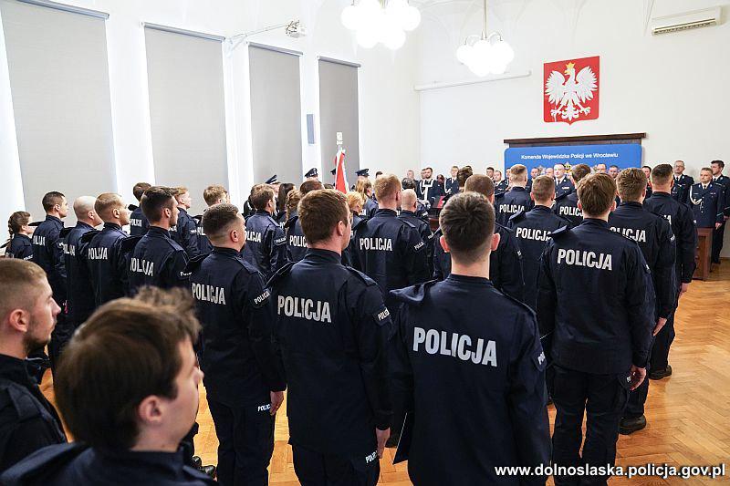 Podczas uroczystości głos zabrał także asp. szt. Roman Buczkowski z Zarządu Wojewódzkiego NSZZ Policjantów. Zabrzmiały też słowa otuchy i duchowego wsparcia ze strony kapelanów dolnośląskiej Policji ks. kanonika Stanisława Stelmaszka oraz ks. prot. Grzegorza Cebulskiego, którzy życzyli młodym funkcjonariuszom m.in. błogosławieństwa i ochrony na każdą godzinę życia oraz służby.