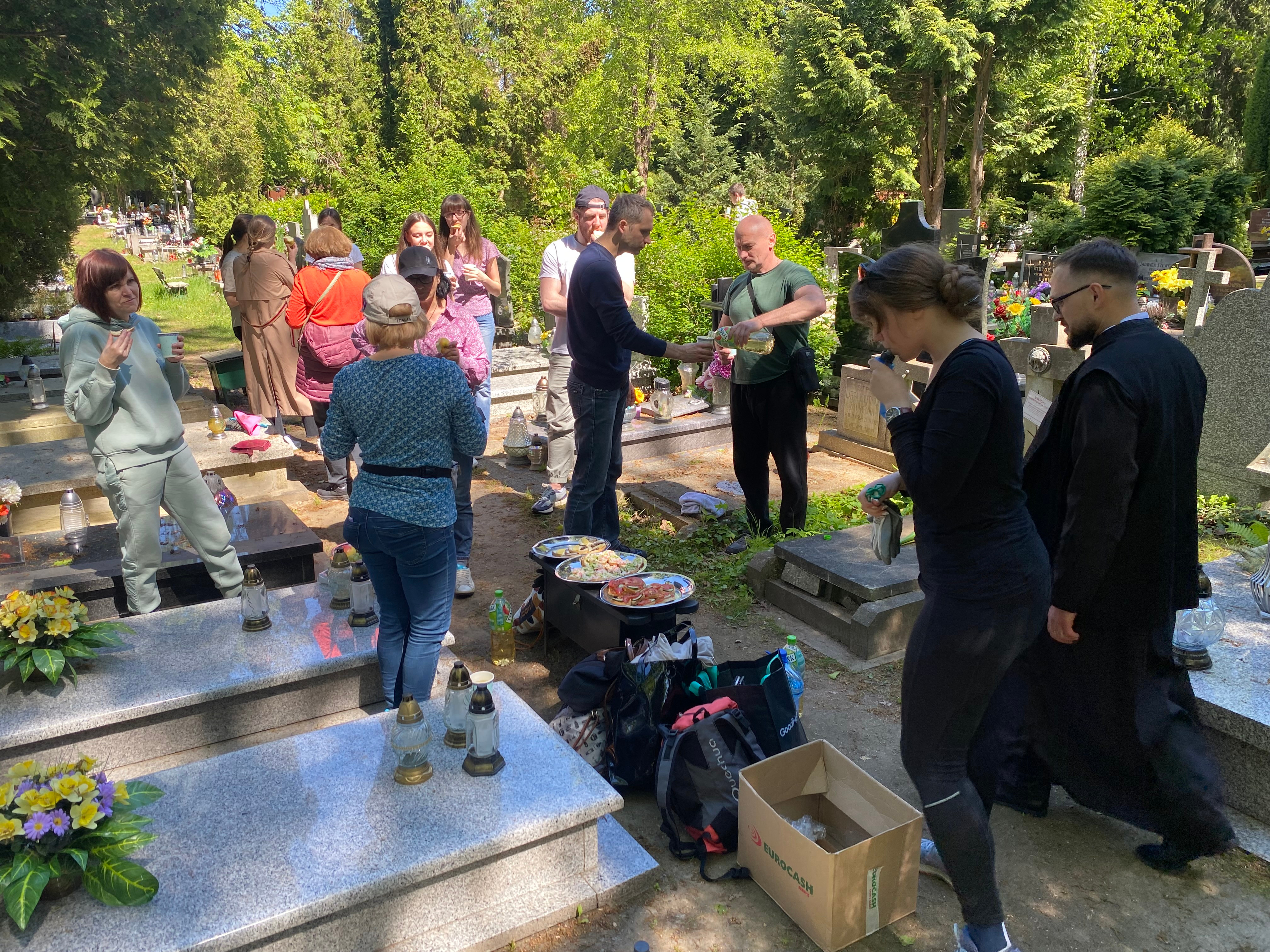 Modlono się za dusze zmarłych jak również wzniesiono prośby do Boga o wsparcie naszej pracy. Sprzątanie skoncentrowano głównie na uporządkowaniu opuszczonych grobów, na każdym z nich został zapalony znicz. Na zakończenie wydarzenia dla pokrzepienia sił, przygotowano poczęstunek, podczas którego uczestnicy mieli możliwość wzajemnego lepszego poznania się. Dziękujemy wszystkim biorącym udział w akcji za pomoc i wsparcie oraz o. Adamowi Góralczukowi za pomoc i duchową opiekę.