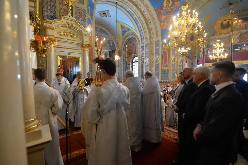 Uroczystej Boskiej Liturgii przewodniczył zwierzchnik Cerkwi w Polsce, JE Wielce Błogosławiony Sawa Metropolita Warszawski i całej Polski. W nabożeństwie uczestniczyli także IE Najprzewielebniejsi: Arcybiskup Białostocki i Gdański Jakub, Arcybiskup Wrocławski i Szczeciński Jerzy, Arcybiskup Przemyski i Gorlicki Paisjusz, Arcybiskup Bielski Grzegorz oraz Biskup Supraski Andrzej. Ponadto w świątyni obecni byli zaproszeni goście: rzymskokatolicki metropolita białostocki arcybiskup Józef Guzdek, wojewoda podlaski Jacek Brzozowski, marszałek Województwa Podlaskiego Łukasz Prokorym prezydent Białegostoku Tadeusz Truskolaski oraz przewodnicząca Rady Miasta Białegostoku Katarzyna Jamróz