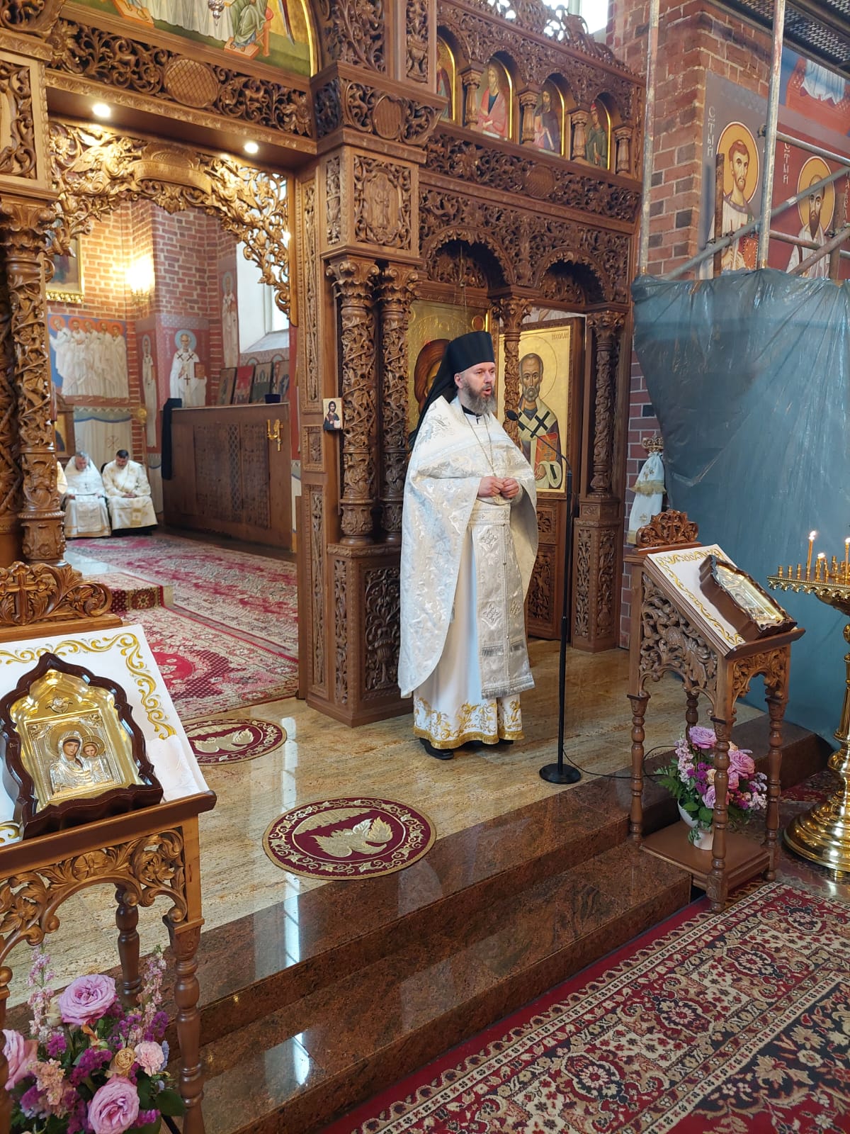 Po wysłuchaniu Ewangelii ze słowem do wiernych zwrócił się ks. ihumen Spirydon Kuziak. W swoim słowie zwrócił uwagę na często pomijane aspekty spotkania Jezusa z Samarytanką. Po pierwsze - Bóg nie ma względu na osobę, nie interesuje go co pomyśli człowiek o Jego decyzjach. Na świadka swojego samoobjawienia jako Mesjasza nie wybrał kogoś spośród “sławnych tego świata”, a kobietę, pół-pogankę, pięciokrotnie porzuconą przez mężów, samotną. To właśnie jej objawia siebie jako Zbawiciela Świata. Po drugie - spotkanie z Bogiem nie zawsze jest “przyjemne” z ludzkiego punktu widzenia, ale zawsze zbawienne z Boskiego. Samarytanka musiała stanąć twarzą w twarz ze swoją marnością, aby ujrzeć Mesjasza. Po trzecie - Bóg pragnie naszej miłości. Spotkanie Jezusa z Samarytanką, akurat przy studni, wpisuje się w głęboko biblijny obraz spotkania miłości. To właśnie przy studni rozpoczyna się miłość Izaaka i Rebeki, przy studni Jakub spotyka Rachelę, przy studni Mojżesz poznaje swoją przyszłą żonę Seforę. I nieprzypadkowo przy studni Samarytanka odnajduje prawdziwego Oblubieńca - Jezusa Mesjasza. Bóg więc gotów jest wkroczyć w nasze życie bez żadnych warunków wstępnych, być może nagle i zawsze w prawdzie, aby wezwać nas do miłości bowiem jak napisał ap. Jan “Bóg jest miłością: kto trwa w miłości, trwa w Bogu, a Bóg trwa w nim” (J 4,16).
