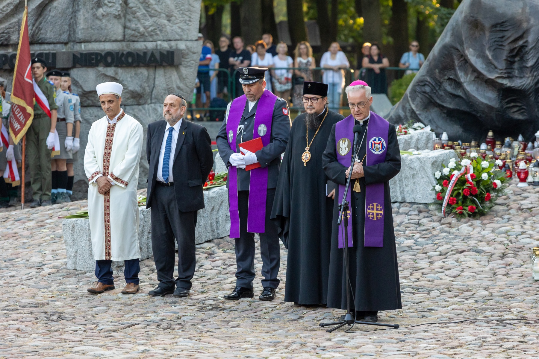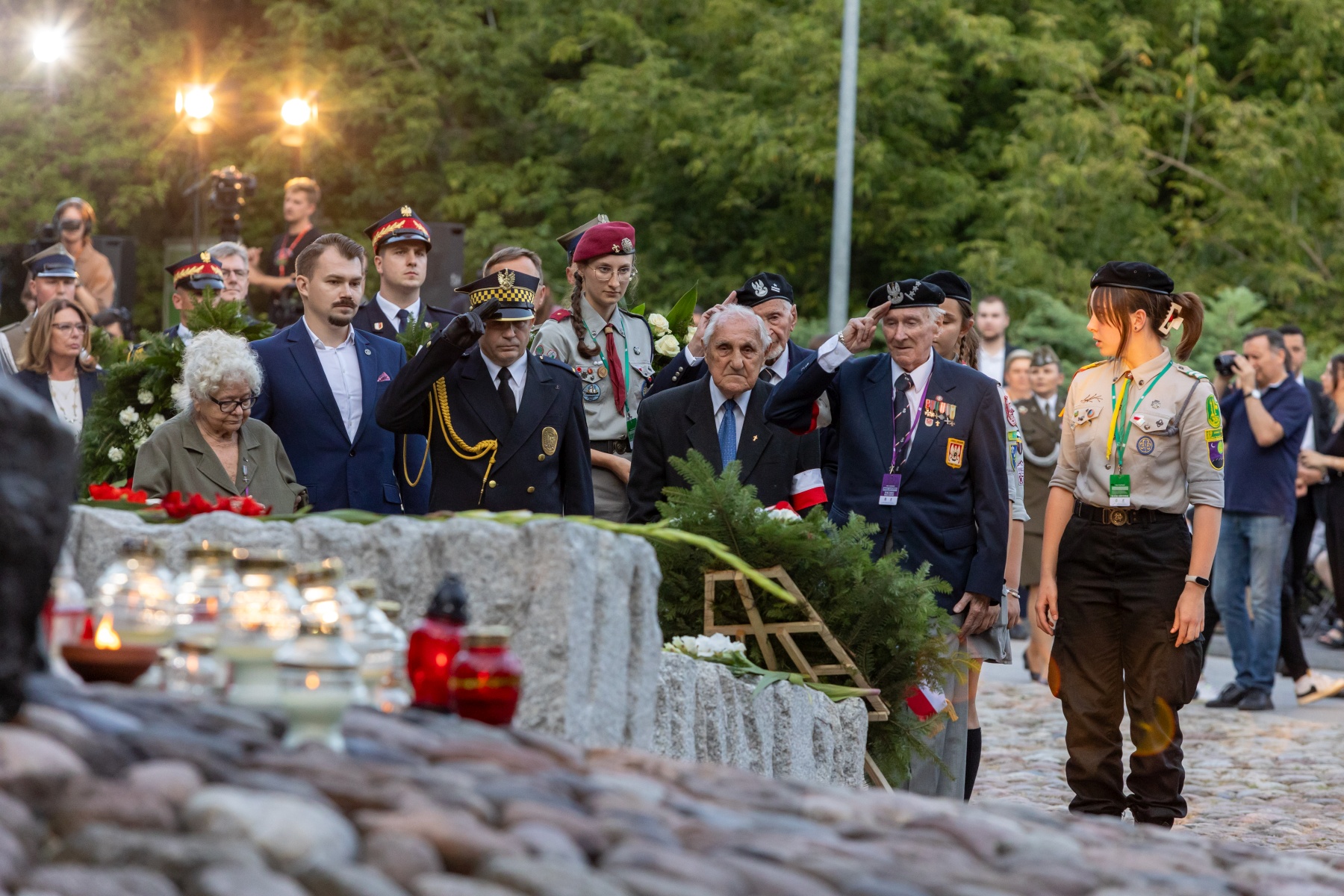 W uroczystości pod pomnikiem „Polegli – Niepokonani” na Cmentarzu Powstańców Warszawy uczestniczyli Powstańcy Warszawscy, marszałek Sejmu Szymon Hołownia, premier Donald Tusk, prezydent miasta Warszawy Rafał Trzaskowski. Obecni byli harcerze i mieszkańcy Warszawy, a także duchowni różnych wyznań, oraz JE abp Jerzy Prawosławny Ordynariusz Wojskowy.