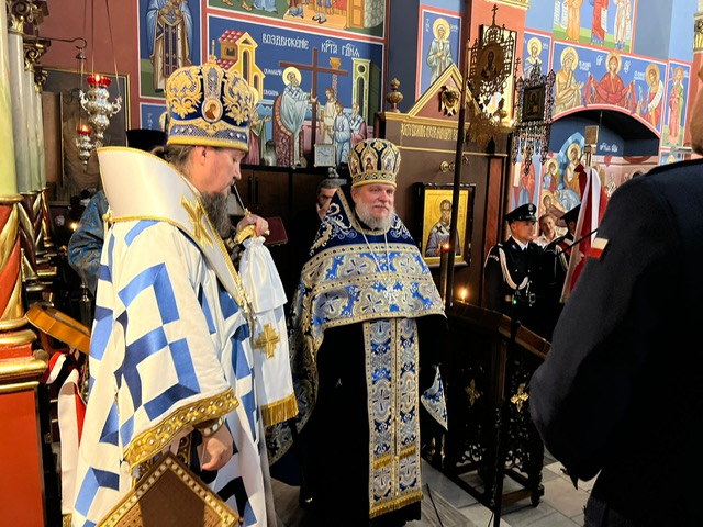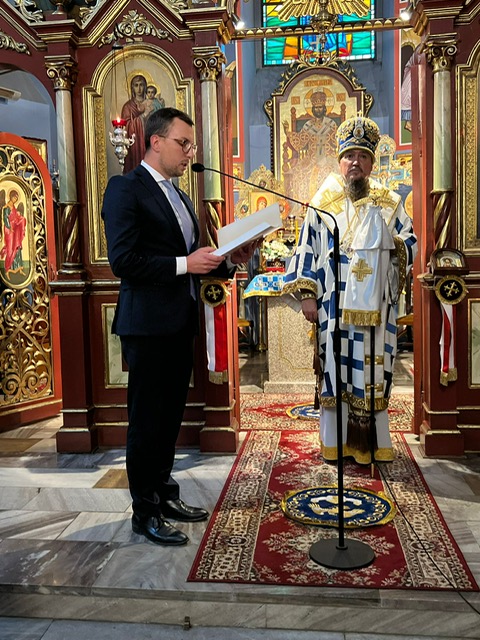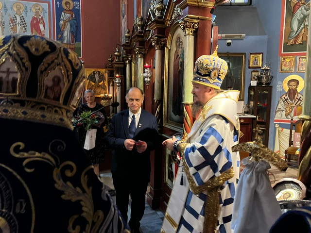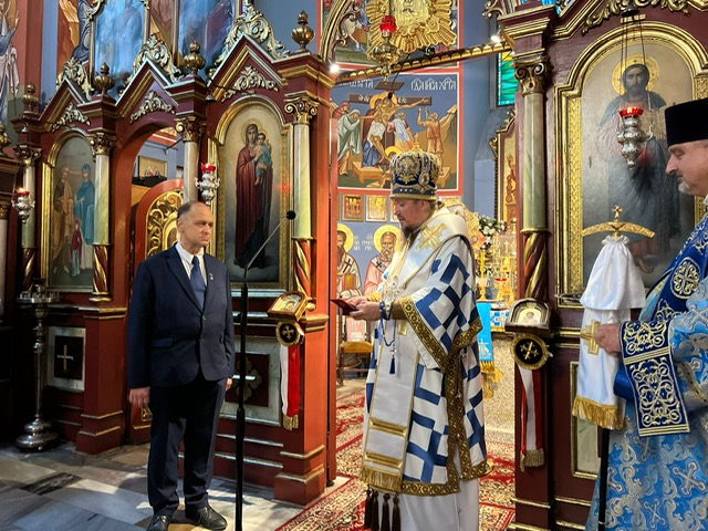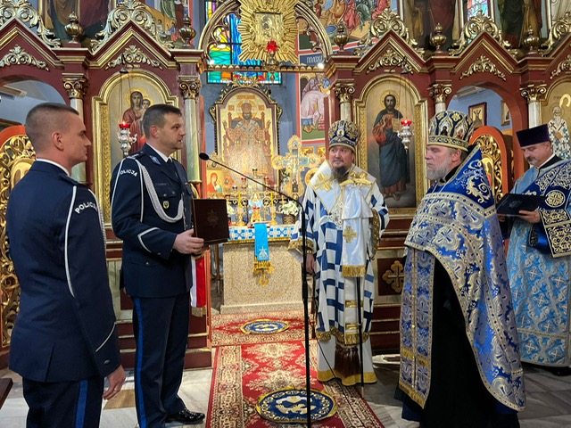 z okazji 5 letniej posługi duszpasterskiej jako kapelan KWP. Arcybiskup Jerzy uhonorował odznaką Prawosławnego Ordyanriatu WP, Pana Piotra Kacprzyńskiego, za jego wkład i aktywność na polu propagowania historycznej pamięci i opieki miejsc memorialnych, w ramach działań Stowarzyszenia Rodzina Policyjna 1939.