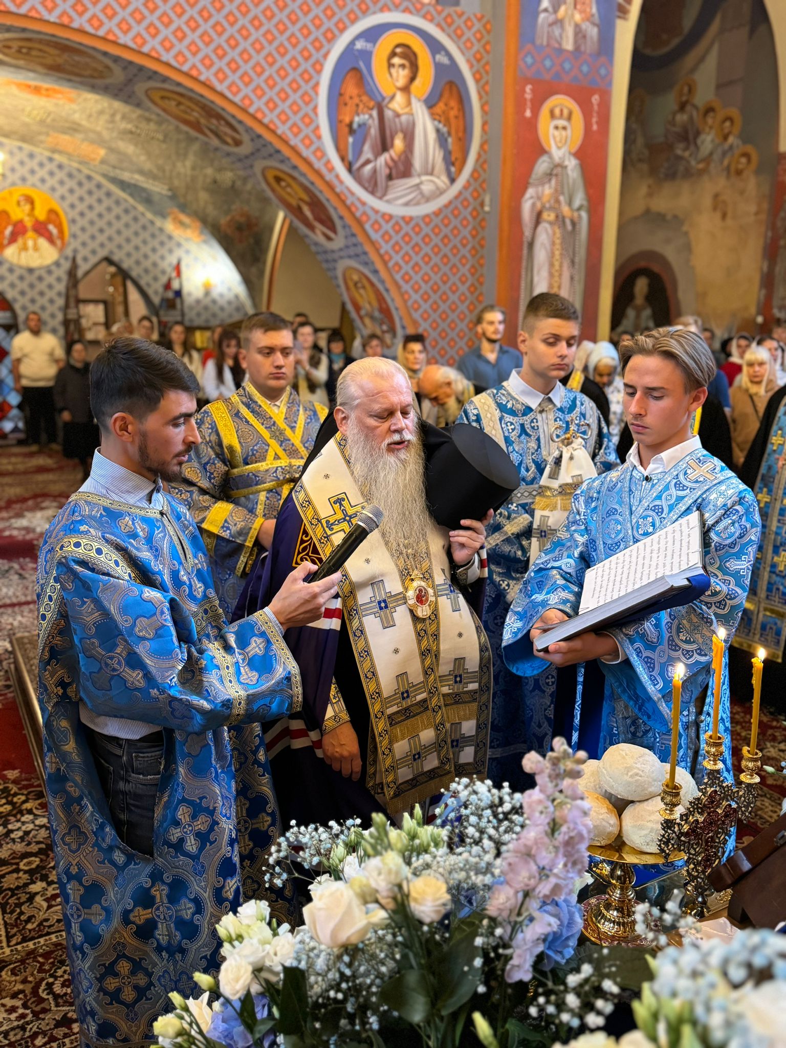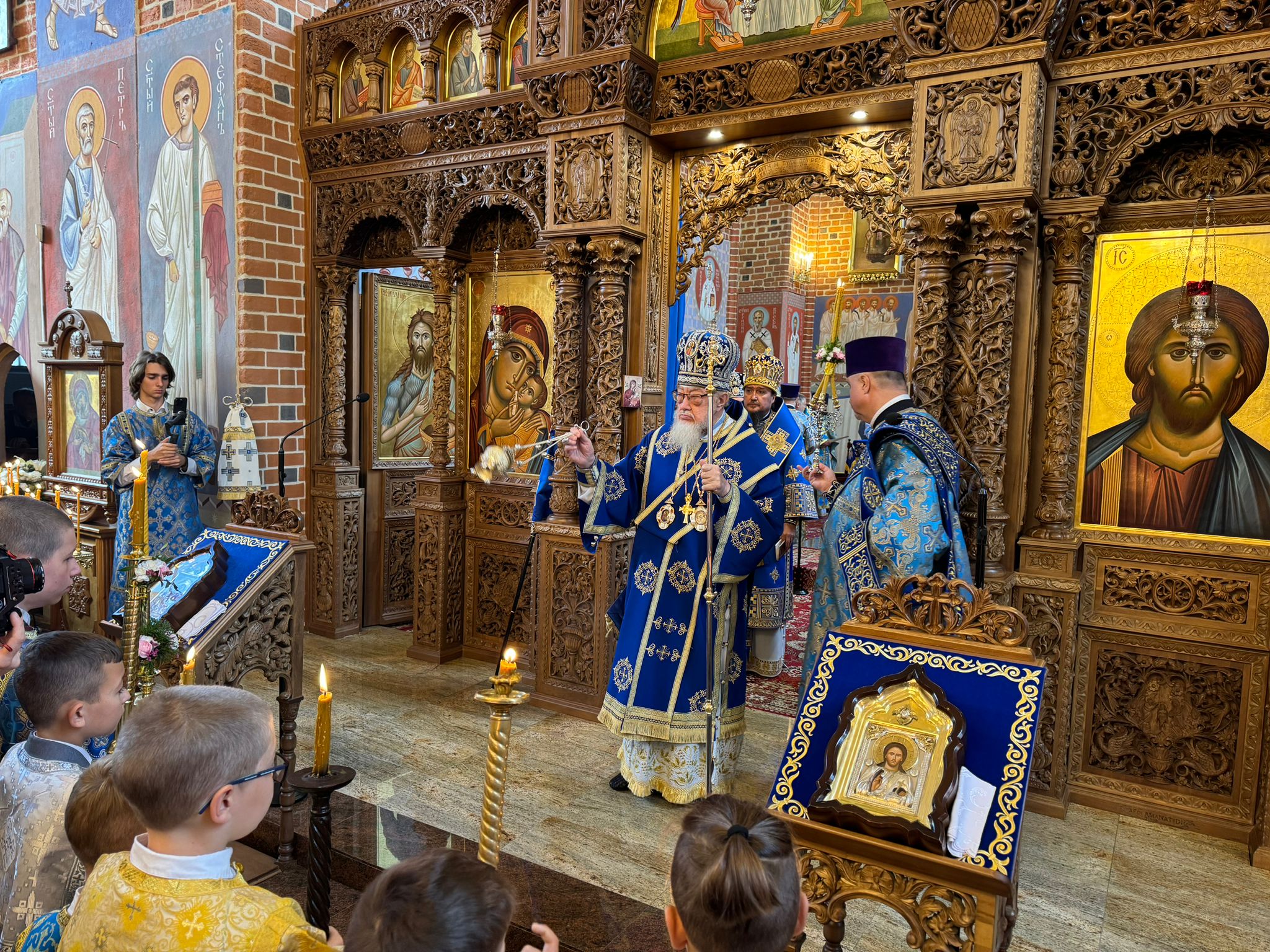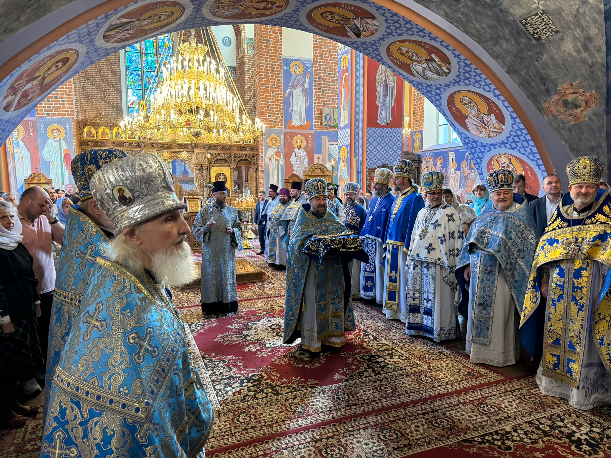 Uroczystości świąteczne rozpoczęły się wczesnym rankiem. Przed rozpoczęciem Boskiej Liturgii Arcypasterzy w drzwiach świątyni powitały dzieci i młodzież z Bractwa Młodzieży Prawosławnej, prosząc władyków o błogosławieństwo i życząc nieustającej opieki Matki Bożej dla wszystkich wiernych. Następnie chlebem i solą hierarchów powitał pan Aleksander Demczuk, a w świątyni proboszcz katedry ks. mitrat Jerzy Szczur z licznie zgromadzonym duchowieństwem.