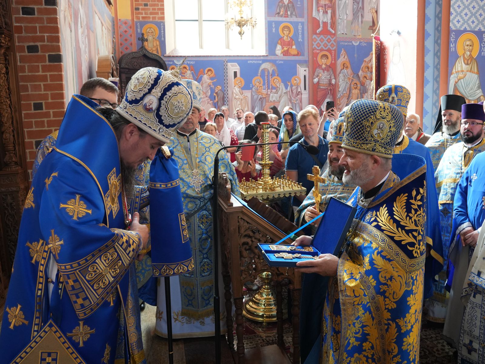 Metropolita wręczył abp. Jerzemu złoty Order św. Marii Magdaleny jako zwierzchnikowi lokalnej Cerkwi – Diecezji Wrocławsko-Szczecińskiej oraz mitrę. Władyka Jerzy natomiast wszystkim biskupom wręczył pamiątkowe enkolpiony – panagije z okazji swojego jubileuszu 50-lecia urodzin. Duchowieństwo obecne na uroczystościach otrzymało pamiątkowe krzyże kapłańskie z wizerunkiem wrocławskiej ikony Ukrzyżowania Chrystusa. Dostojni goście, którzy zaszczycili uroczystość swoją obecnością zostali uhonorowani medalami 100-lecia autokefalii. Jako ostatni duchowni diecezji pozdrowili swojego arcypasterza Władykę Jerzego wręczając mu komplet enkolpionów biskupich.
