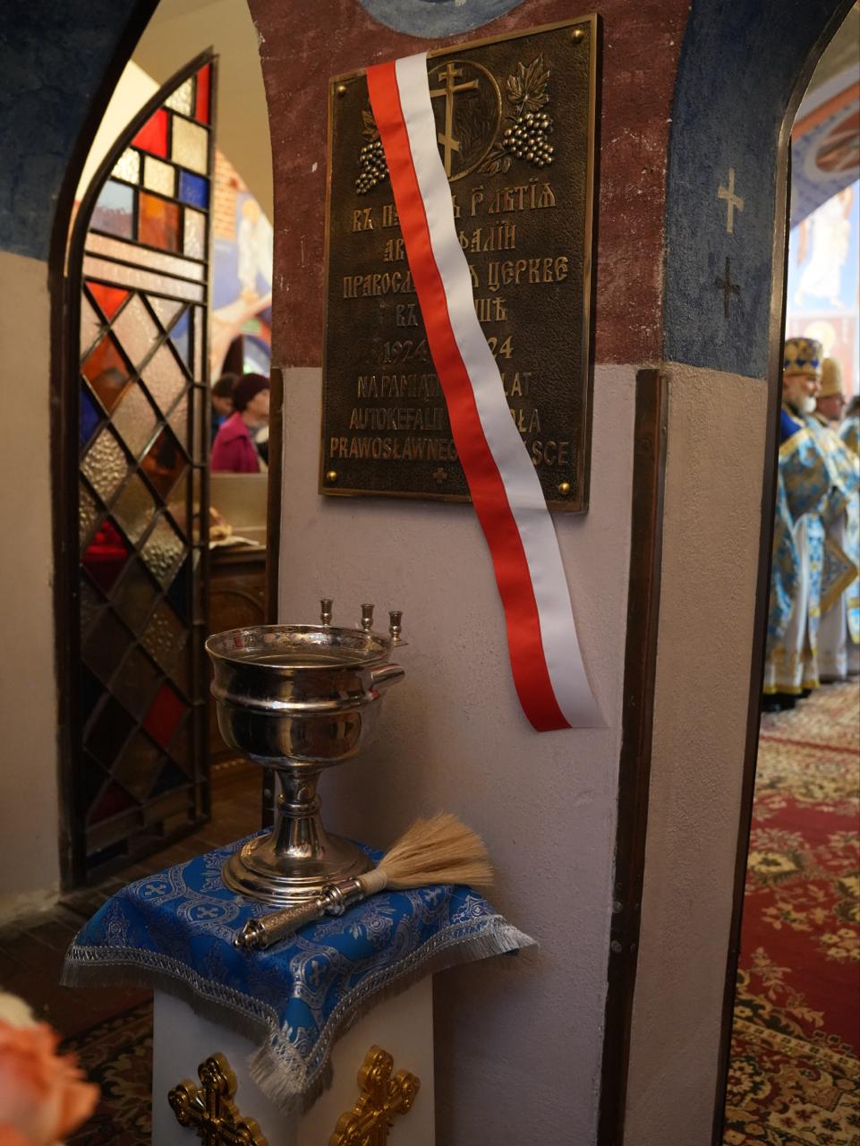 Bezpośrednio przed rozpoczęciem Liturgii miało miejsce wyjątkowo uroczyste wydarzenie. W przedsionku świątyni Jego Eminencja metr. Sawa dokonał odsłonięcia i oświęcenia tablicy upamiętniającej jubileusz 100-lecia autokefalii.