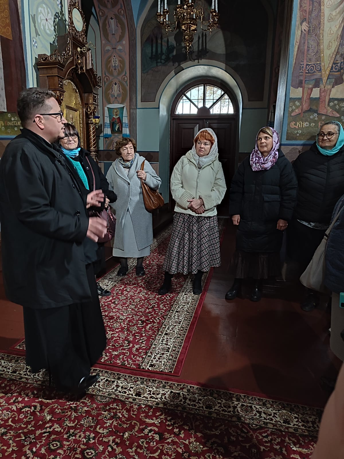 14 października w poniedziałek, w Święto Opieki Matki Bożej – dzień patronalnego święta Monasteru w Turkowicach, pielgrzymi uczestniczyli w poświęceniu wody, później w Św. Liturgii, którą sprawował Jego Ekscelencja Paisjusz w asyście duchownych. Po poczęstunku pielgrzymi pojechali do Hrubieszowa zwiedzić cerkiew pw. Zaśnięcia Matki Bożej o unikalnej bogatej architekturze i wystroju, która została zbudowana w XIX wieku z 13 kopułami. O burzliwychh losach cerkwi, parafiach, parafianach w Hrubieszowie szczegółowo opowiedział ks. Paweł Nikiel.