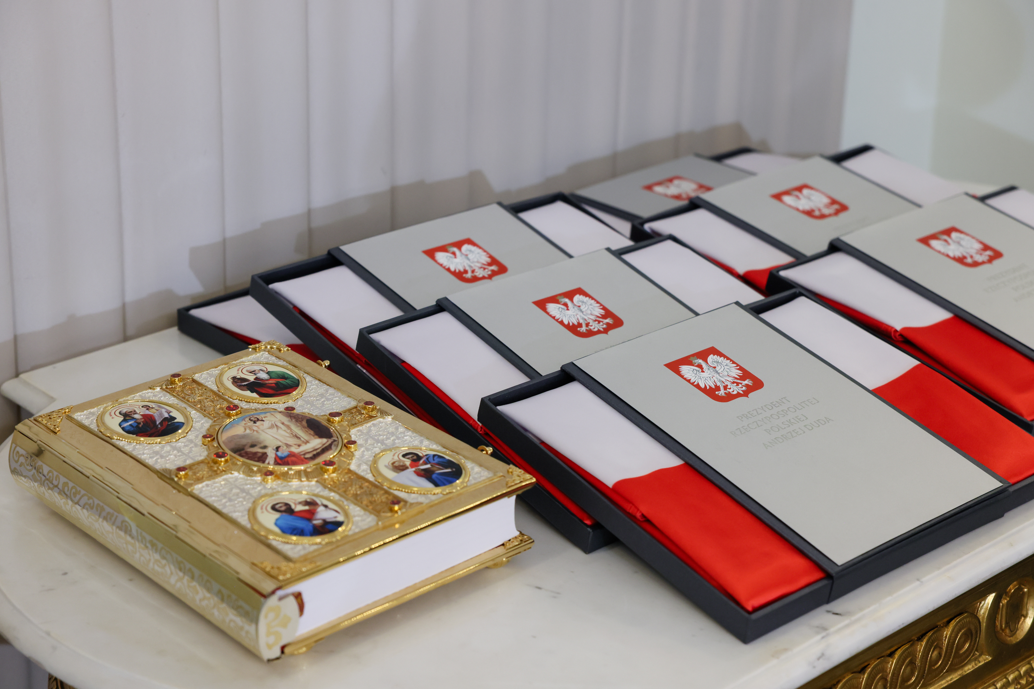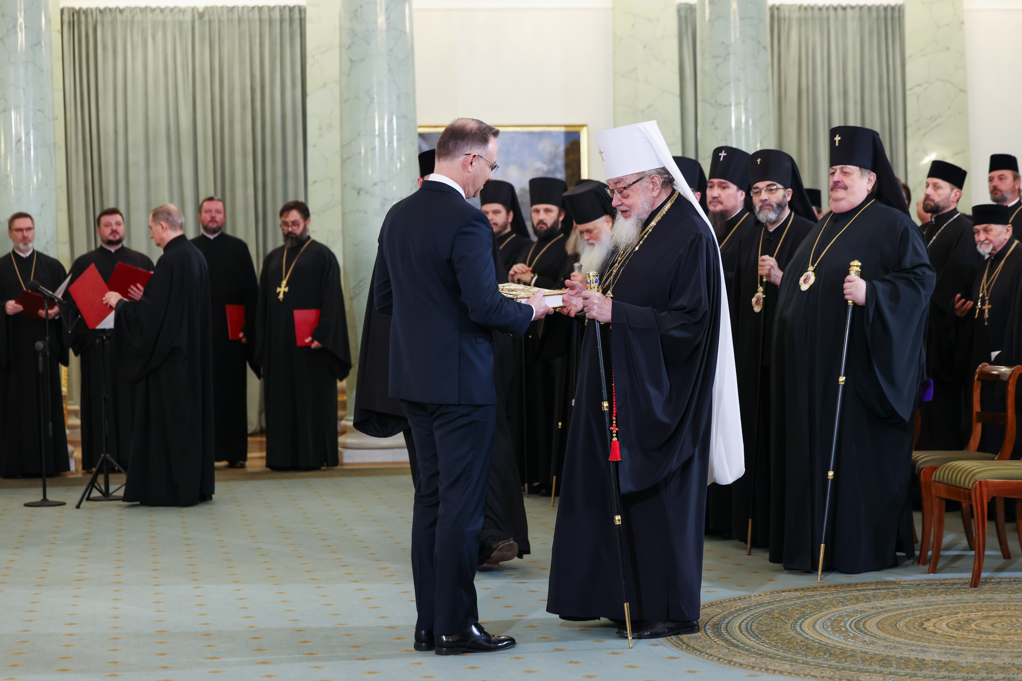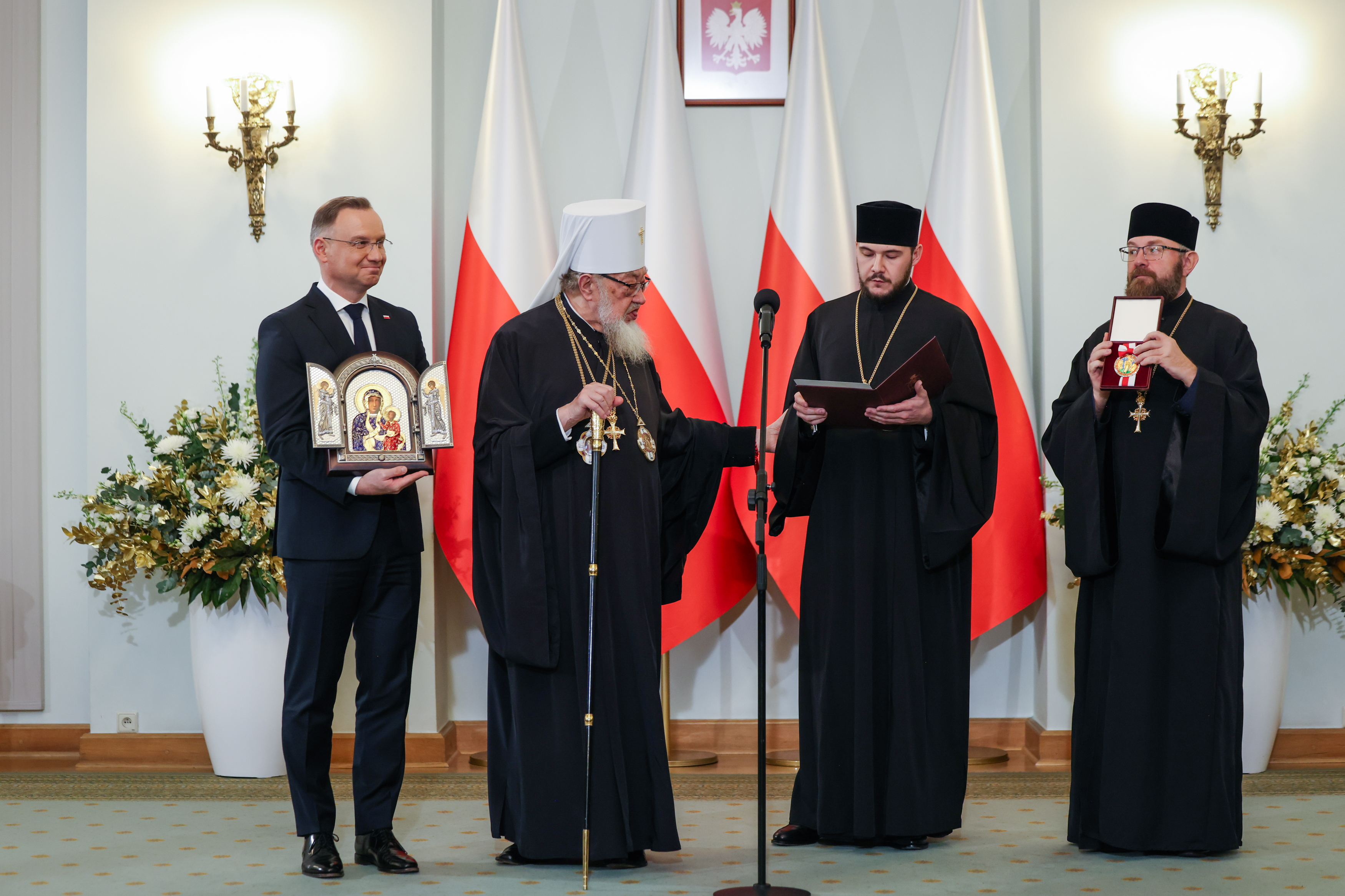 Pan Prezydent Andrzej Duda przekazał dary dla społeczności prawosławnej w postaci Świętej Ewangelii oraz flag państwowych RP z okolicznościowym przesłaniem, które złożył na ręce wszystkich ordynariuszy diecezjalnych PAKP.