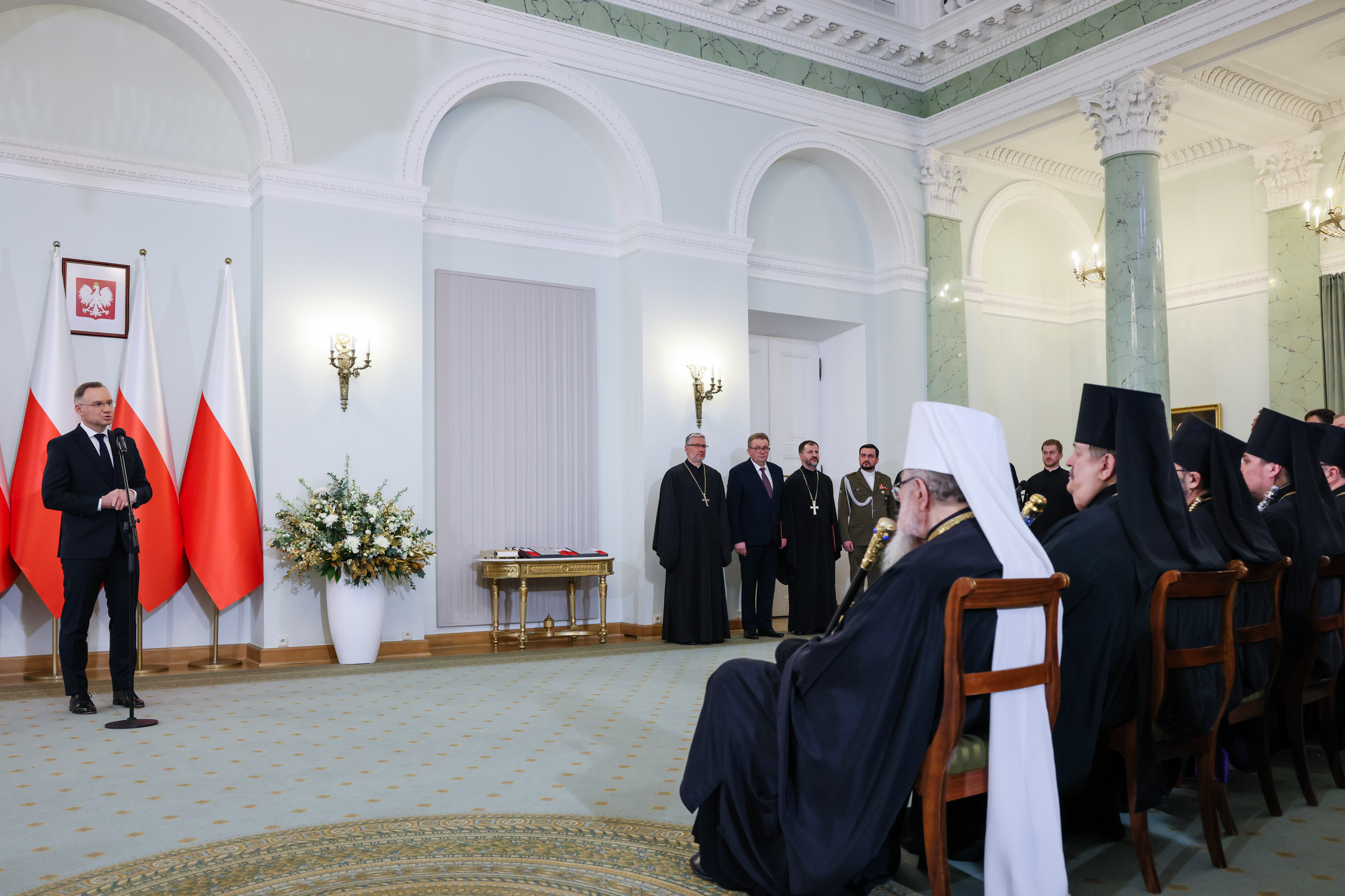 W swoim wystąpieniu Prezydent przypomniał, że sto lat temu kwestia autokefalii Polskiego Autokefalicznego Kościoła Prawosławnego nie była sprawą nową, bo narodziła się jako idea po spotkaniu duchownych w Pińsku w 1791 roku. – Wtedy powstał pierwszy projekt autokefalii, noszono się z zamiarem jej uzyskania, ale wojna, która wkrótce się rozpoczęła, zniweczyła te zamiary. Po odzyskaniu przez Polskę niepodległości w 1918 roku te starania zostały ponowione i zakończyły się uzyskaniem od patriarchatu konstantynopolskiego autokefalii dla Polskiego Autokefalicznego Kościoła Prawosławnego 13 listopada 1924 roku – wskazał. Dziękuję za to, co Polski Autokefaliczny Kościół Prawosławny wniósł do Rzeczypospolitej, do historii Rzeczypospolitej, również w znaczeniu wychowawczym, również w znaczeniu obrońców Rzeczypospolitej, których groby znaczą tak wiele miejsc w Polsce i na świecie. Dziękuję za budowanie postaw, współbudowanie Rzeczypospolitej i proszę o jeszcze – powiedział Prezydent.