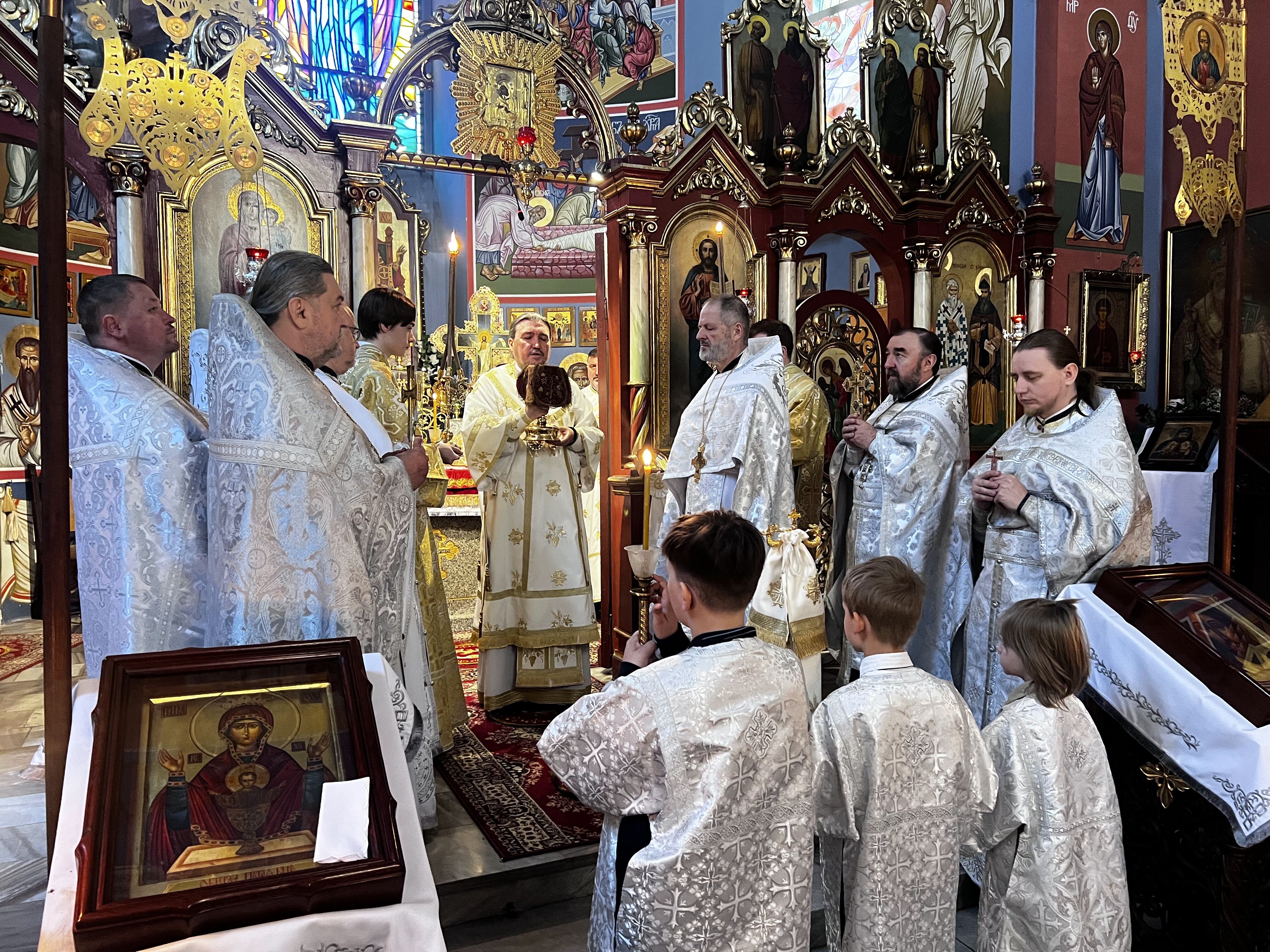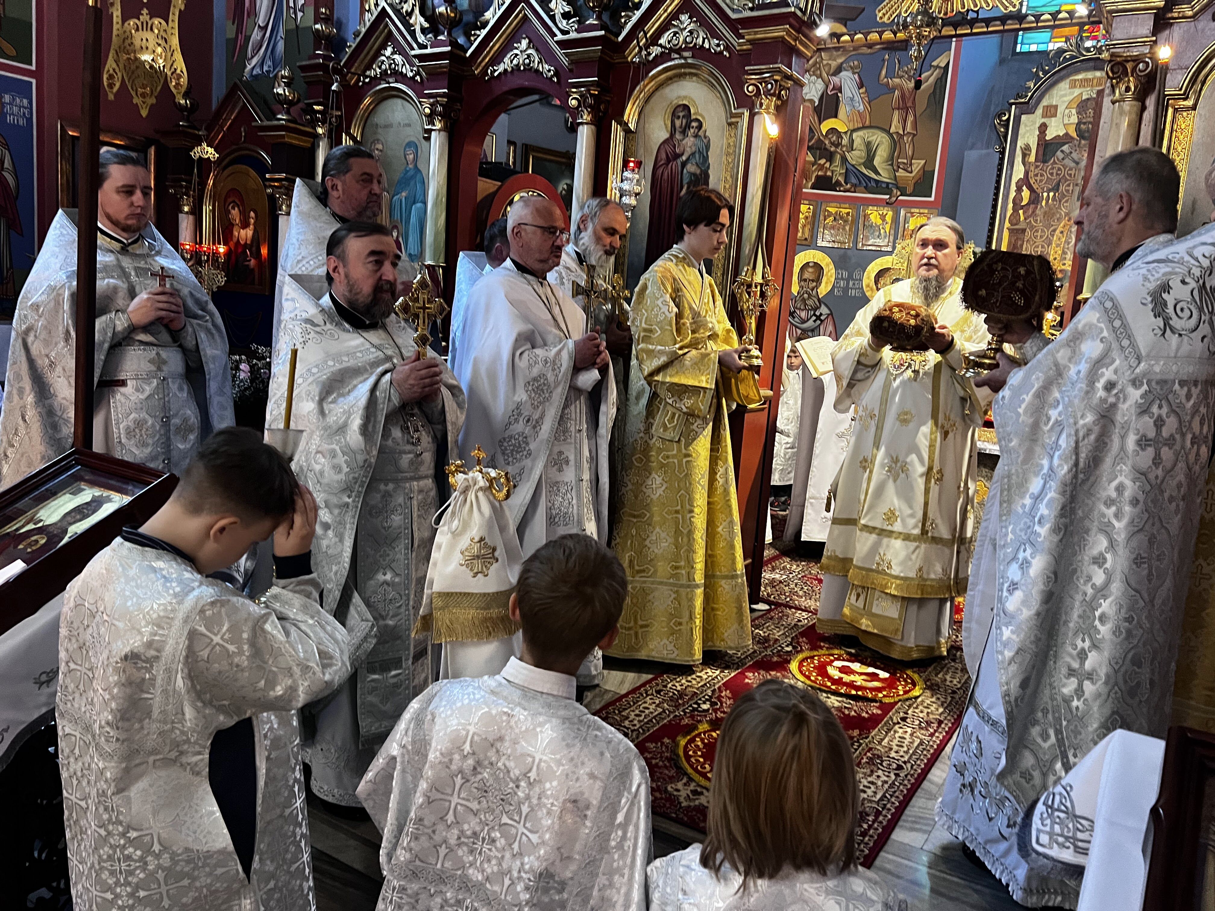 Świętej Liturgii przewodniczył Jego Ekscelencja Arcybiskup Jerzy, w asyście zaproszonych duchownych z naszej diecezji oraz miejscowego kleru. To wielkie duchowe przeżycie, które na długo pozostanie w naszych sercach.