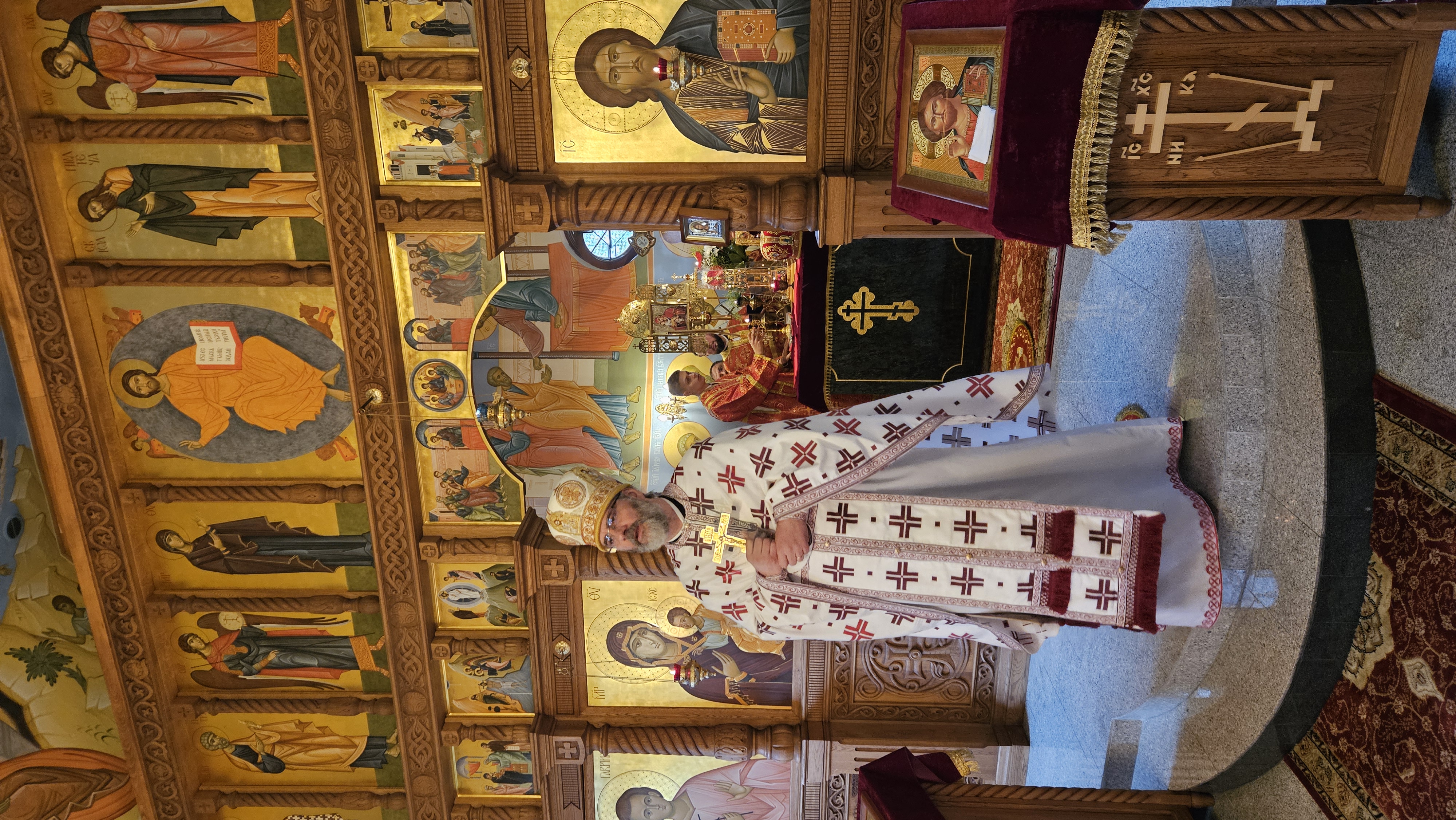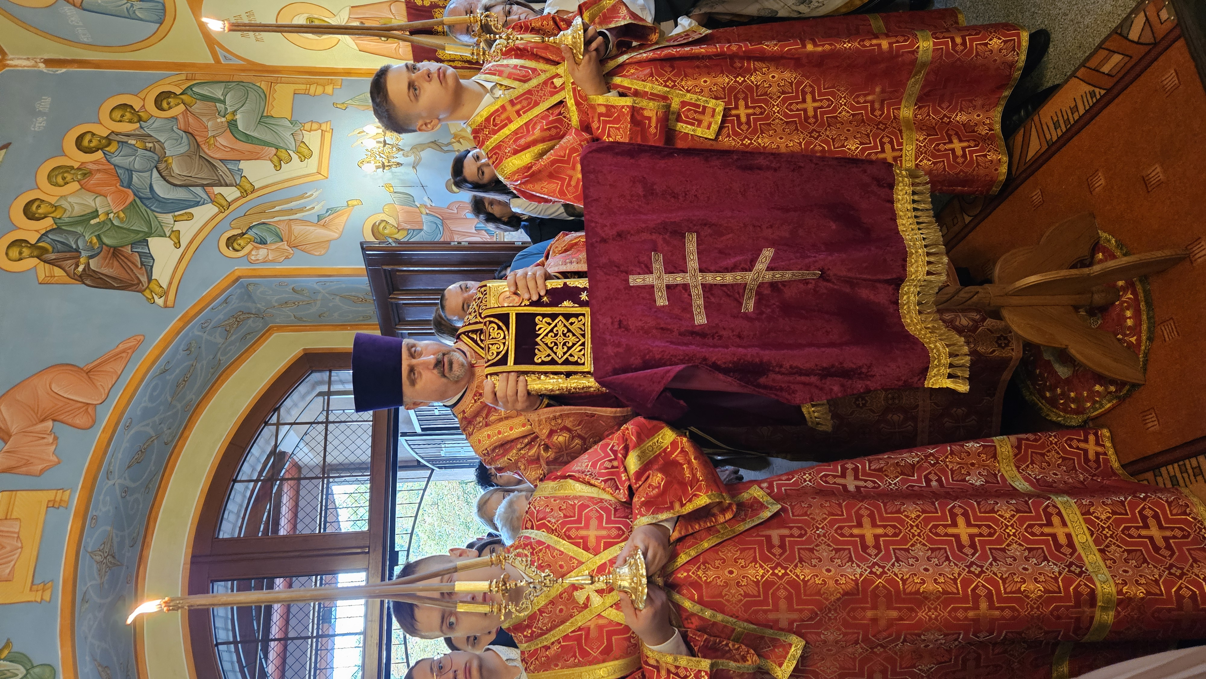 W dzień świąteczny 06. września 2025 obchody związane z głogowskim świętem parafialnym rozpoczęły się o godz. 09.3o przywitaniem Jego Ekscelencji JERZEGO, Prawosławnego Arcybiskupa Wrocławskiego i Szczecińskiego. W pierwszej kolejności Władykę przed wejściem do świątyni przywitały dzieci i młodzież z głogowskiej parafii, którzy wręczając bukiet kwiatów prosili Arcybiskupa o błogosławieństwo. Następnie, u progu cerkwi, chlebem i solą powitali Władykę przedstawiciele rady parafialnej, także prosząc Arcypasterza o modlitwę za wiernych. Kolejno, wewnątrz świątyni, Ekscelencję przywitał Ks. Proboszcz, który prosił o przewodniczenie dzisiejszym uroczystościom i usilną modlitwę za wszystkich. O godz. 10.00 rozpoczęła się Św. Liturgia sprawowana przez Ordynariusza Diecezji Arcybiskupa Jerzego, w której udział wzięli bardzo licznie przybyli na głogowskie święto duchowni naszej diecezji, także spoza okolicznych parafii, pokonując nawet kilkaset kilometrów, tj. ks. mitrat Lubomir Worhacz - Parafia Prawosławna w Legnicy, Dziekan Dekanatu Lubińskiego, ks. mitrat Igor Popowicz - Parafia Prawosławna w Przemkowie, Dziekan Dekanatu Zielonogórskiego, ks. mitrat Eugeniusz Bójko - Parafia Prawosławna Śww. Cyryla i Metodego we Wrocławiu, ks. mitrat Piotr Sokołowski - Katedralna Parafia Prawosławna we Wrocławiu, ks. mitrat Marek Bonifatiuk - Parafia Prawosławna w Zgorzelcu, ks. prot. Sławomir Sorokanycz - Parafia Prawosławna w Studzionkach, ks. prot. Andrzej Dudra - Parafia Prawosławna w Zielonej Górze, ks. prot. Bogdan Repeła - Parafia Prawosławna w Lubinie, ks. prot. Michał Koval - Parafia Prawosławna w Słubicach i Torzymiu, ks. ihumen Jerzy Omelianiuk - Parafia Prawosławna w Buczynie, ks. - rezydent Parafia Prawosławna w Ługach i Brzozie, ks. Paweł Gocko - Parafia Prawosławna w Malczycach, ks. protod. Mieczysław Oleśniewicz - Katedralna Parafia Prawosławna we Wrocławiu, Kanclerz Arcybiskupa, ks. protod. Dymitr - Parafia Prawosławna w Zgorzelcu. Słowo na Św. Liturgii do zgromadzonych wygłosił ks. mitrat Lubomir Worhacz. Przybliżył on zebranym wędrówkę życiową Świętego Maksyma i Jego zamierzone i całkiem świadome wybory podążania za Chrystusem ciężką i wąską ścieżką. Nawiązał także do faktu, iż tutejsza parafialna cerkiew prawosławna jest jedyną w Polsce, a najpewniej i jedyną na świecie świątynią, konsekrowaną w pamięć Św. Maksyma. I w ten szczególny dzień wszyscy zebrani łączymy się w jedności modlitewnej z Gorlicami, miejscem śmierci głogowskiego Patrona, ale i miejscem, w którym także w dniu dzisiejszym, w cerkwi katedralnej Św. Trójcy w Gorlicach, wybudowanej, jako symbol przywiązania prawosławnych Łemków do wiary swoich przodków i jednocześnie pomnik męczeńskiej śmierci Św. Maksyma, odbywają się uroczystości ku Jego czci.
