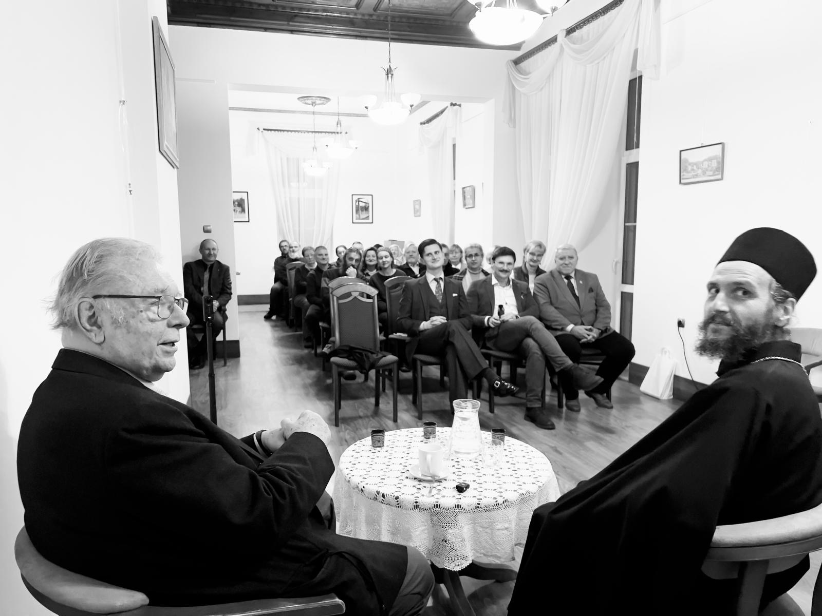 17 października Parafia św. Archanioła Michała, gościła wyjątkowego Gościa –Pana Krzysztofa Zanussiego. Ten wybitny, światowej sławy reżyser, filozof, poliglota, gościł w Domu św. Elżbiety po raz pierwszy osiem lat temu, podczas Festiwalu im. K. Kieslowskiego. Tegoroczna wizyta była jednak wyjątkowa, z racji na jej charakter- czyli spotkanie w dialogu, którego moderatorem był o. hieromnich Jeremiasz, oraz obecni uczestnicy w liczbie ok 40 osób. Pan Krzysztof Zanussi odwiedził cerkiew św. Archanioła Michała żywo interesując się jej historią, pamiętając ją jako pustostan z lat 70tych.