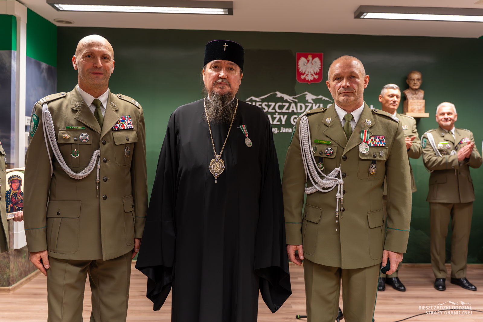 Dodatkowym akcentem odprawy było uhonorowanie abp. Jerzego, Prawosławnego Ordynariusza Wojskowego oraz komendanta BiOSG gen. bryg. SG Tomasza Zybińskiego okolicznościowym medalem przez Zarząd Oddziałowy Niezależnego Samorządowego Związku Zawodowego Funkcjonariuszy Straży Granicznej przy Bieszczadzkim Oddziale Straży Granicznej. Medale wręczył Przewodniczący Zarządy Oddziałowego mjr. SG Bartłomiej Galanty. Następnie głos zabrał abp Jerzy, Prawosławny Ordynariusz Wojskowy, który wyraził wdzięczność za tak uroczyste przyjęcie oraz słowa uznania i pamiątkowe odznaczenia. Straż Graniczna to formacja, która stoi na straży szczególnych wartości duchowych, takich jak pokój i bezpieczeństwo. Czerpanie siły do stawiania codziennego oporu wobec różnorodnych kryzysów granicznych i ludzkich prób wynika tylko i wyłącznie z miłości do drugiego człowieka. Przez tę miłość w sposób prawidłowy odczytujemy słowa znajdujące się na sztandarze: Bóg, Honor, Ojczyzna – zaznaczył Ekscelencja. Prawosławny Ordynariusz Wojskowy złożył również życzenia i przekazał błogosławieństwo wszystkim funkcjonariuszom i pracownikom Bieszczadzkiego Oddziału Straży Granicznej.