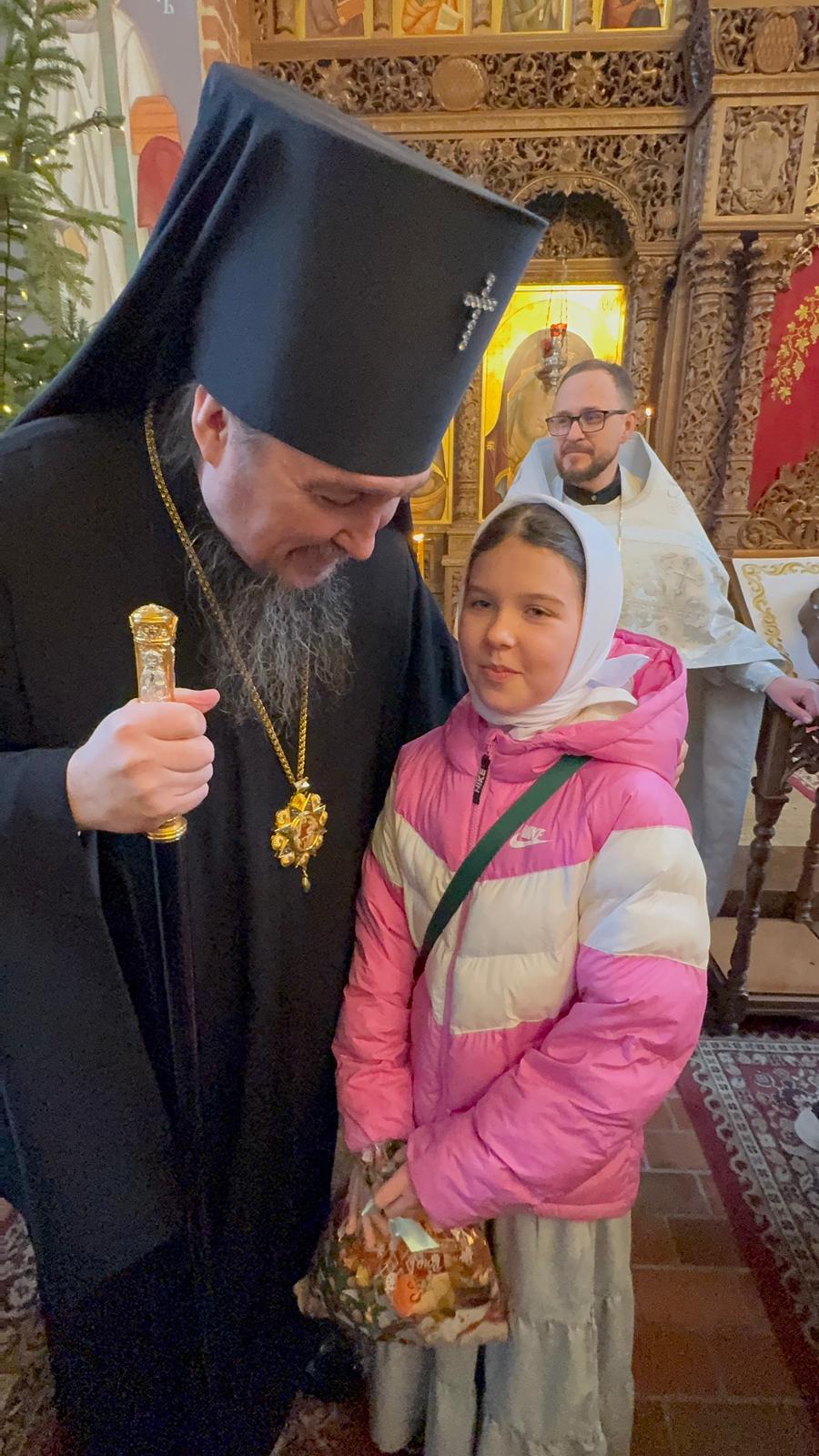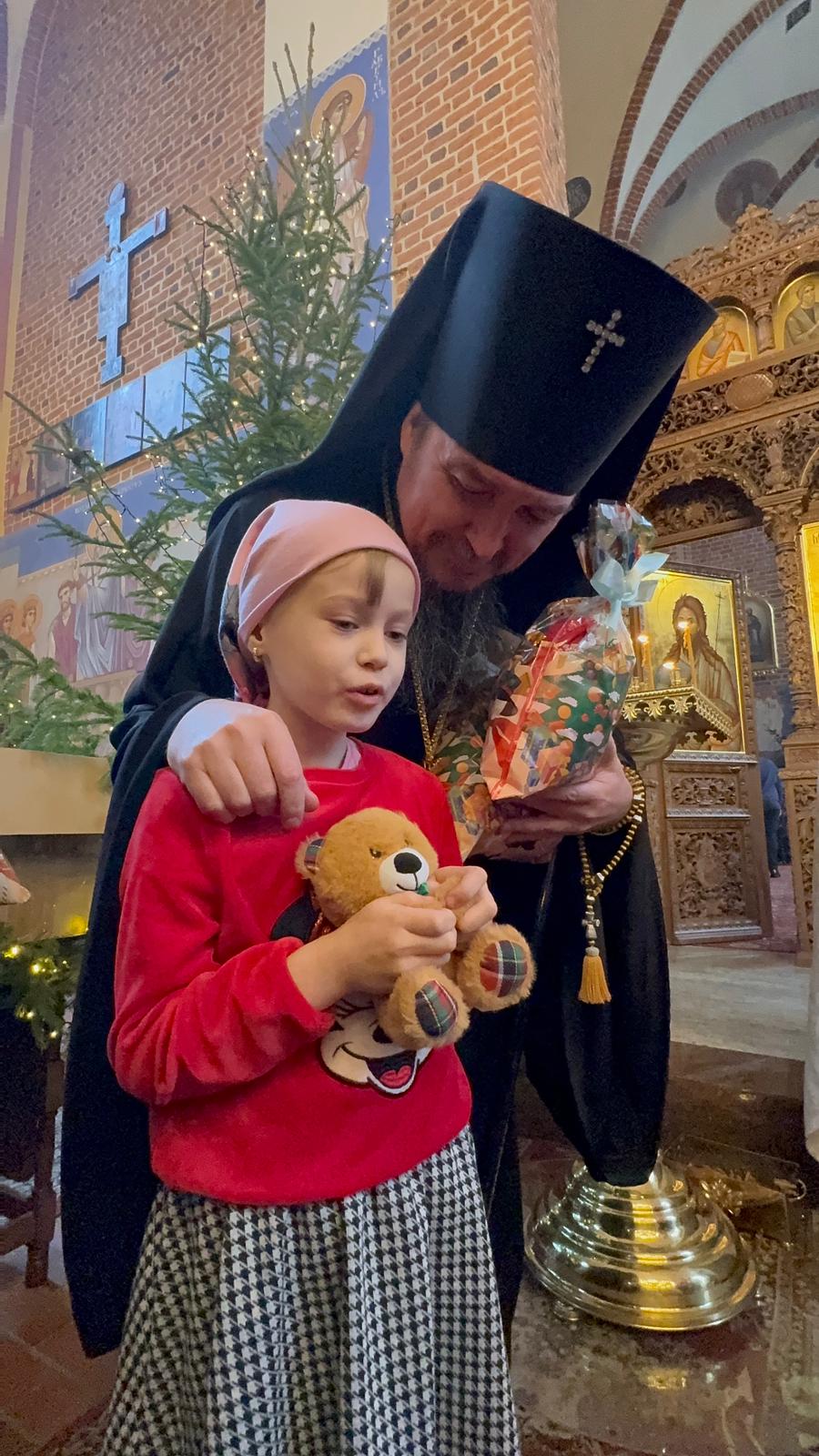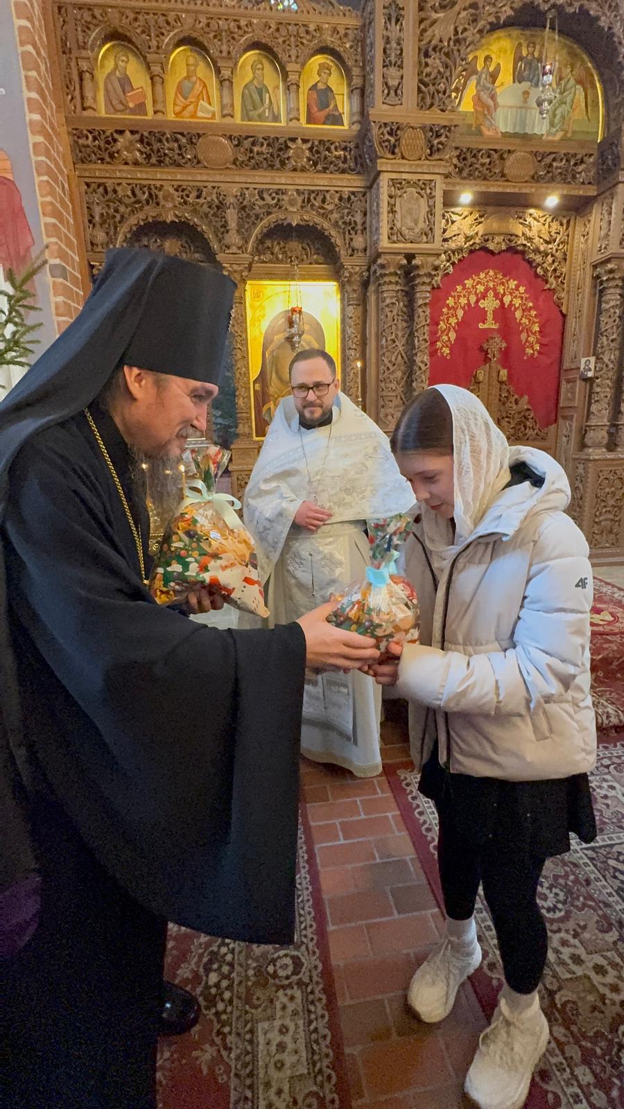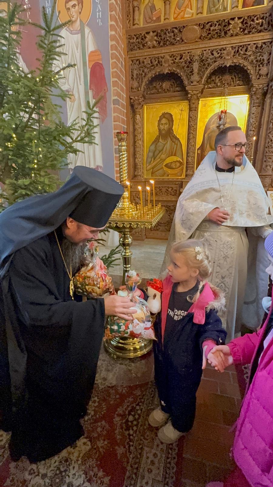 Po zakończeniu Boskiej Liturgii Władyka Jerzy pozdrowił wszystkich obchodzących dziś imieniny - Dawidów, Józefów i Jakubów, w tym w sposób szczególny dyrygenta katedralnego chóru - lektora Dawida Dubeca. Następnie abp Jerzy rozdawał licznie zgromadzonym w świątyni dzieciom świąteczne prezenty. Ponad setka najmłodszych otrzymała od Władyki upominki przedłużając tym samym dziecięcą radość z okazji świąt Bożego Narodzenia.
