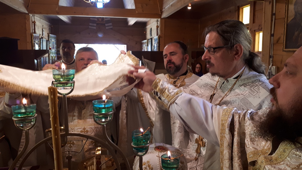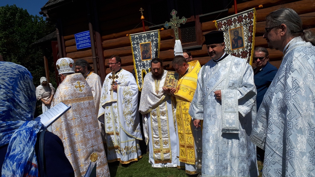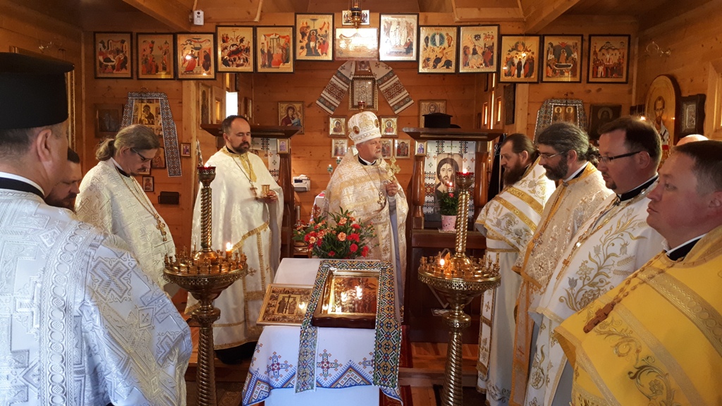 W poniedziałkowy poranek drewniana świątynia zaczęła się wypełniać przybyłym na to święto duchowieństwem i wiernymi. Boska Liturgia odsłużona była przez dziekana dekanatu lubińskiego ks. mitrata Sławomira Kondratiuka, ks. mitrata Oleksandra Zhurav-lova proboszcza parafii we Frydlandzie (Czechy), ks. prot. Michala Hryhy proboszcza w Jabloncu nad Nysą (Czechy), ks. prot. Bazylego Sawczuka proboszcza parafii w Jeleniej Górze, ks. prot. Lubomira Worhacza proboszcza parafii w Legnicy, ks. prot. Bogdana Re-pełę proboszcza parafii w Lubinie, ks. Mariusza Kiślaka proboszcza parafii w Wałbrzychu, ks. protodiakon Mieczysława Oleniewicza z Wrocławia i miejscowego proboszcza ks. prot. Marka Bonifatiuka.