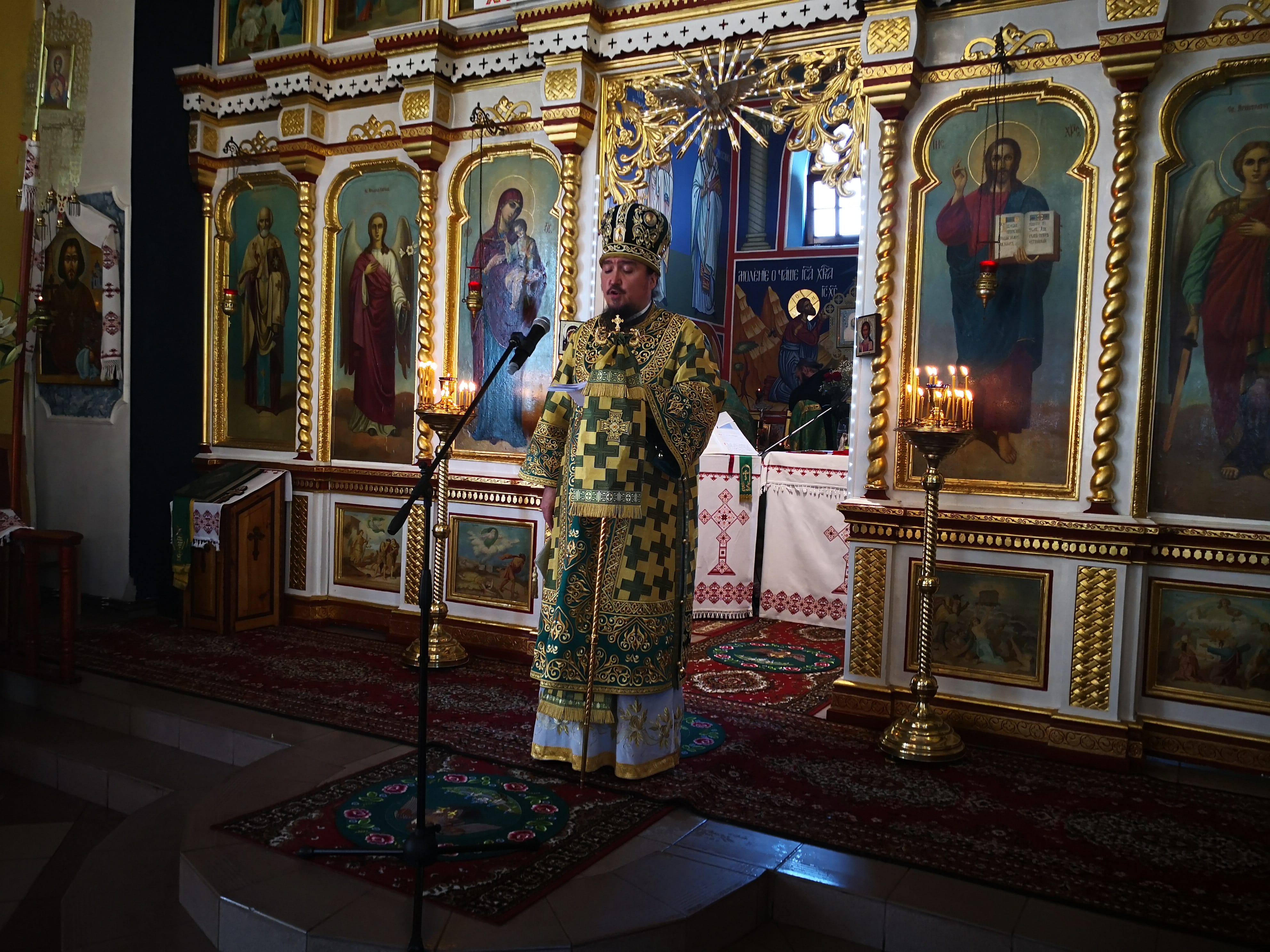 Przed Świętą Liturgią Władykę przywitały dzieci, starosta parafii Bazyli Dziadyk oraz ks. prot. Bogdan Repeła, którzy opowiedzieli o historii parafii oraz prosili ordynariusza swojej diecezji o modlitwę.