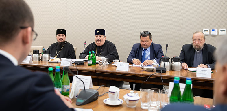 Członkowie zespołu omówili dziś także problematykę odbioru dni wolnych od pracy w dniach świąt religijnych według kalendarza juliańskiego i kwestie dotacji dla Polskiego Autokefalicznego Kościoła Prawosławnego w zakresie remontów zabytkowych obiektów sakralnych. Poruszono także temat prawosławnych katechez w szkołach.