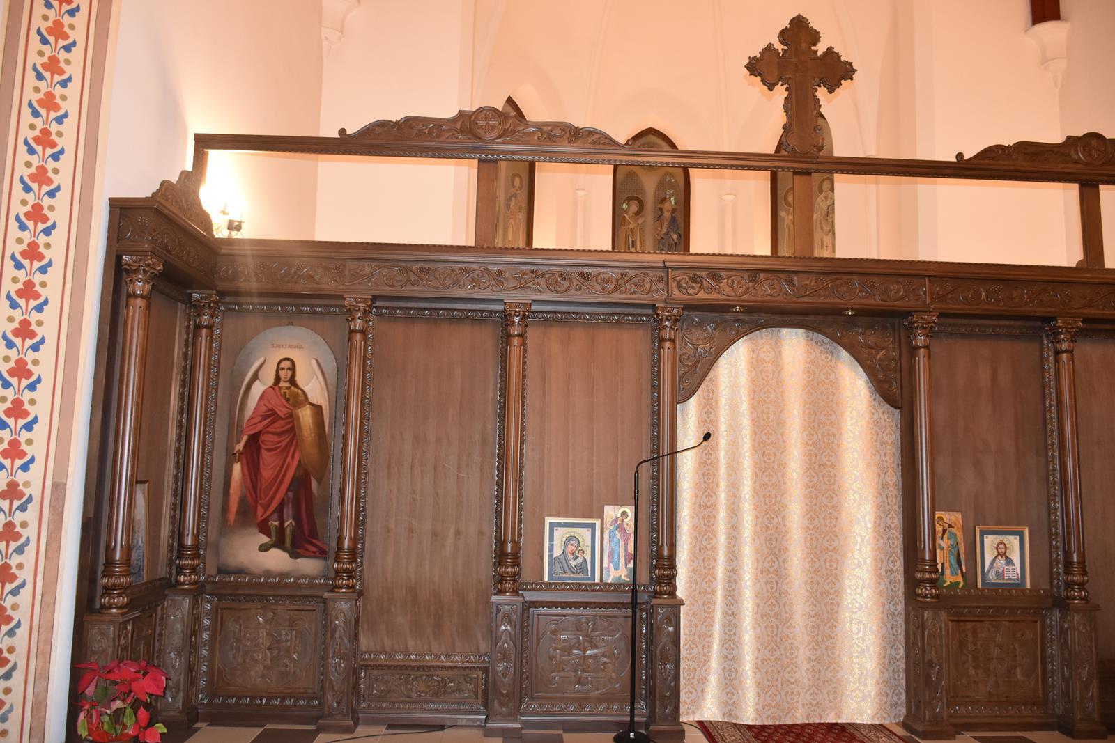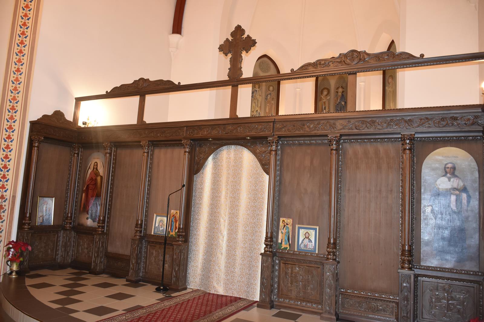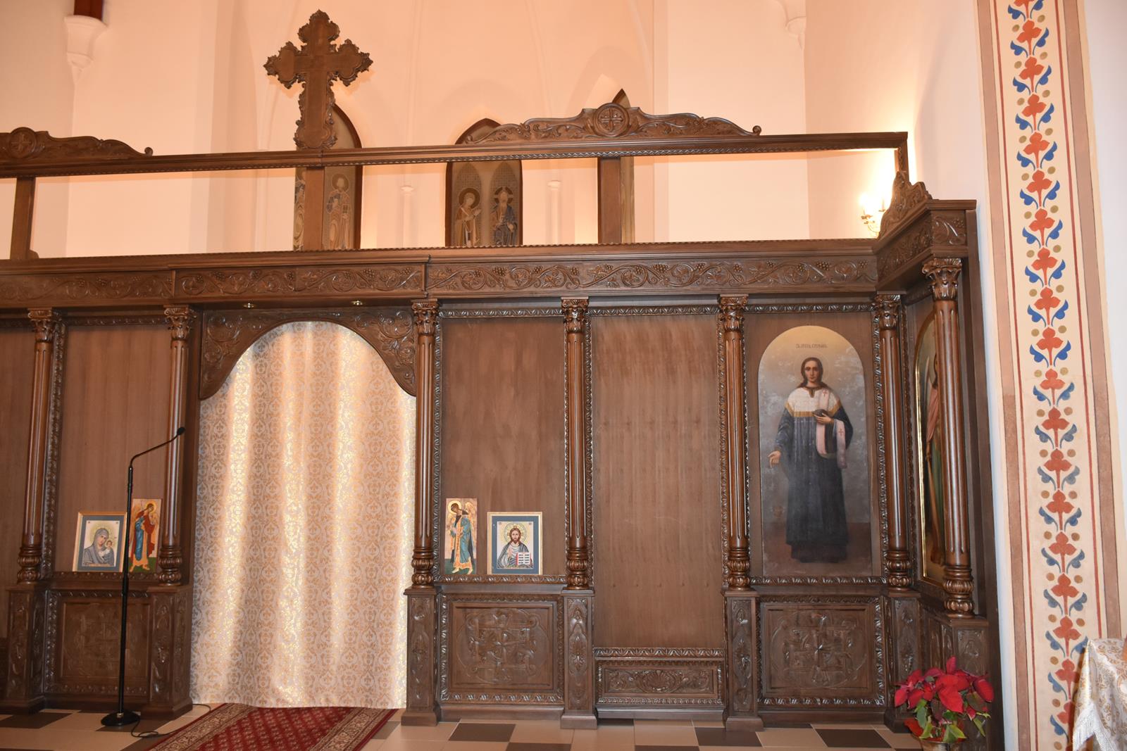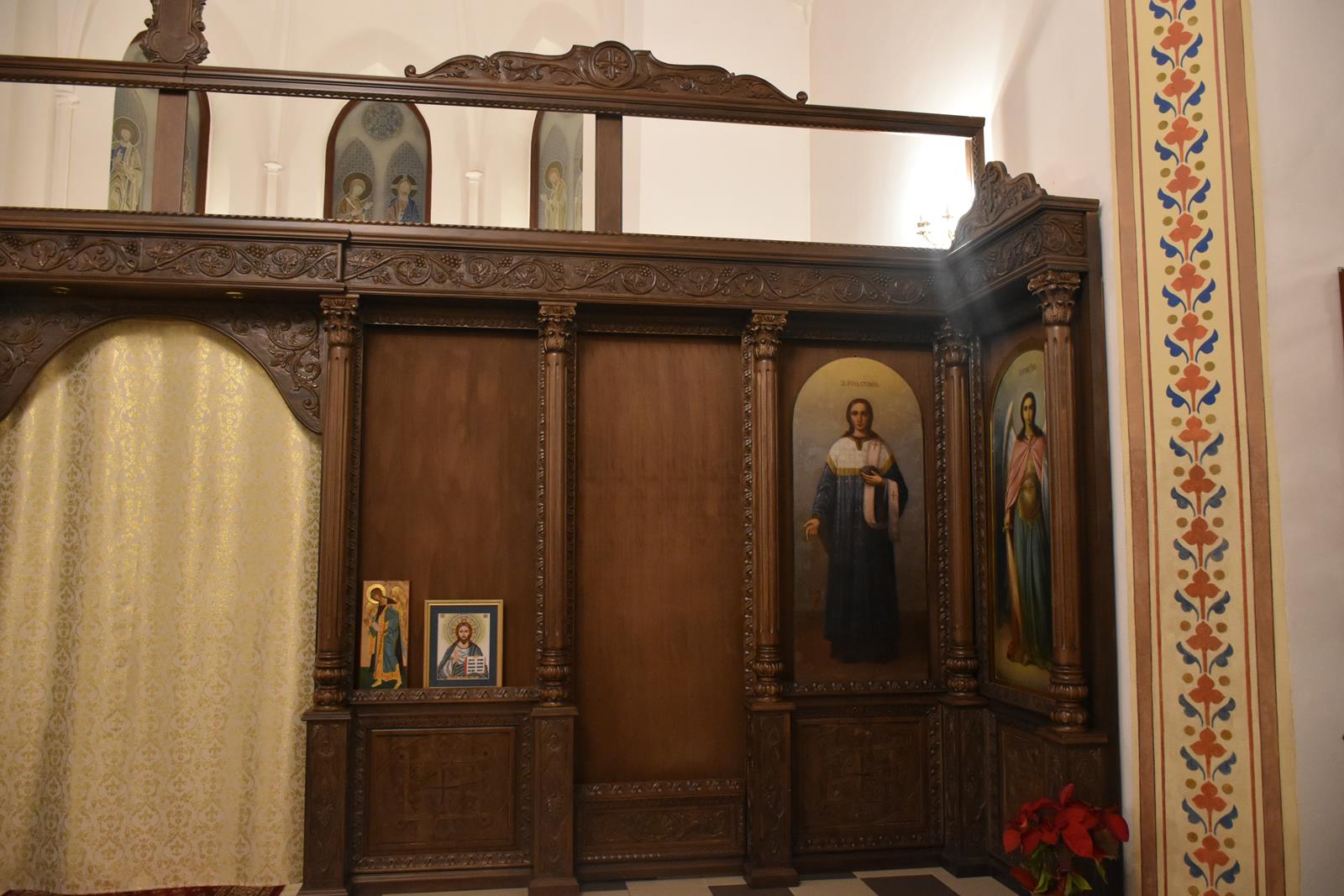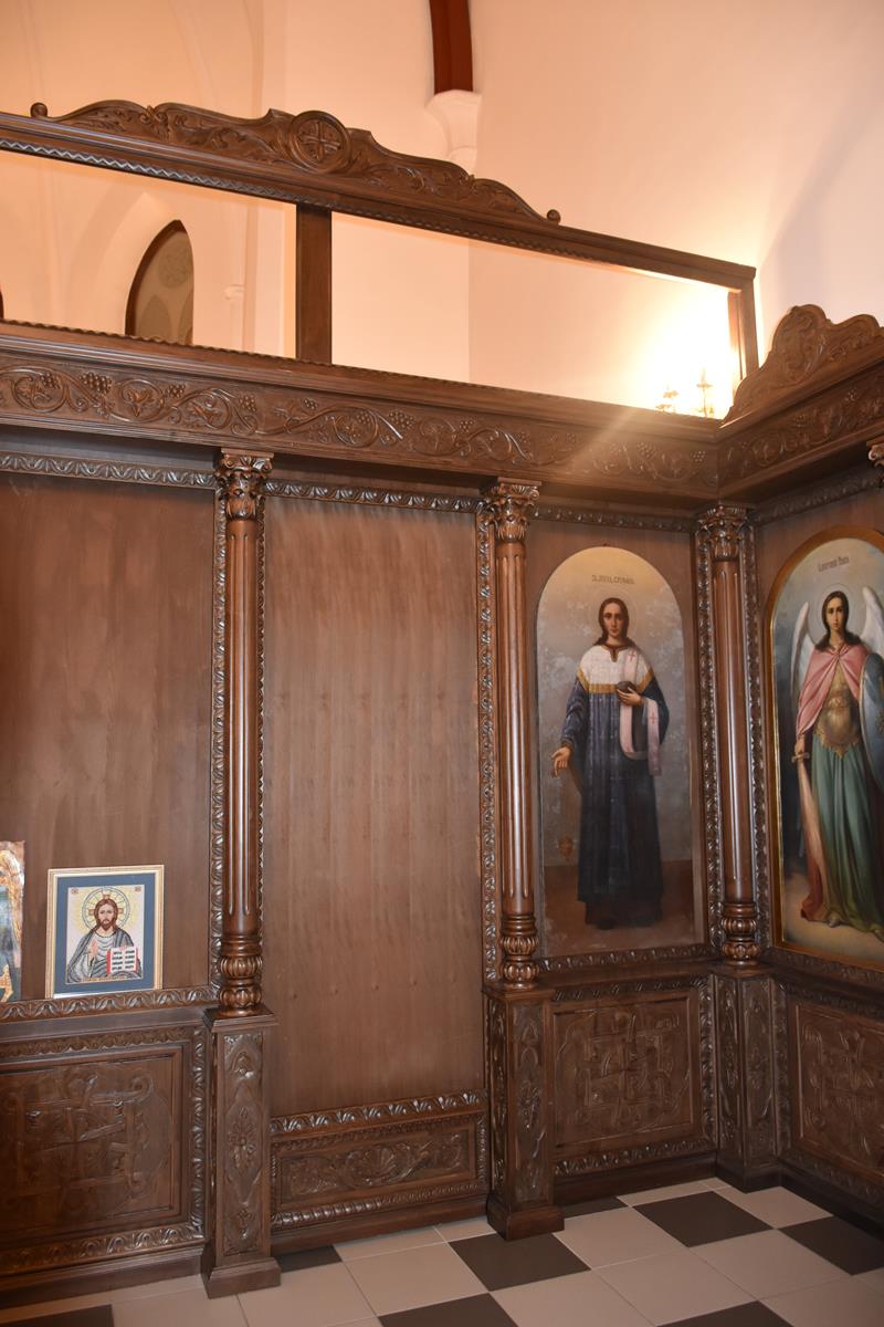 -6 Ikon głównych o wymiarach: 71 x 1,43 cm ( Ikona Jezusa Chrystusa, Bogurodzicy, Św. Mikołaja Cudotwórcy, Św. Ap. Piotra, Św. Ap. Pawła , Św. Wielkomęczennika i Cudotwórcy Pantelejmona,