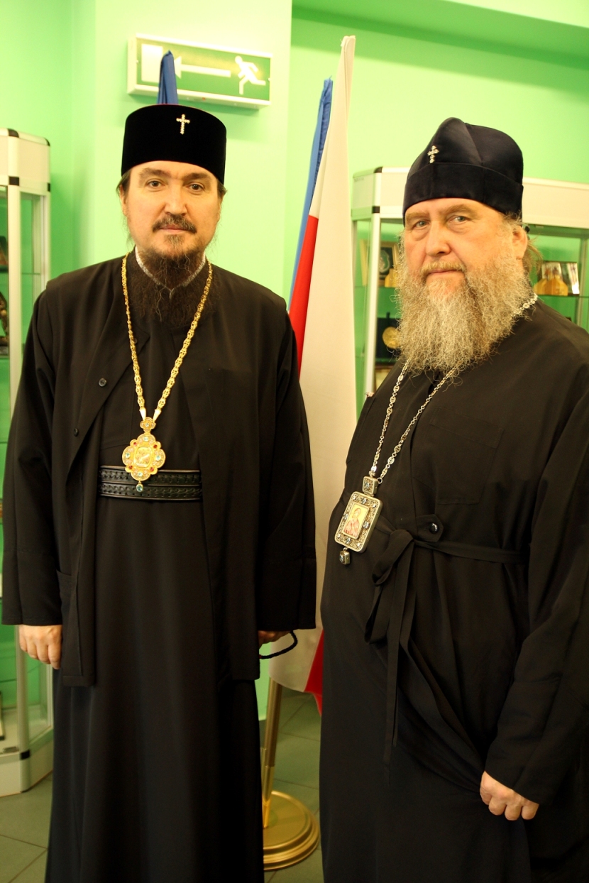 Władyka Jerzy bardzo ciepło przyjął zacnych gości, oprowadził po siedzibie ordynariatu, zapoznał z działalnością Prawosławnego Ordynariatu WP. Metropolita Aleksander dokonał również wpisu w ołtarzowym ewangeliarzu w kaplicy św. kapł. męcz. Bazylego (Martysza).