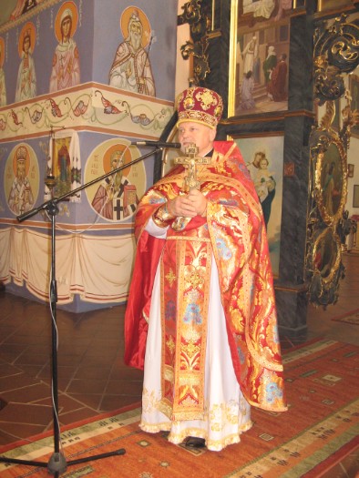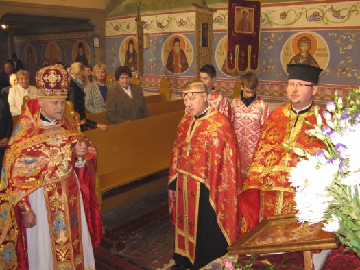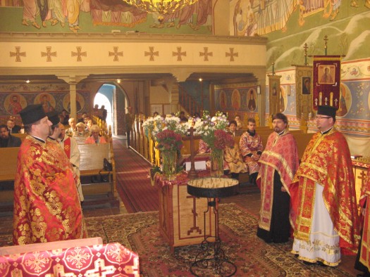 Świąteczne uroczystości rozpoczęły się małym poświęceniem wody, którego dokonał ks. Sławomir Kondratiuk. Święta Liturgia sprawowana była przez proboszcza wraz z przybyłym duchowieństwem z okolicznych parafii: ks. prot. Jerzym Maliszem z Zimnej Wody, ks. prot. Lubomirem Worhaczem z Legnicy, ks. prot. Sławomirem Sorokanyczem ze Studzionek, ks. prot. Markiem Bonifatiukiem ze Zgorzelca, ks. prot. Bogdanem Repeła z Lubina oraz ks. prot. Jerzym Omelianiukiem z Buczyny. Słowo na Liturgii do zgromadzonych wiernych skierował ks. Bogdan Repeła, który przybliżył wydarzenie odnalezienia Krzyża w Jerozolimie przez św. cesarzową Helenę w 326 roku. Zwrócił szczególną uwagę na to, jak wielkie znaczenie ma krzyż w życiu chrześcijanina - towarzyszy wierzącemu człowiekowi od jego narodzin aż do śmierci.