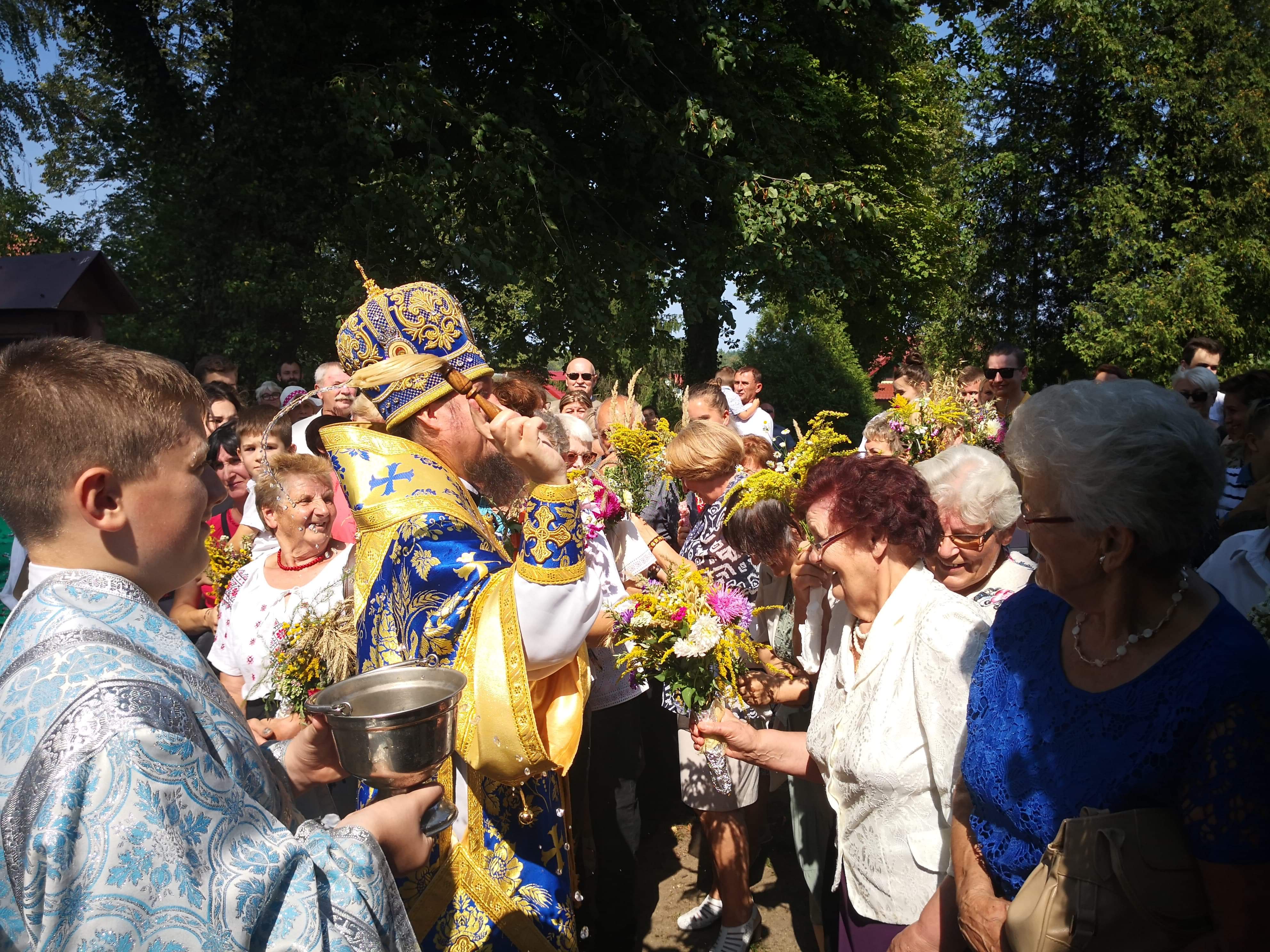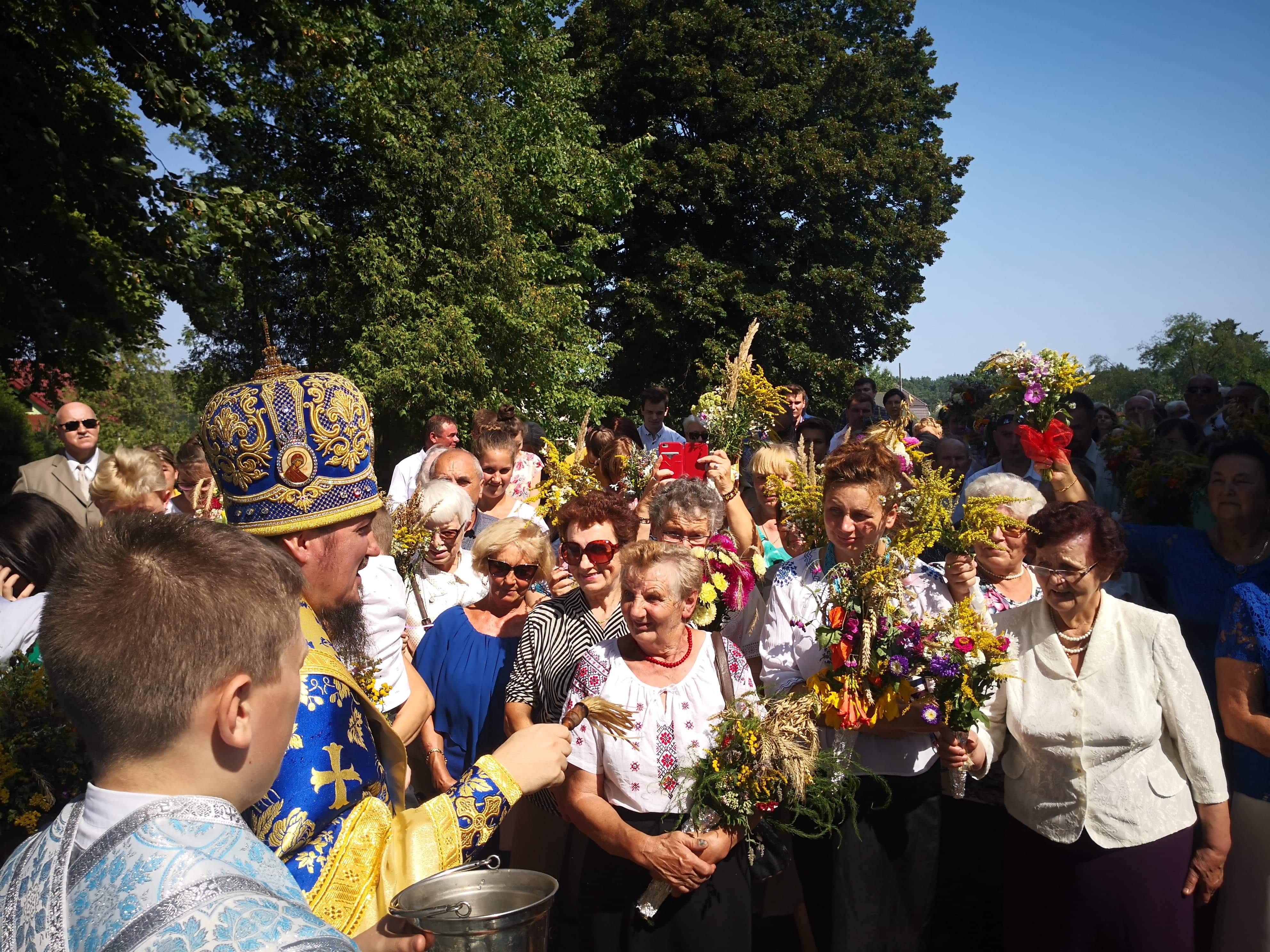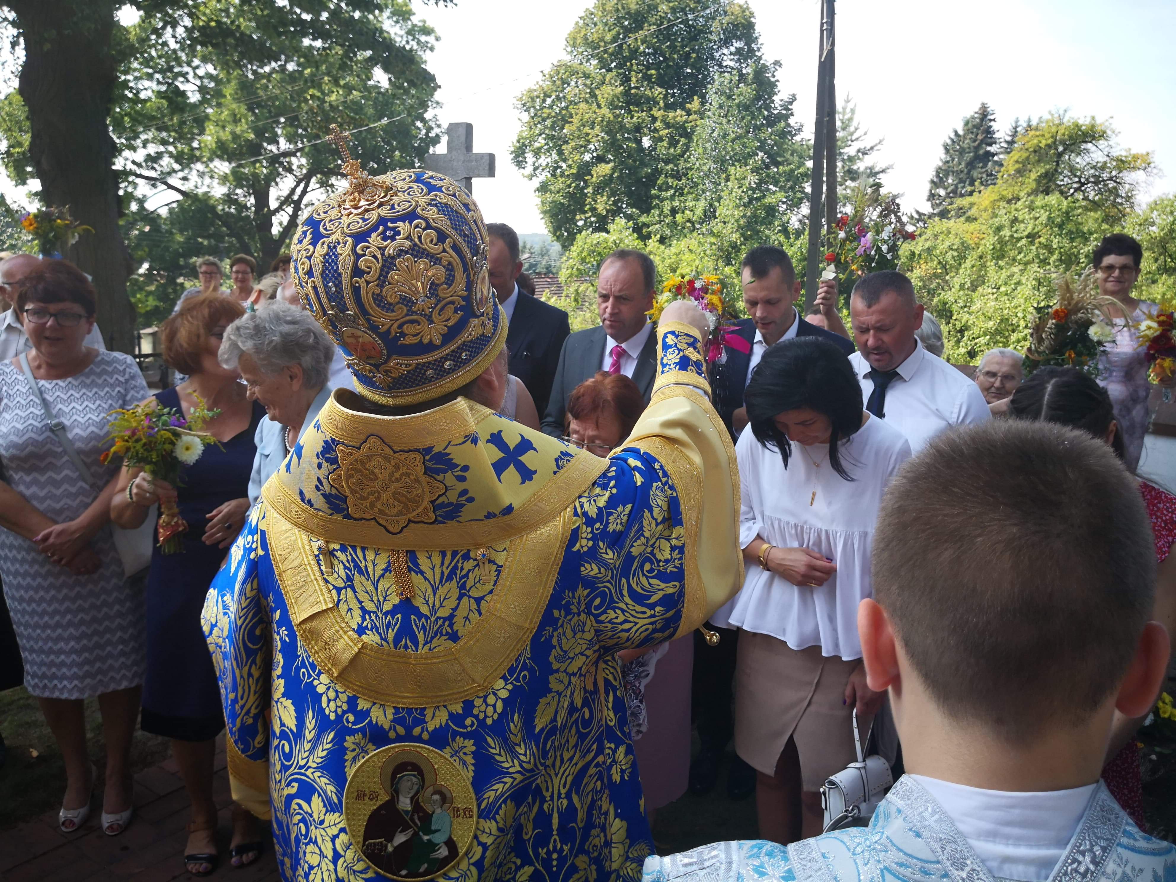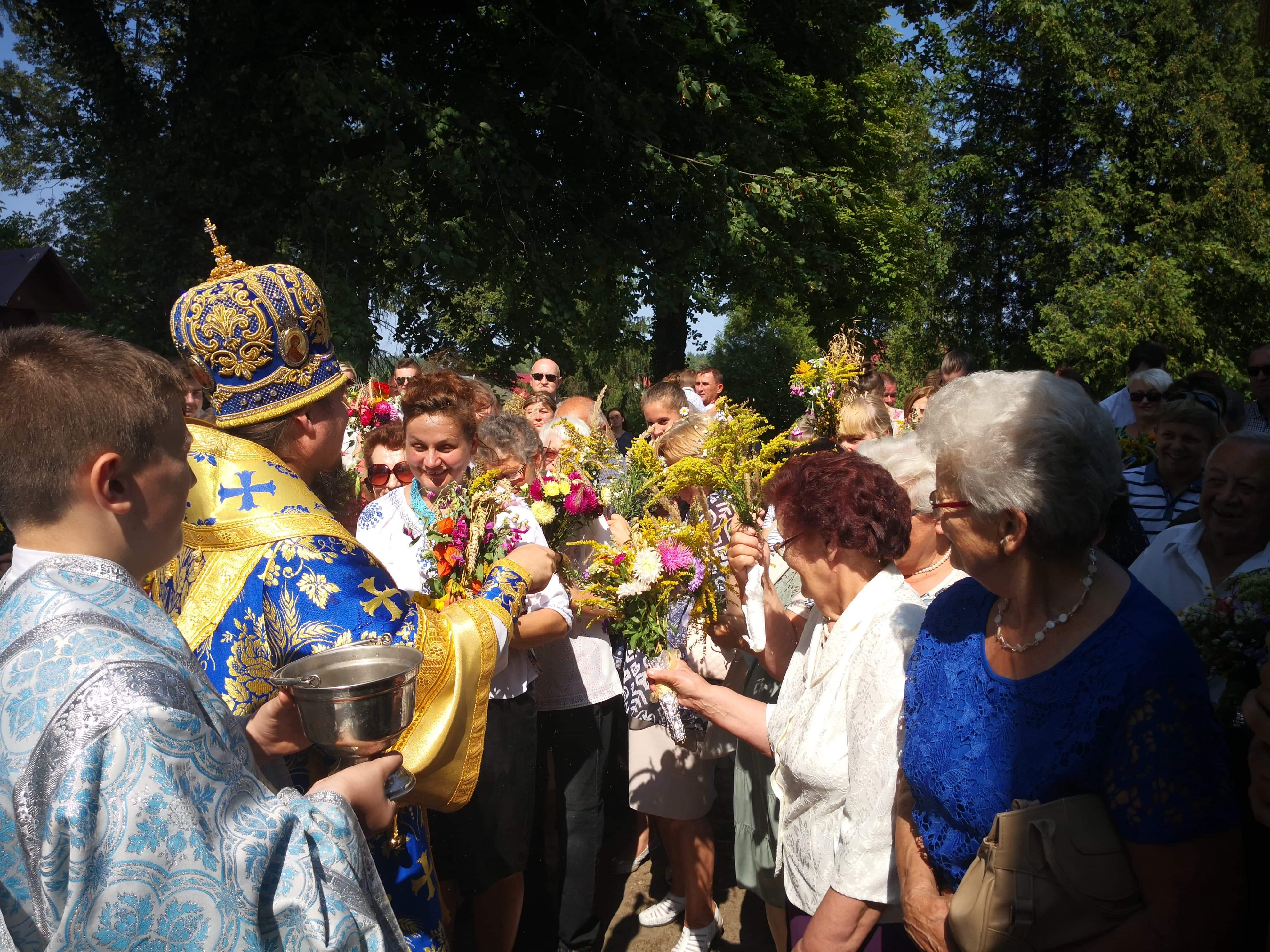 Liturgia zakończyła się uroczystą procesją, poświęceniem zbóż, ziół i kwiatów którego dokonał Władyka.