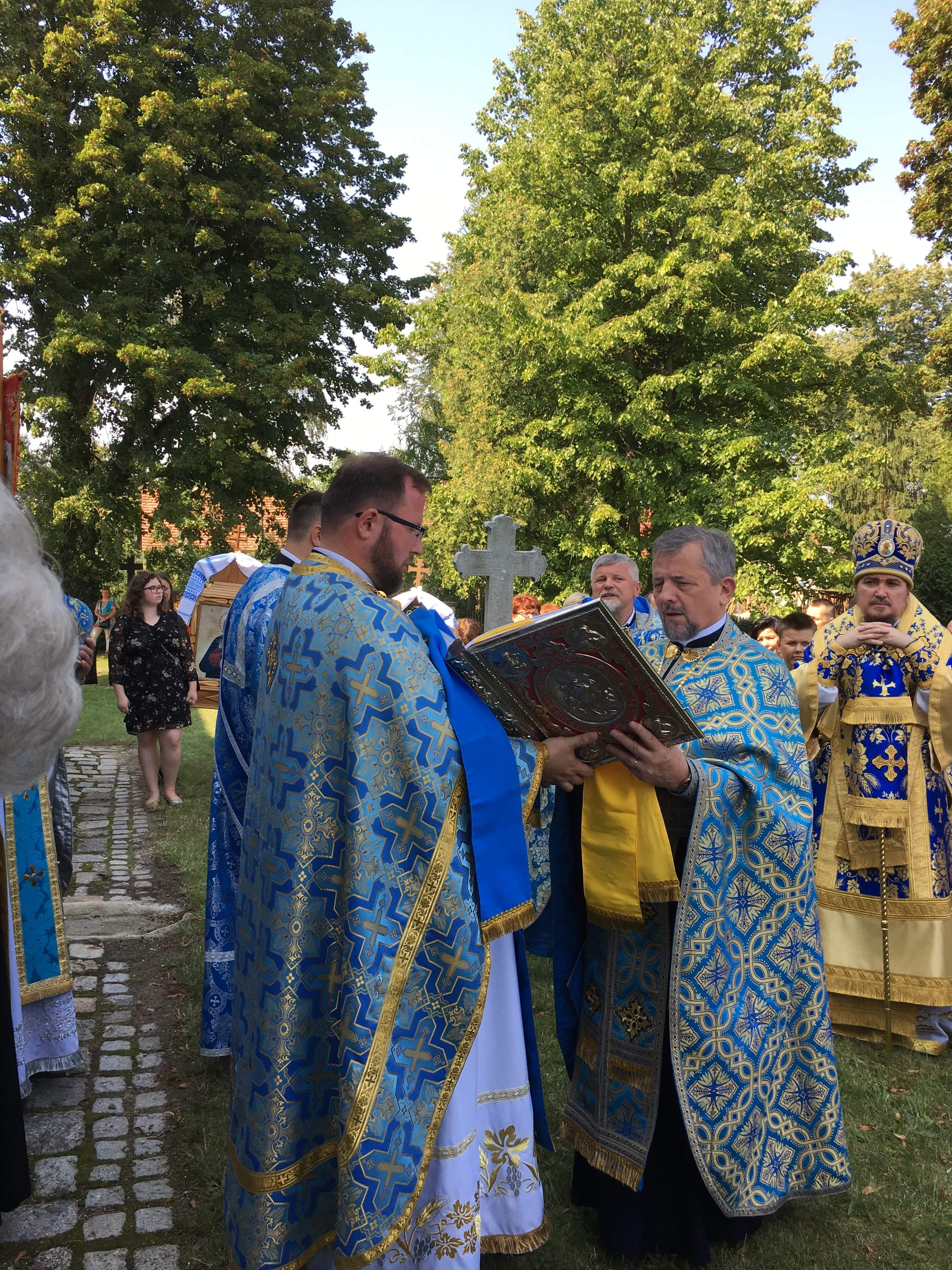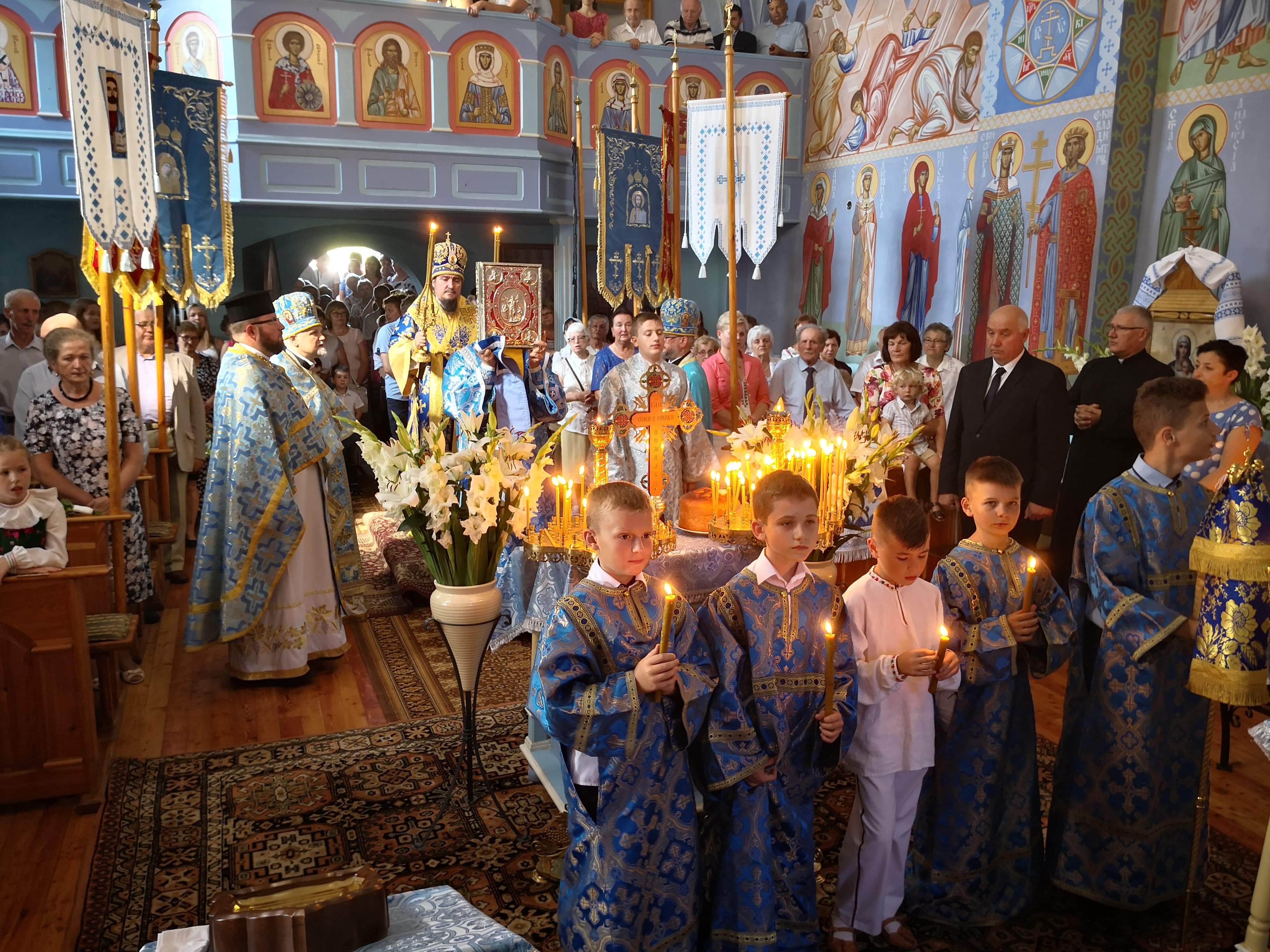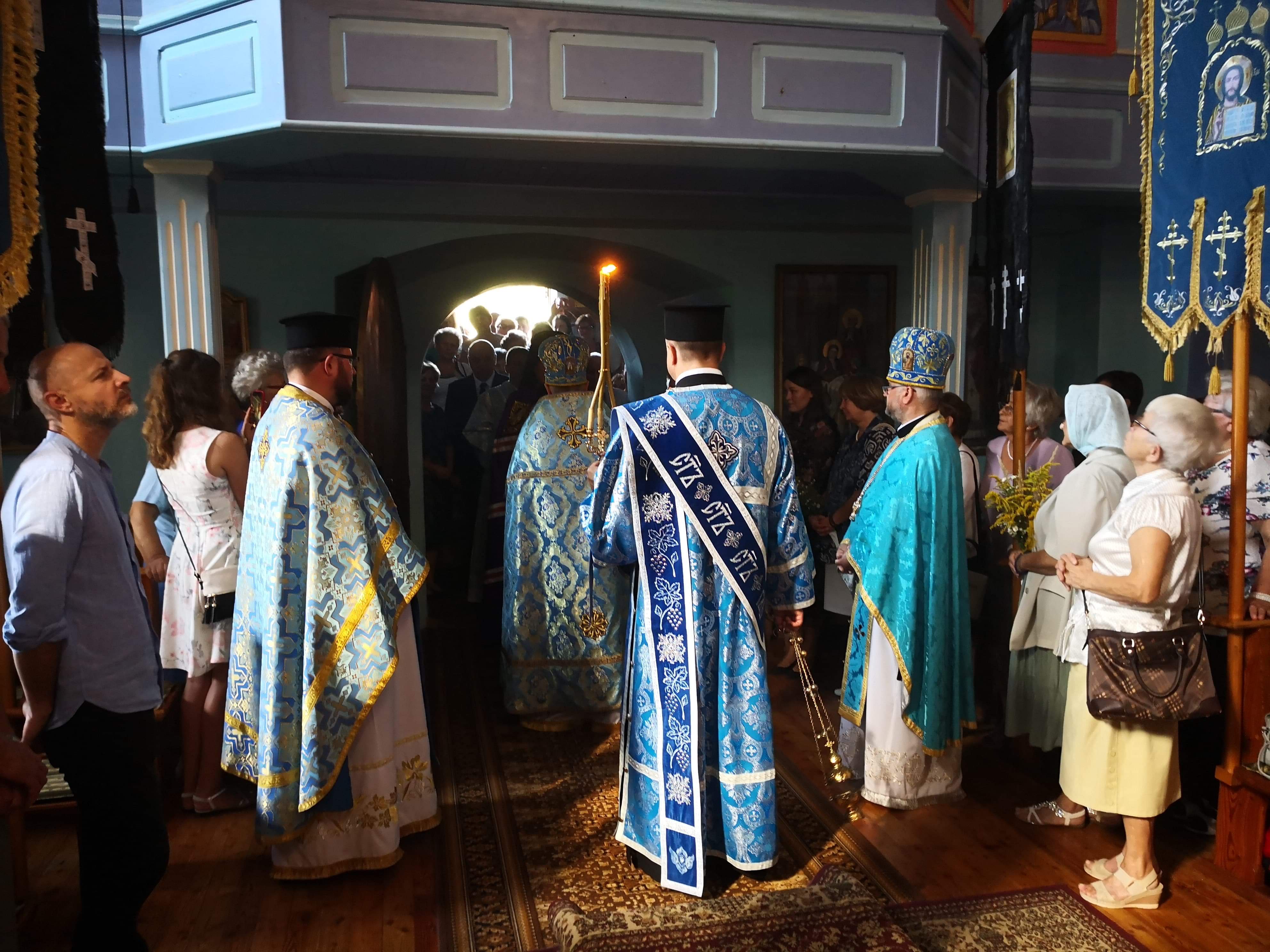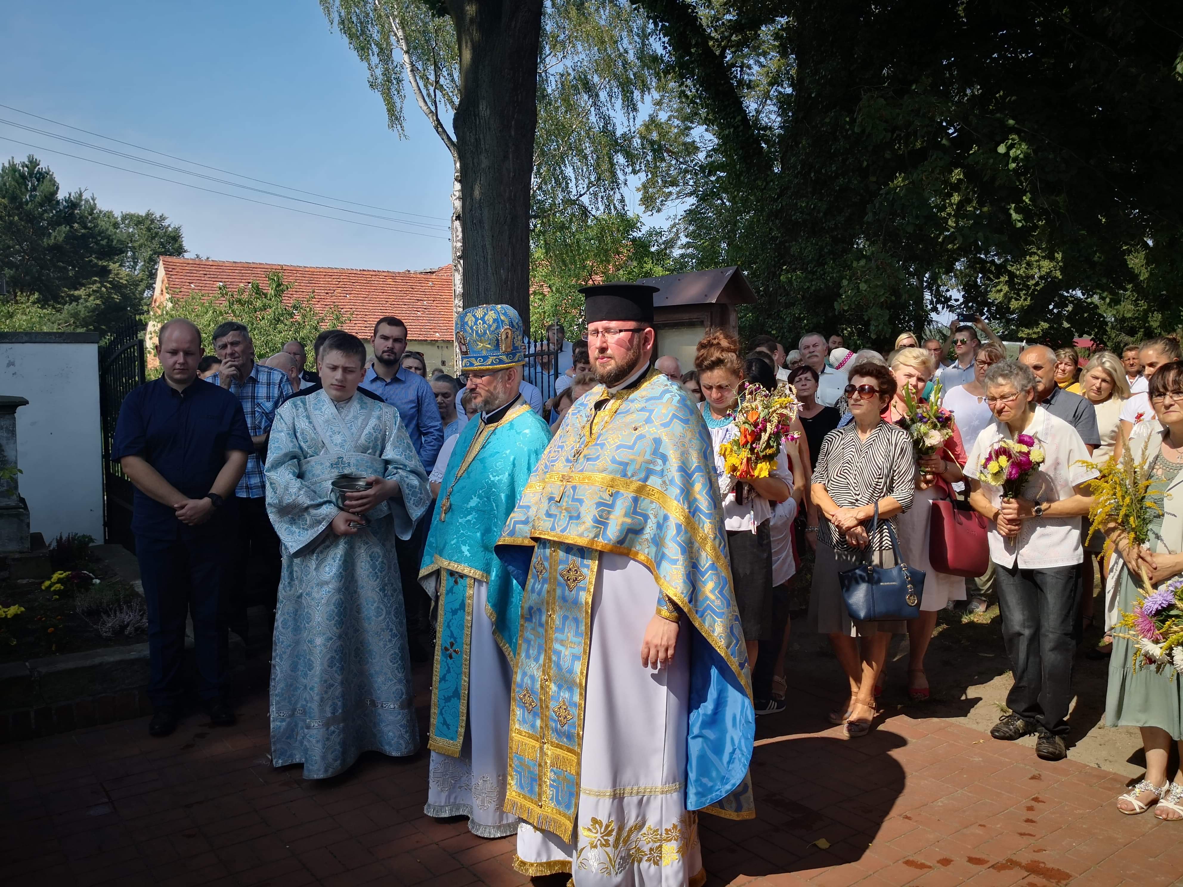 Liturgia zakończyła się uroczystą procesją, poświęceniem zbóż, ziół i kwiatów którego dokonał Władyka.