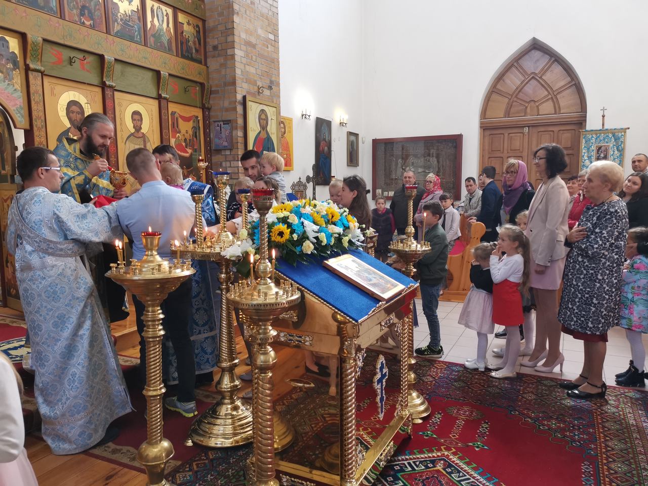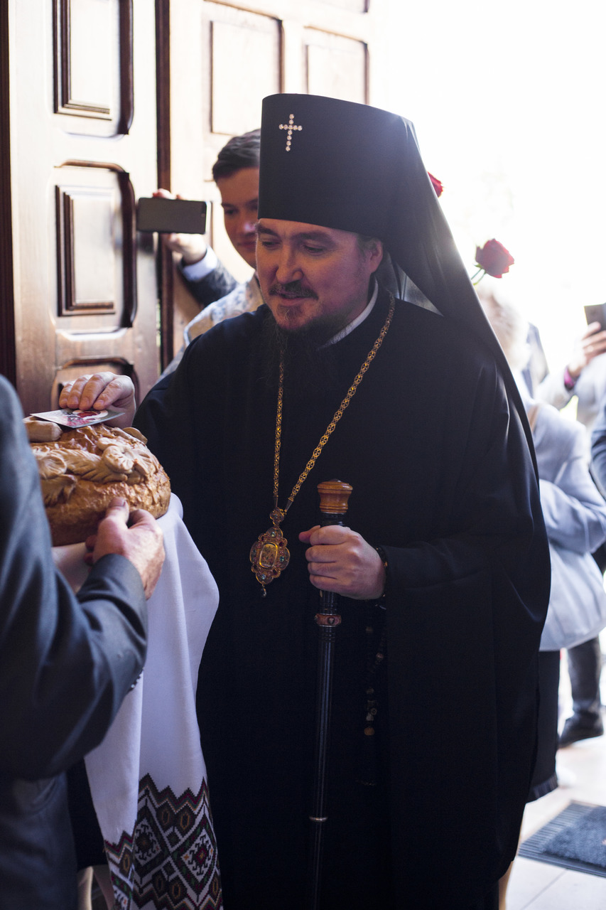 W drzwiach świątyni Władykę kwiatami przywitały dzieci, chlebem i solą starosta cerkiewny Włodzimierz Rydzanicz oraz proboszcz ks. Jarosław Szmajda.