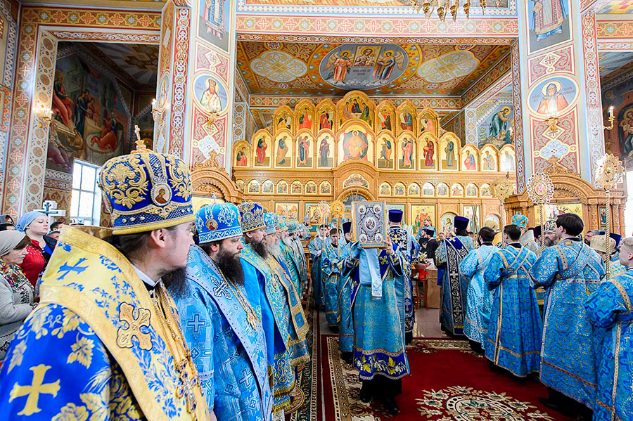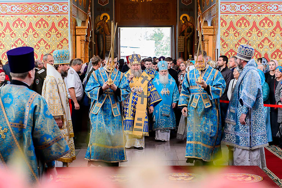 Świąteczna Liturgia miała miejsce w Sofijskim Soborze Iwiersko-Serafimowskiego monasteru. Nabożeństwu przewodniczył zwierzchnik Prawosławnej Cerkwi Kazachstanu Jego Ekscelencja metr. Astański i Kazachski Aleksander, z którym współsłużyło 23 biskupów z Kazachstanu, Polski, Mołdawii, Ukrainy i Rosji.
