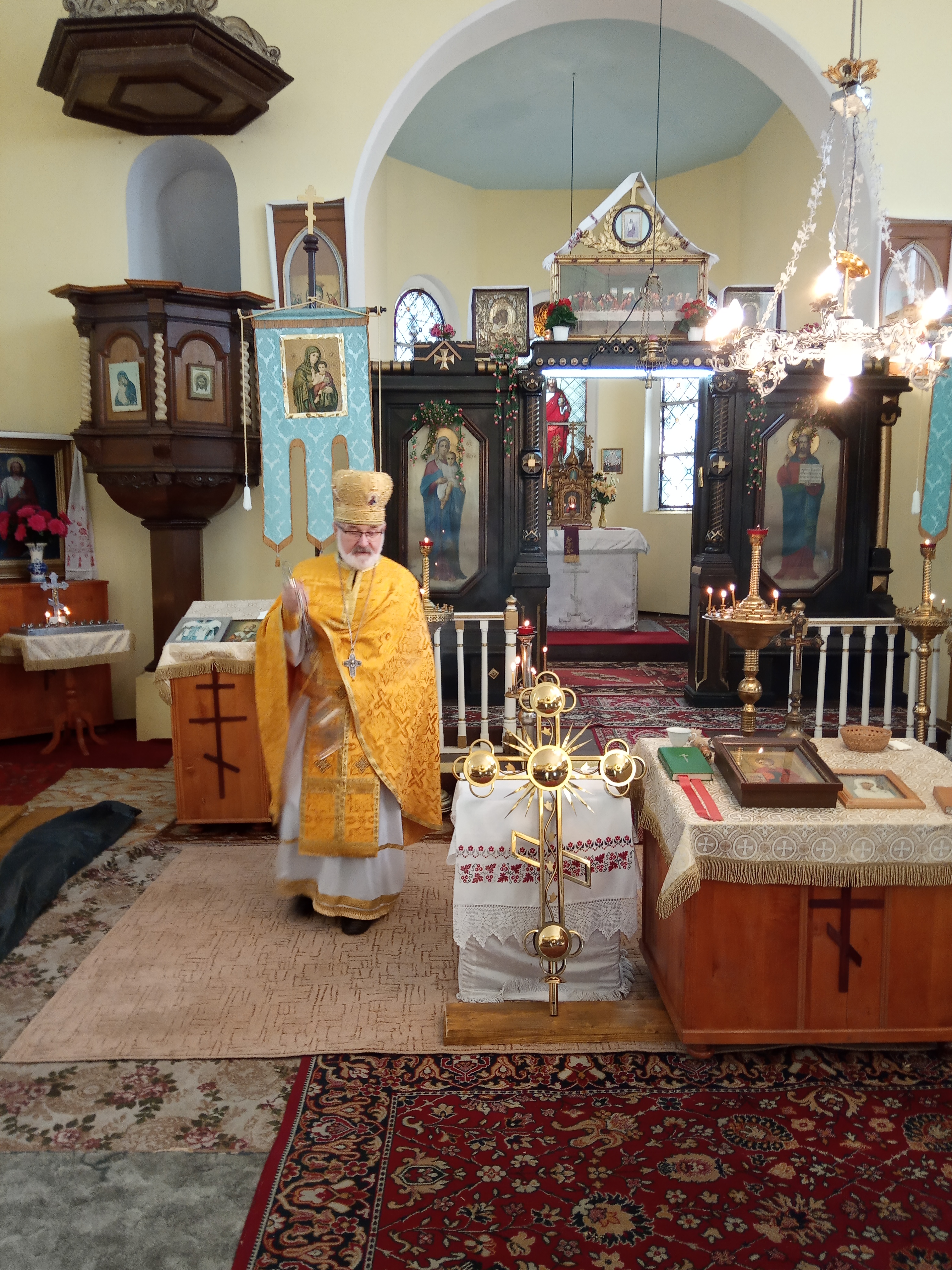 W ostatnią niedzielę 13 października br., po zakończonym niedzielnym nabożeństwie, ks. Aleksander Konachowicz poświęcił metalowy krzyż, który będzie umieszczony na dachu dzwonnicy. W uroczystym poświęceniu krzyża uczestniczyli wszyscy parafianie wołowskiej Cerkwi.